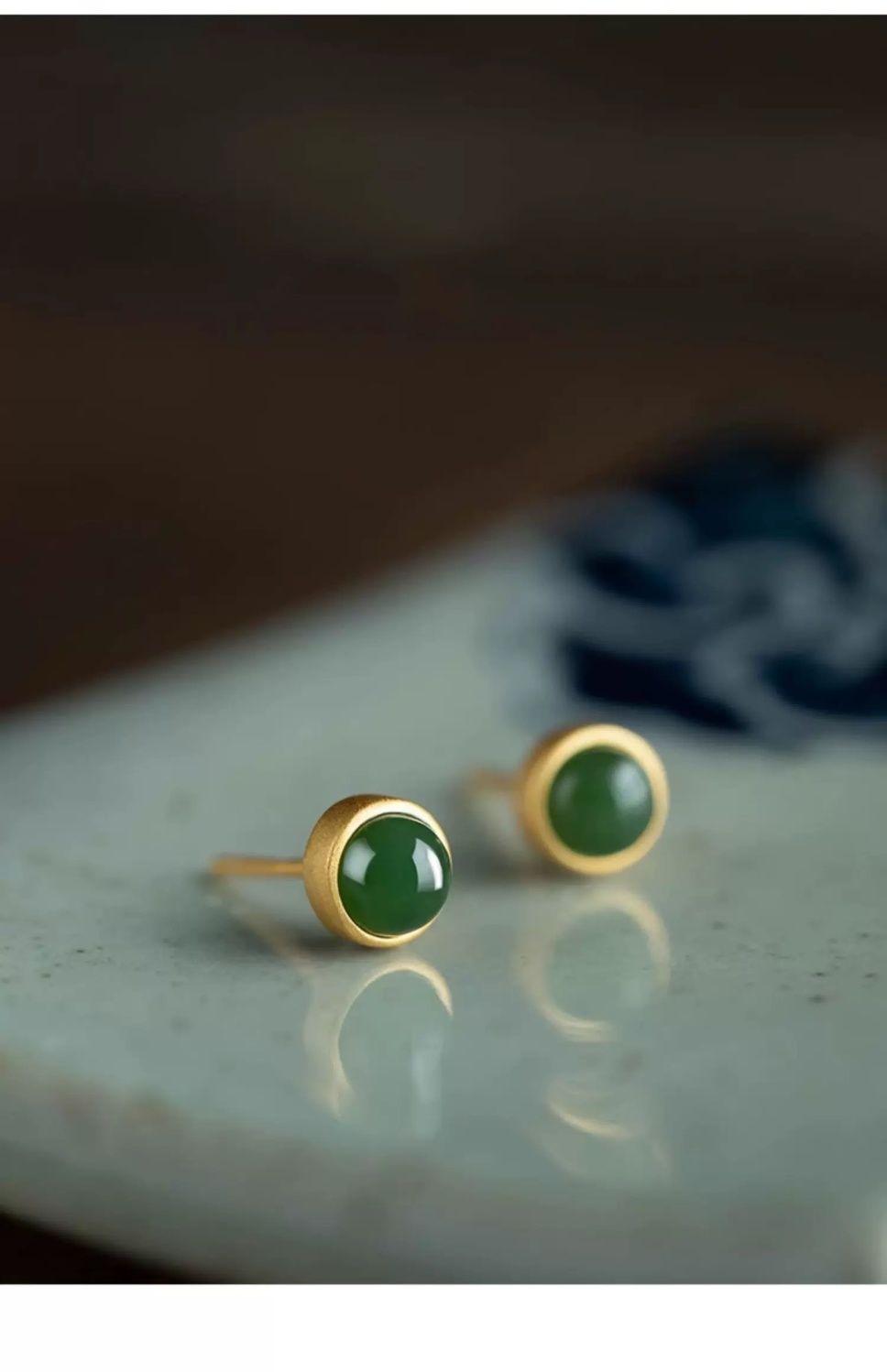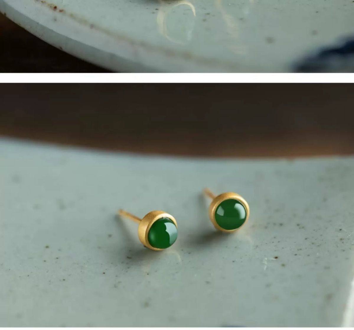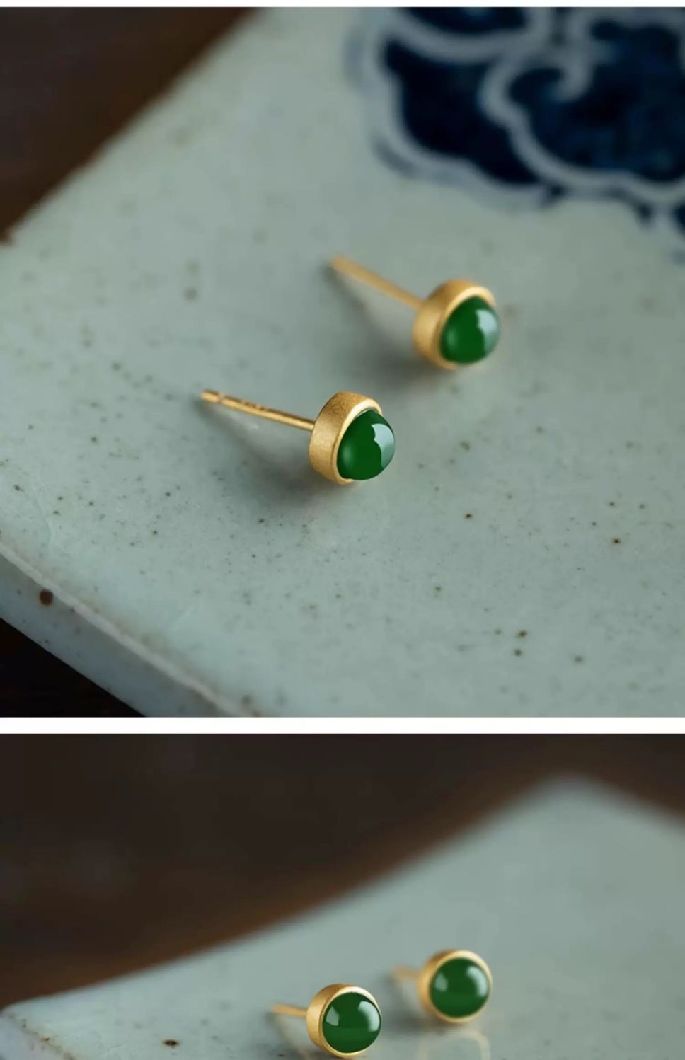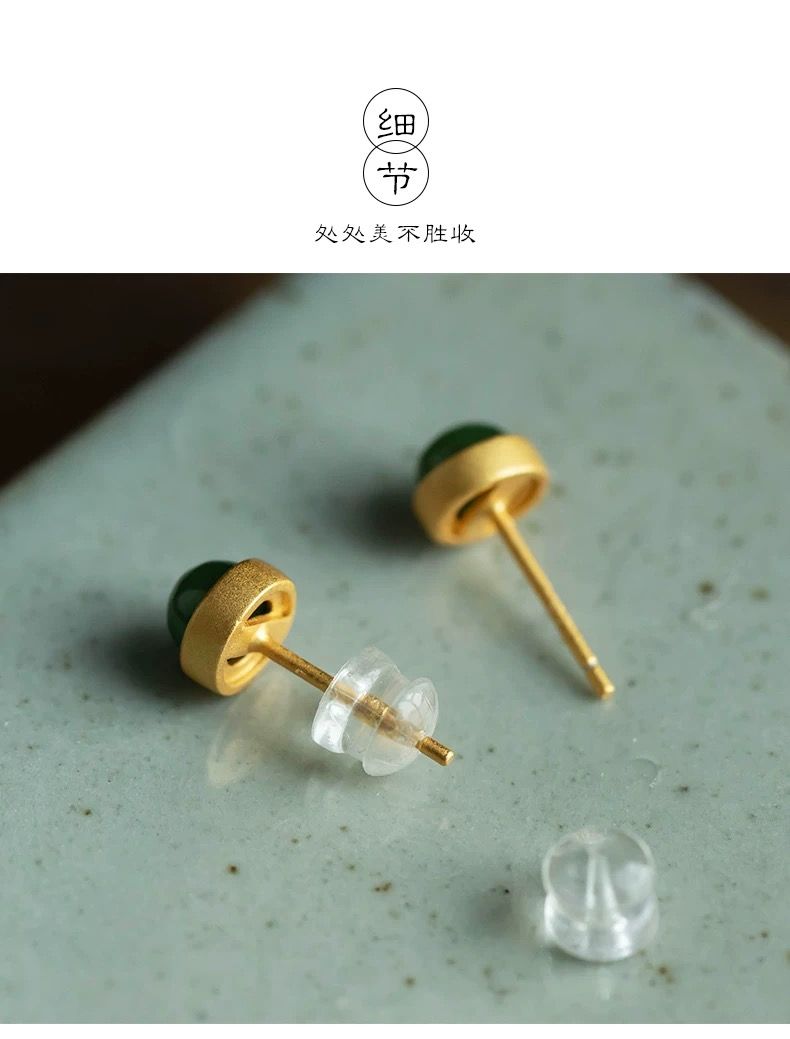 新潮款碧玉豆丁s925银耳钉女款高级感精致金色镶嵌玉石防过敏耳环