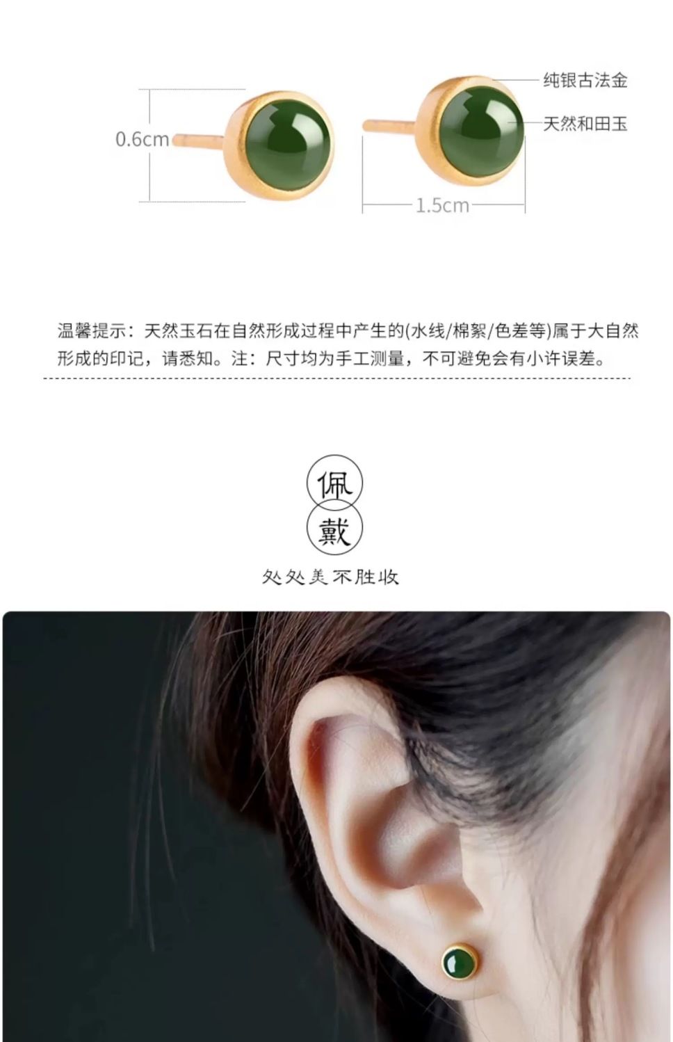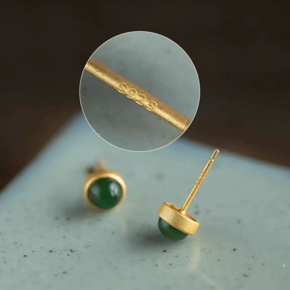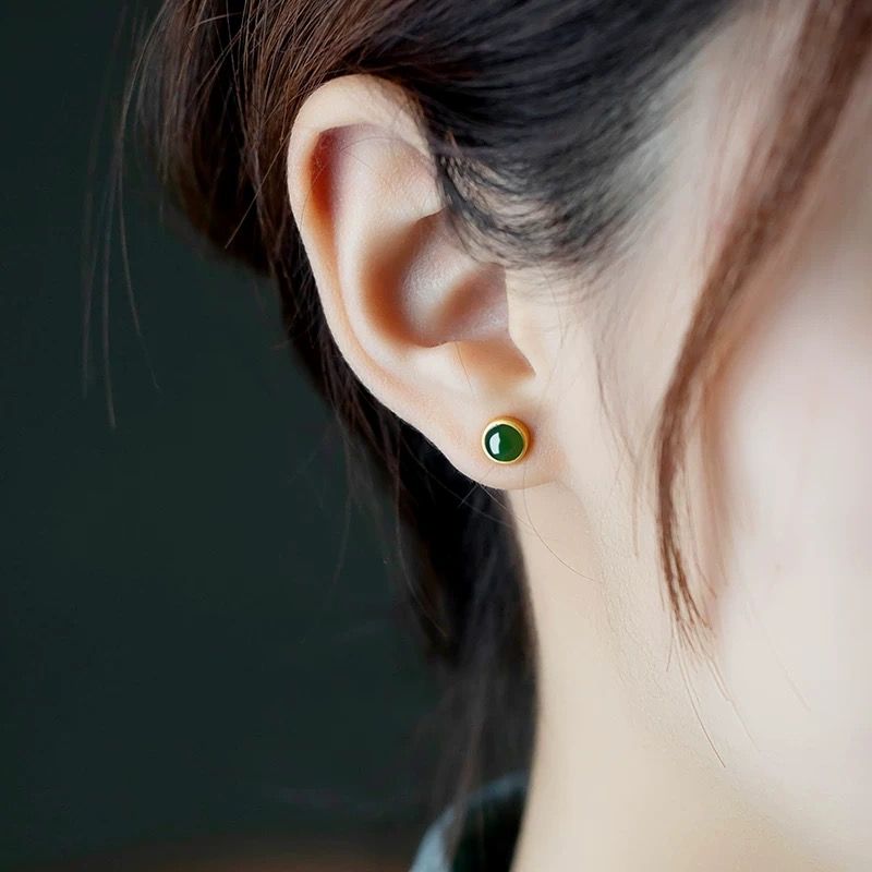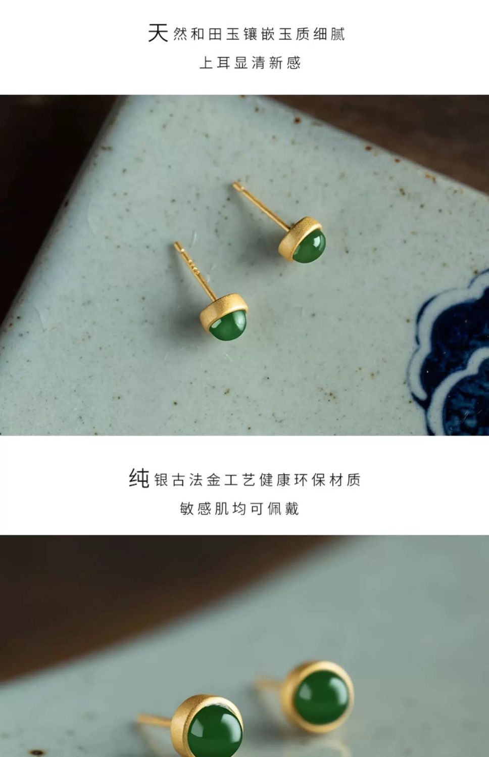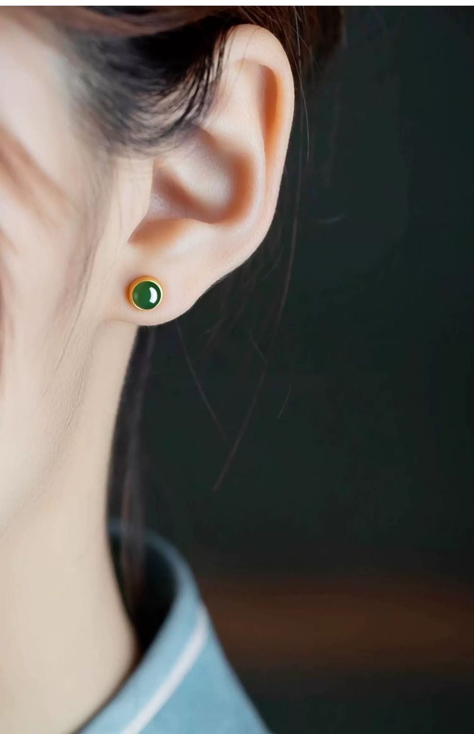 新潮款碧玉豆丁s925银耳钉女款高级感精致金色镶嵌玉石防过敏耳环