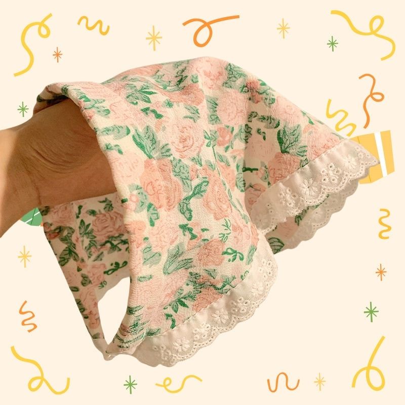 田园风碎花蕾丝发箍头巾一体女款包头三角巾夏季发卡头饰外出百搭
