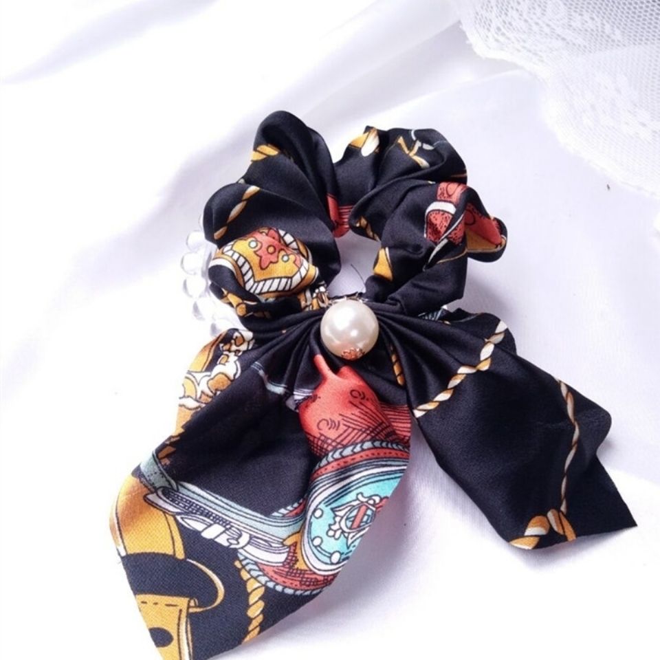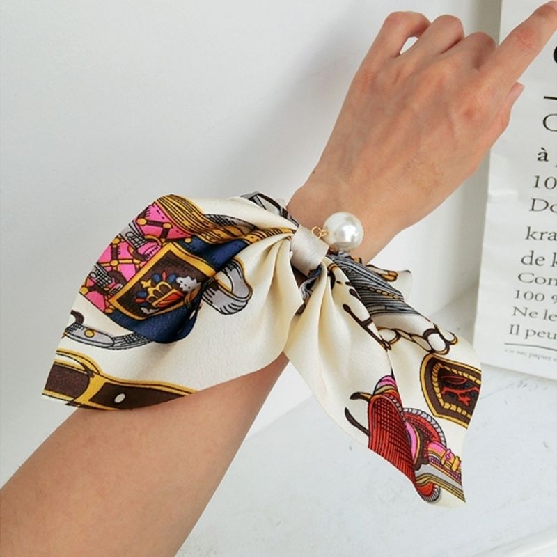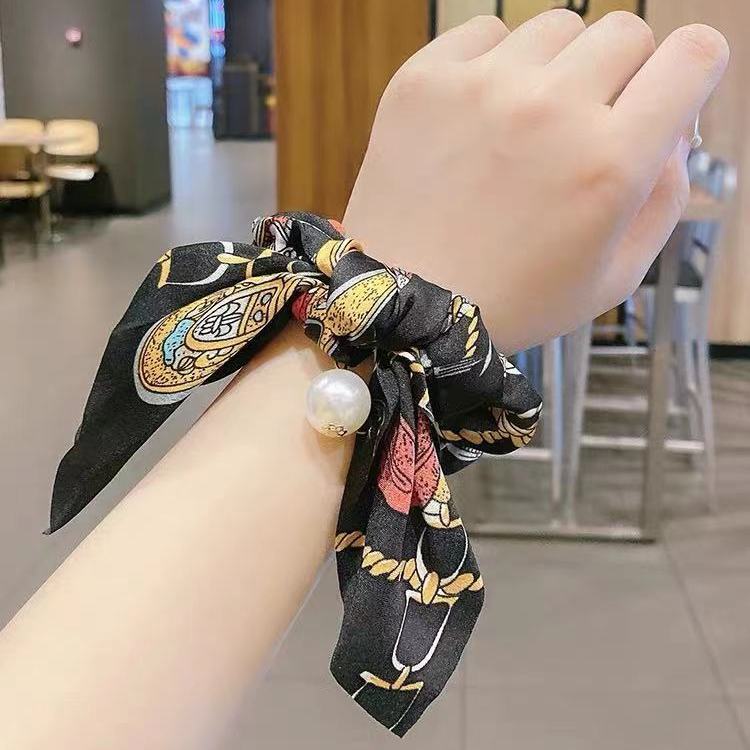 日韩版珍珠发圈 大蝴蝶结头绳条纹高弹力皮筋发卡加粗发绳布艺