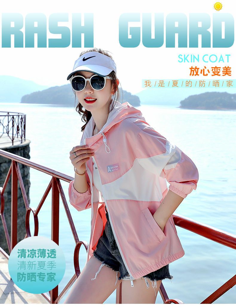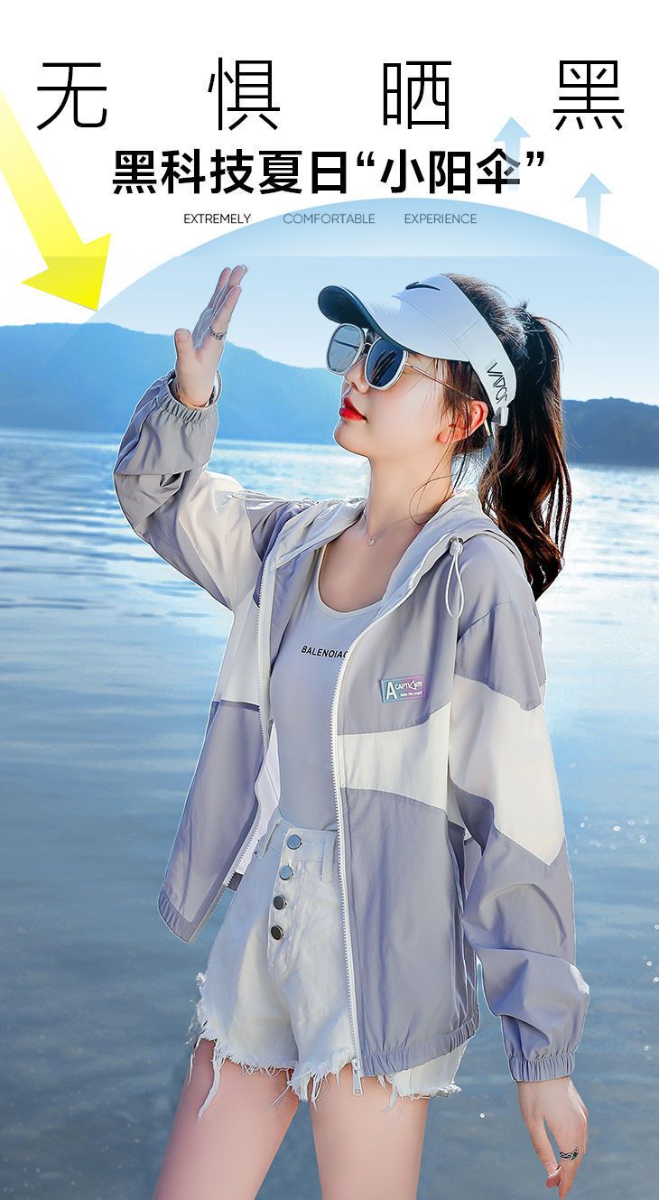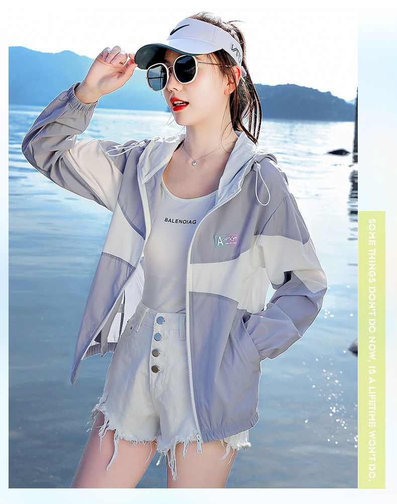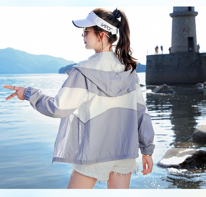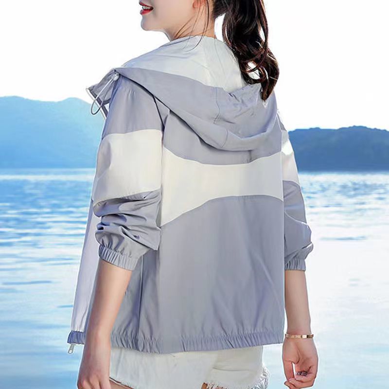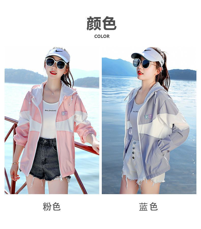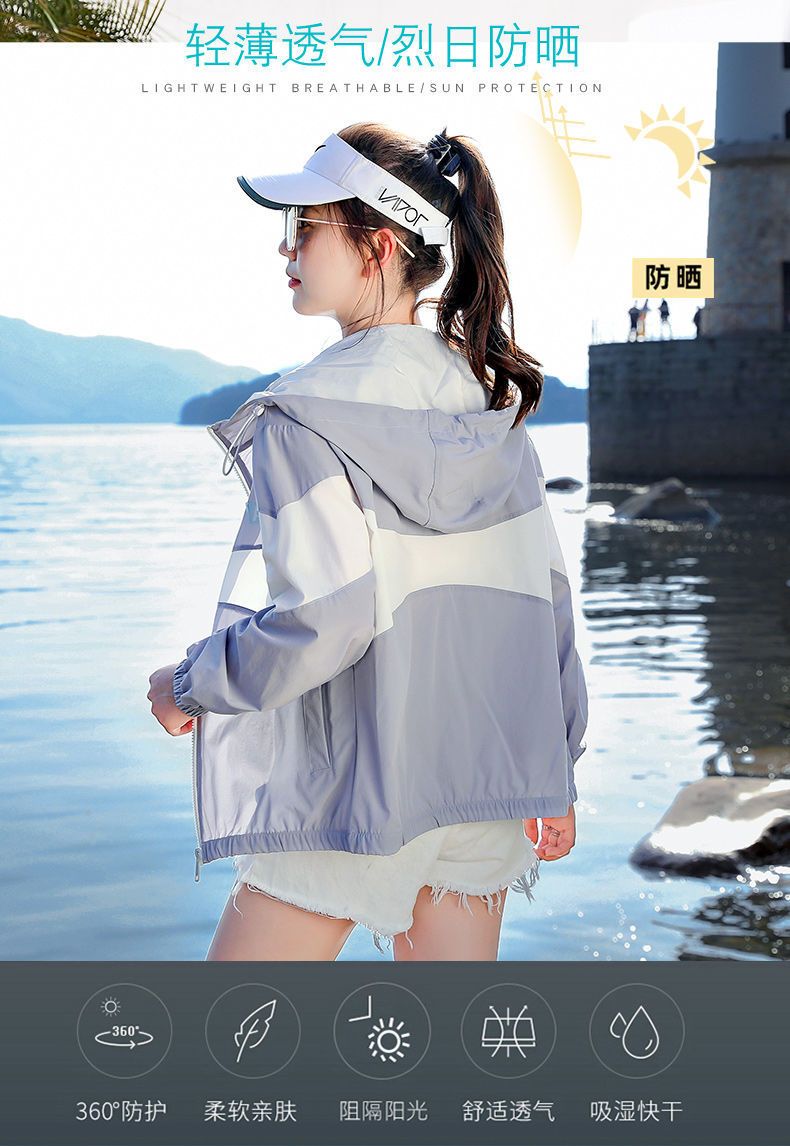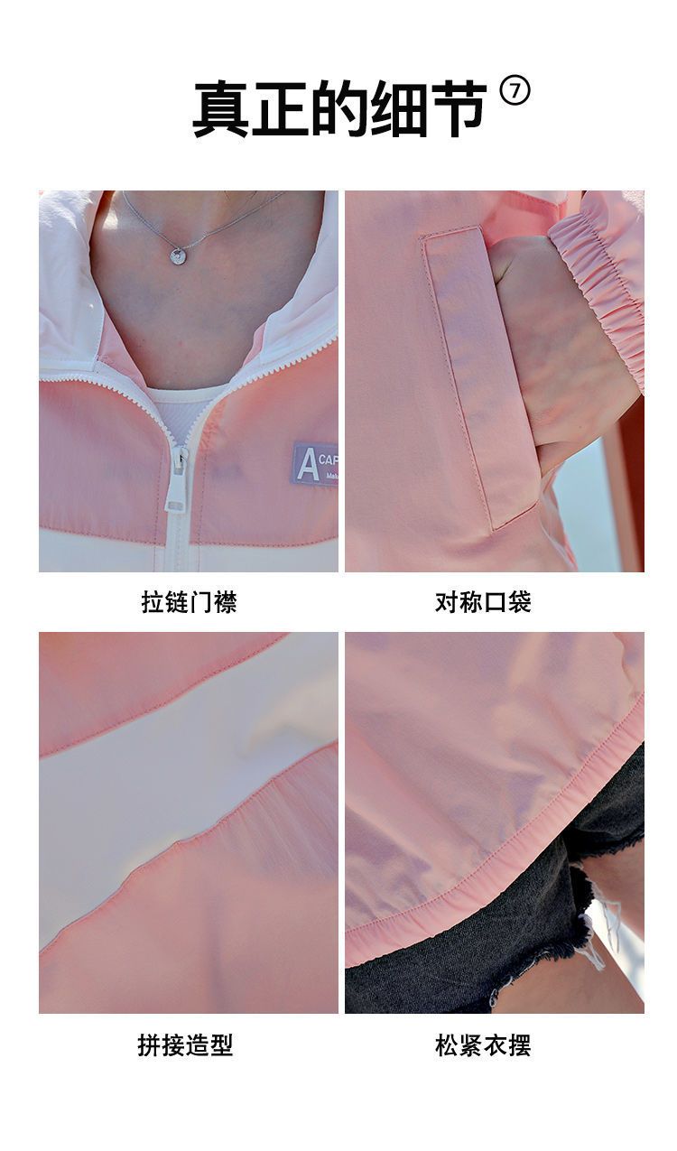 新款拼接防晒服女2024夏爆款连帽韩版轻薄透气防紫外线大码薄外套