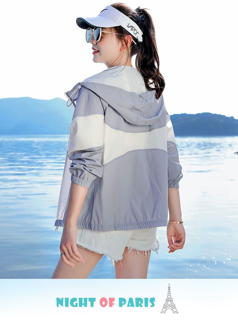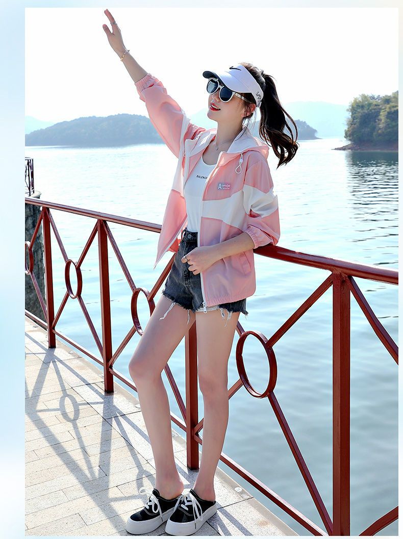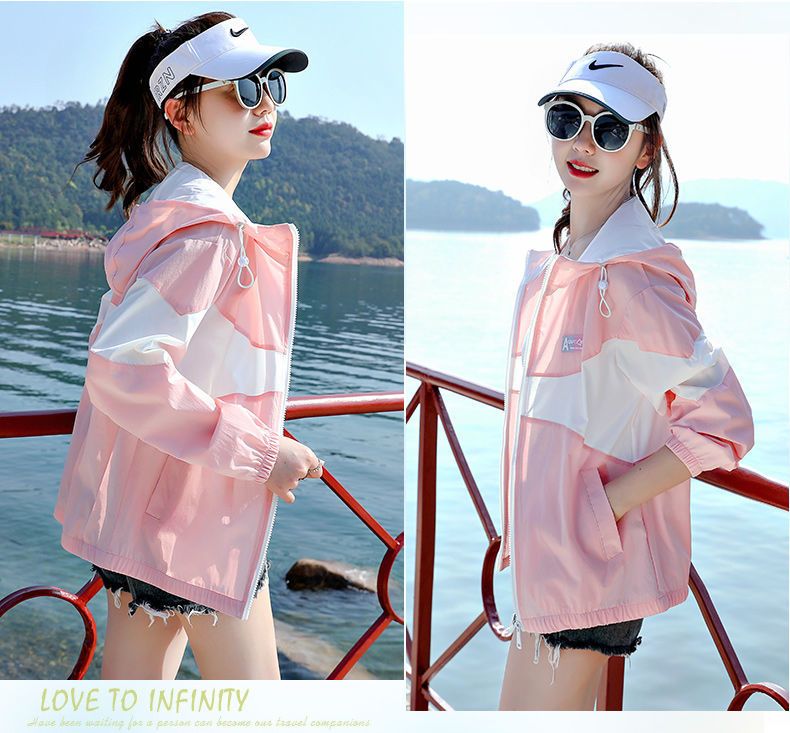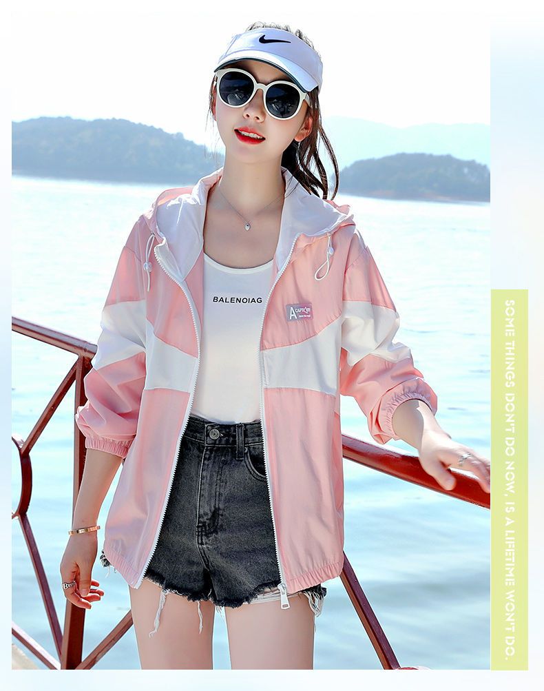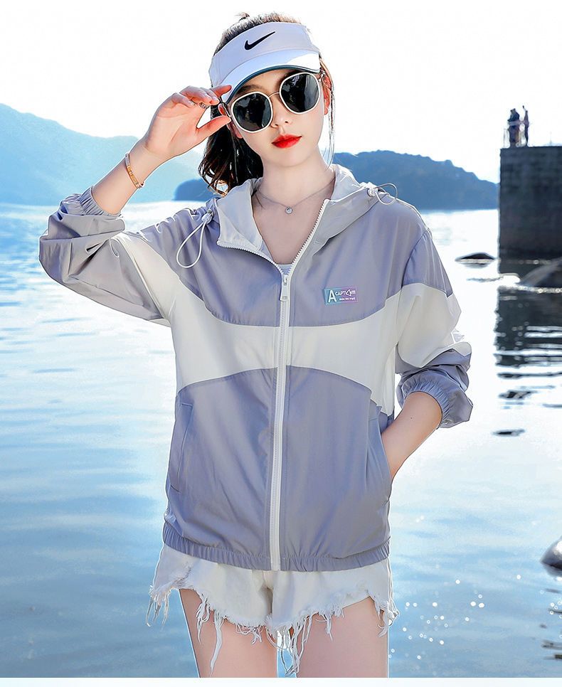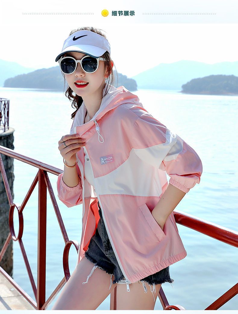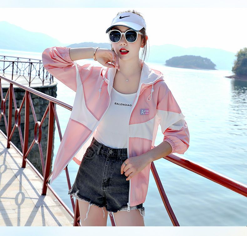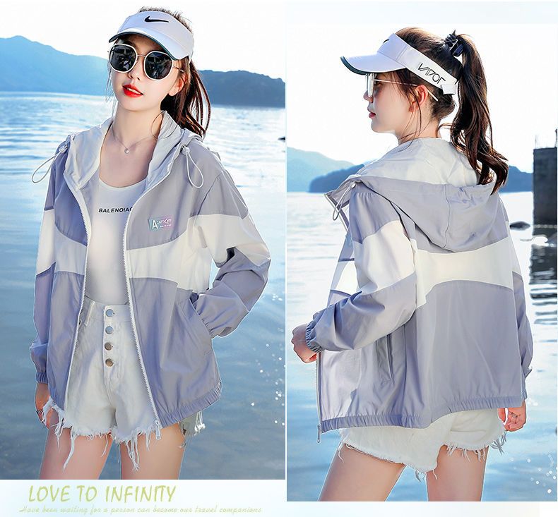 新款拼接防晒服女2024夏爆款连帽韩版轻薄透气防紫外线大码薄外套