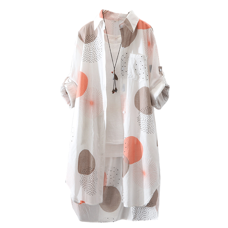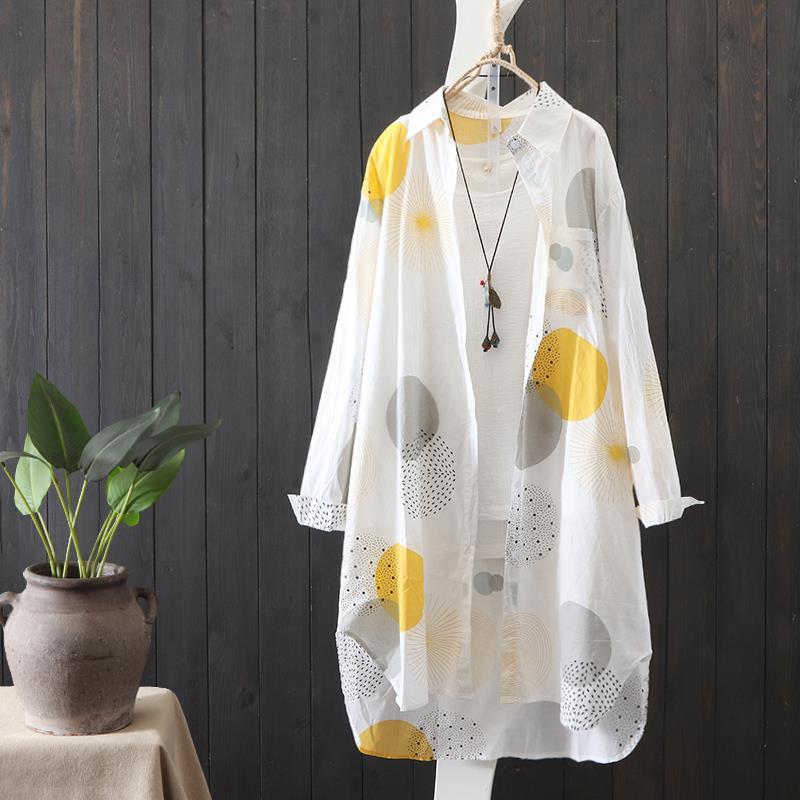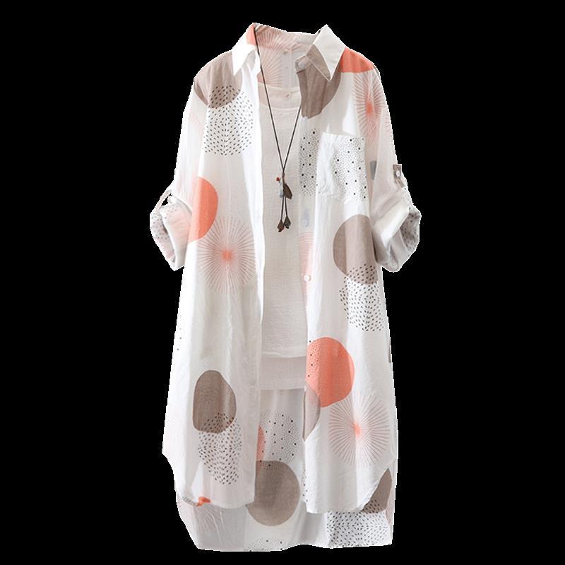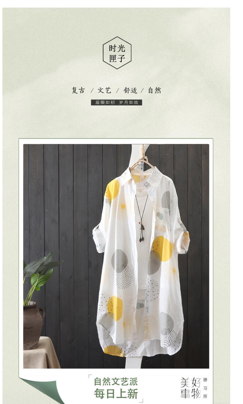 印花长款衬衫女雪纺料防晒服女薄夏季新款宽松防晒衣女开衫薄外套