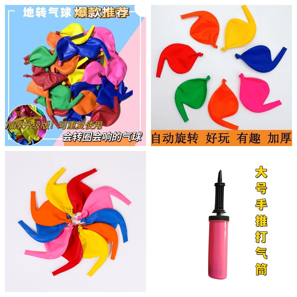 | 10 spinning top balloons + hand push pump(10个旋转陀螺气球+手推气筒) | USD $3.25 | 999999 piece available |