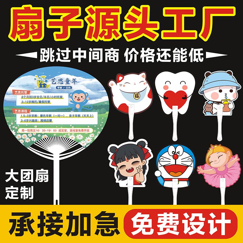 广告扇定制塑料卡通小扇子印刷logo招生扇定做培训地推宣传胶团扇