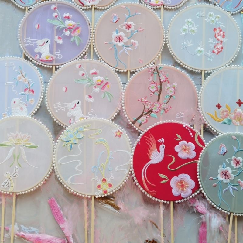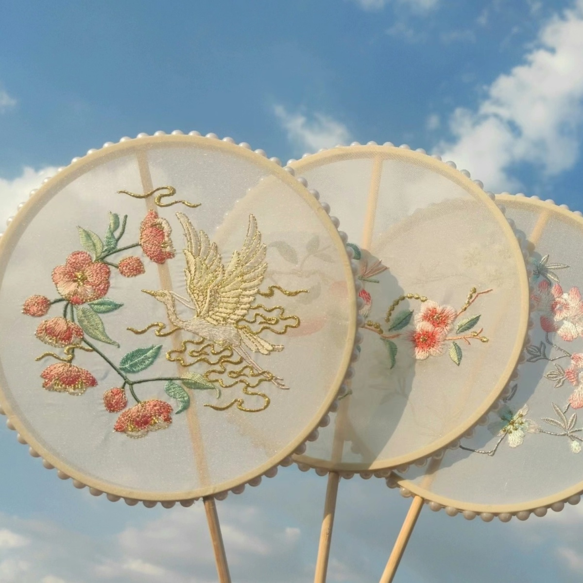 批发十个装刺绣团扇国潮拍照中式古风图案混发景区古镇古街公园