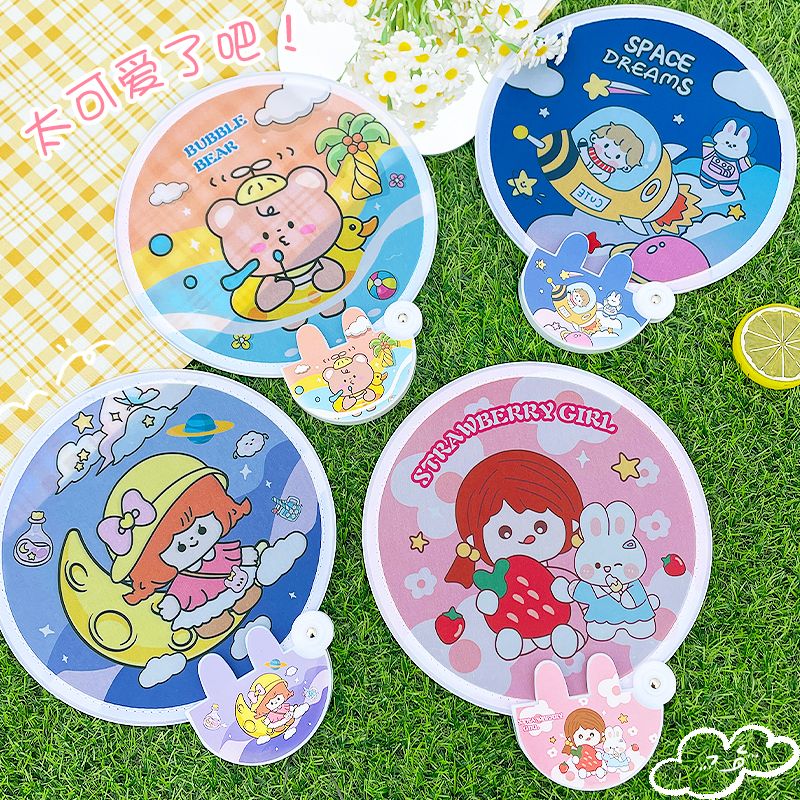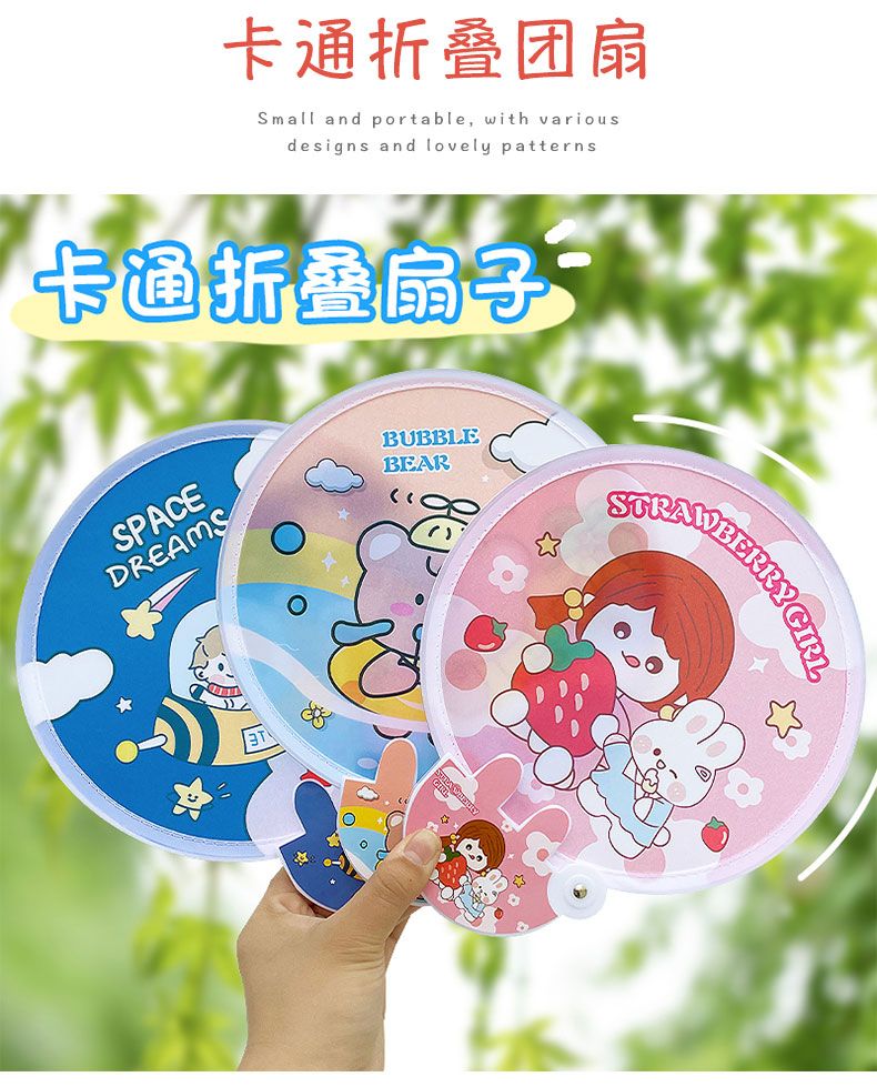 可爱折叠团扇迷你儿童圆扇布面折扇女随身便携日式卡通夏天小扇子