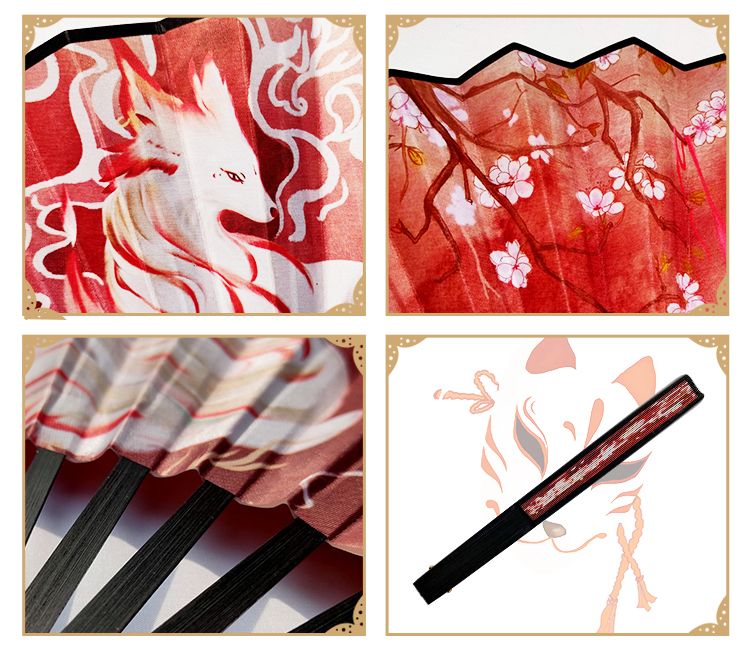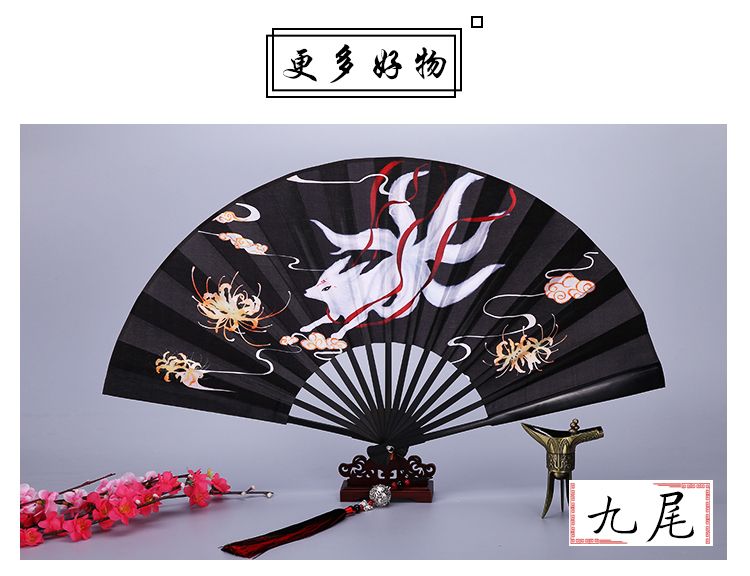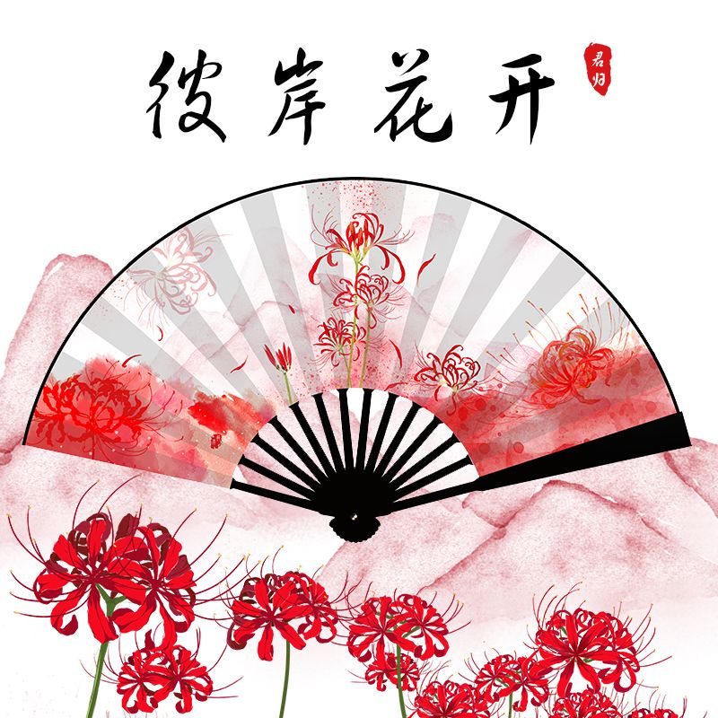 九尾狐扇子男女式古风中国风汉服配饰随身红彼岸花折扇折叠扇定制