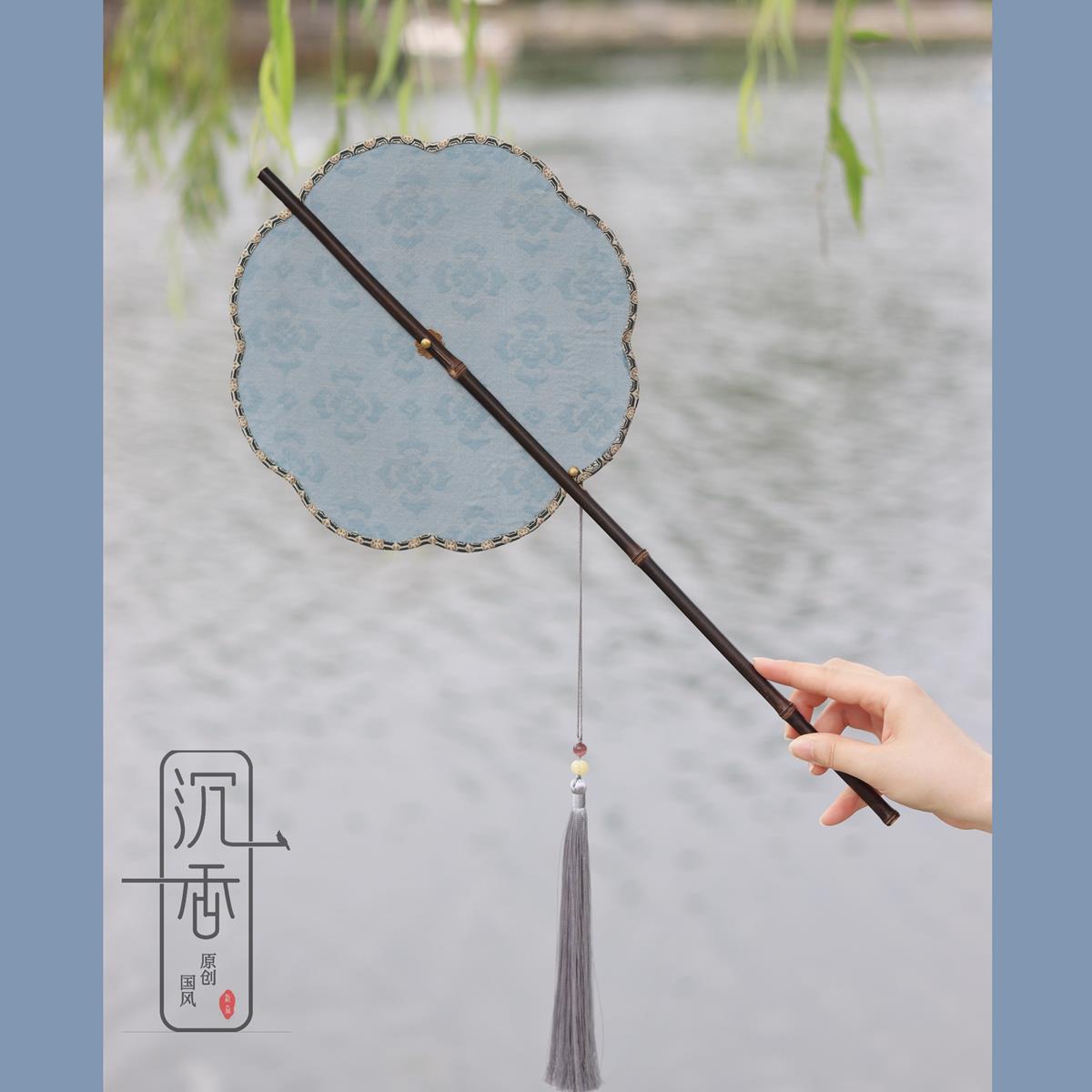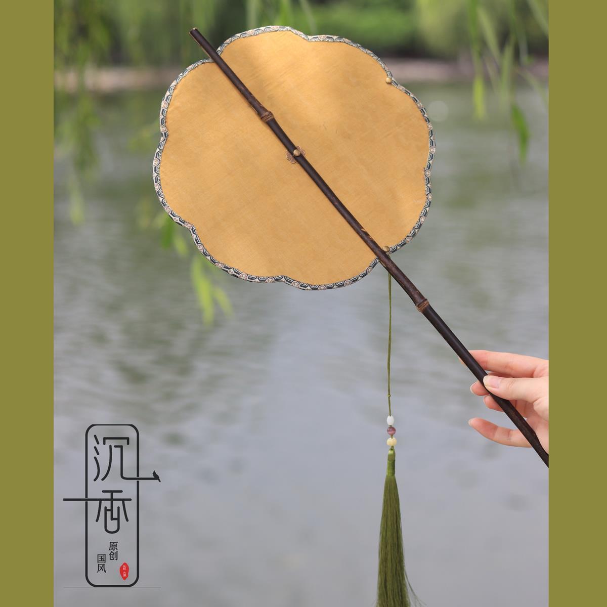 古风汉服旗袍腰扇可卷曲长柄扇子复古天丝纱花萝紫竹流苏团扇古典