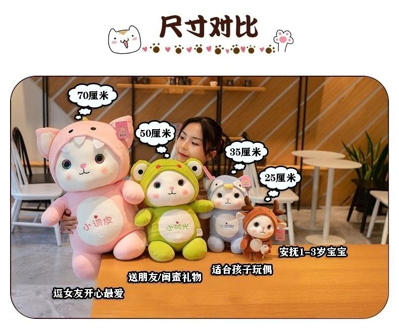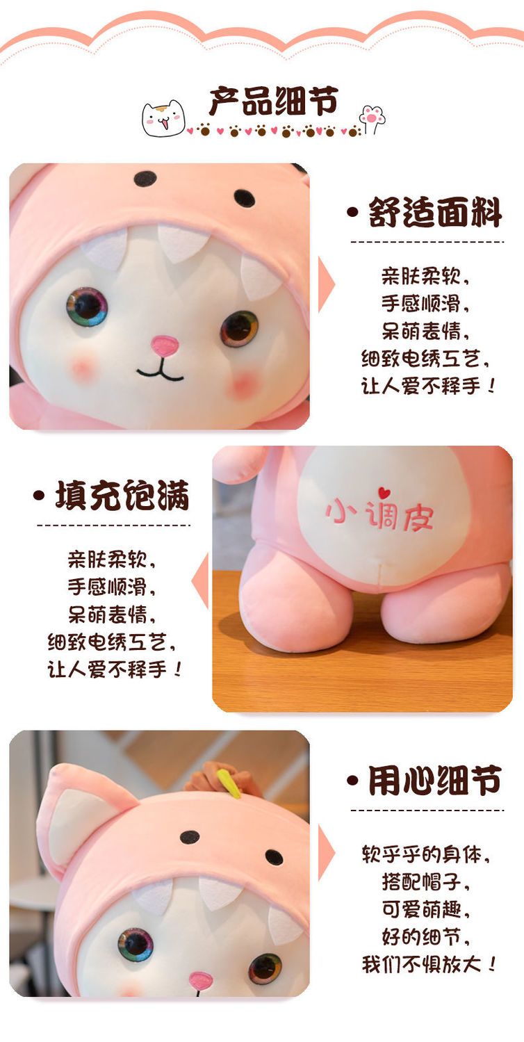 可爱小猫咪公仔卡通玩偶送儿童女生节日礼物猫咪变身恐龙毛绒玩具