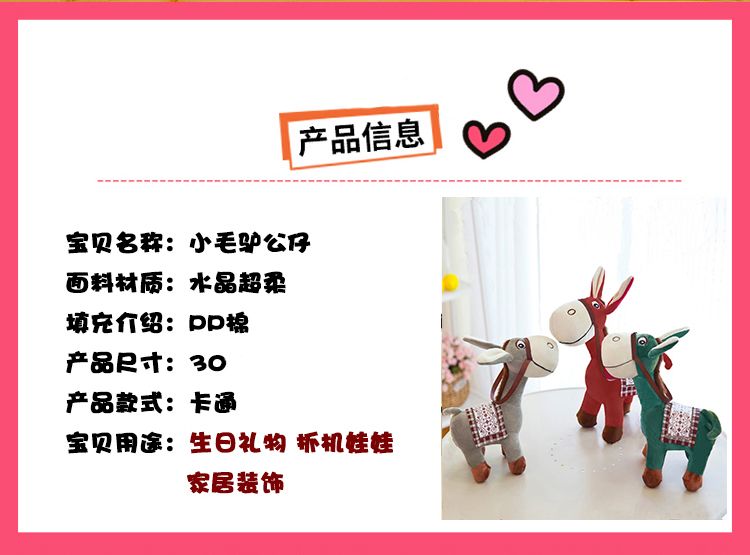 小毛驴公仔可爱毛绒玩具萌玩偶送男孩女孩生日礼物儿童布娃娃装饰