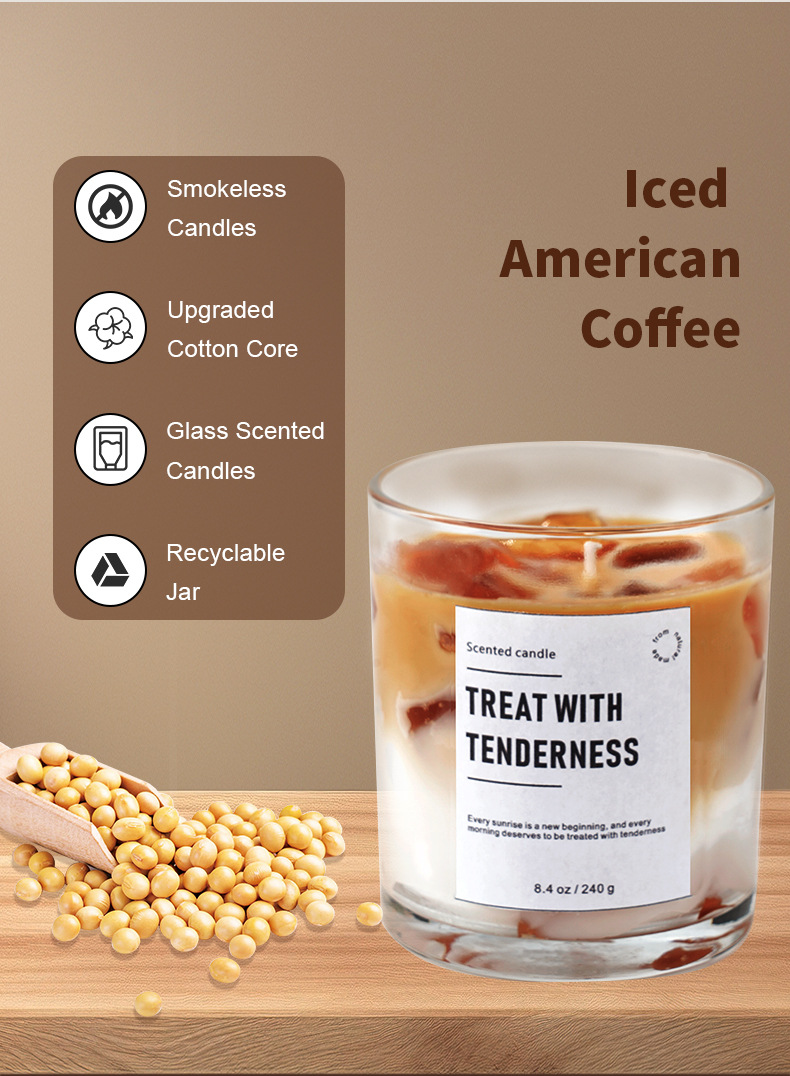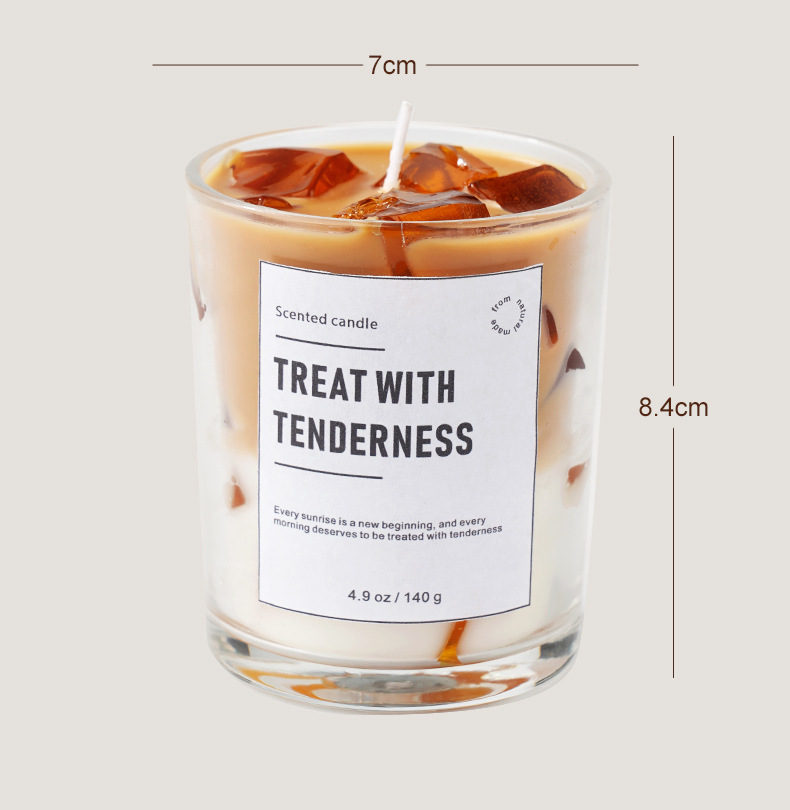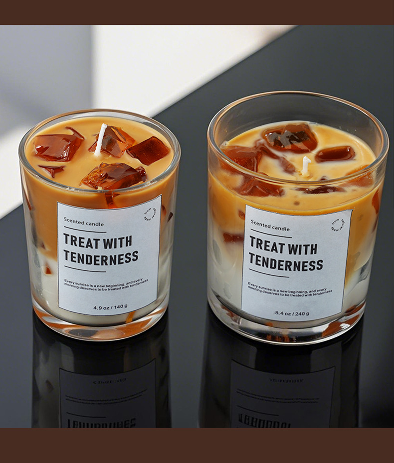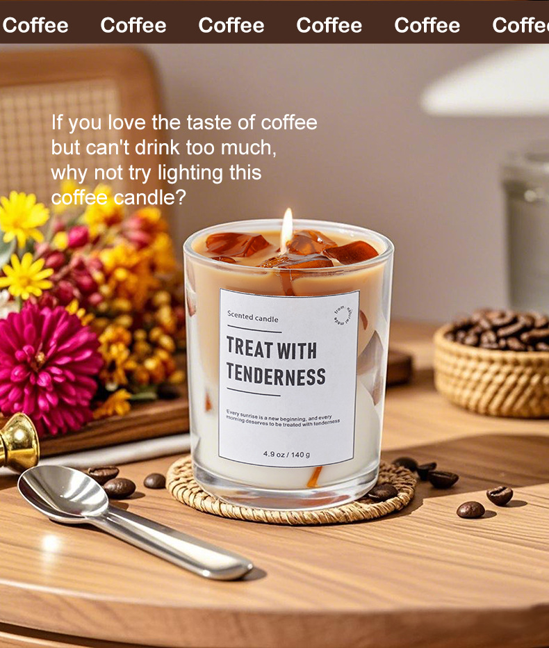 跨境爆款香薰蜡烛创意冰块咖啡香熏蜡烛耐烧无烟大豆蜡高级感香氛