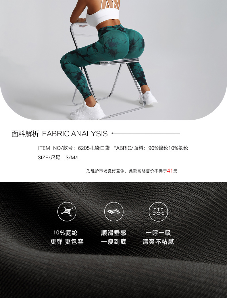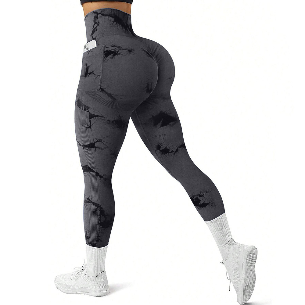 裸感扎染侧口袋秋冬瑜伽裤女外穿高腰提臀紧身运动健身裤瑜伽服女