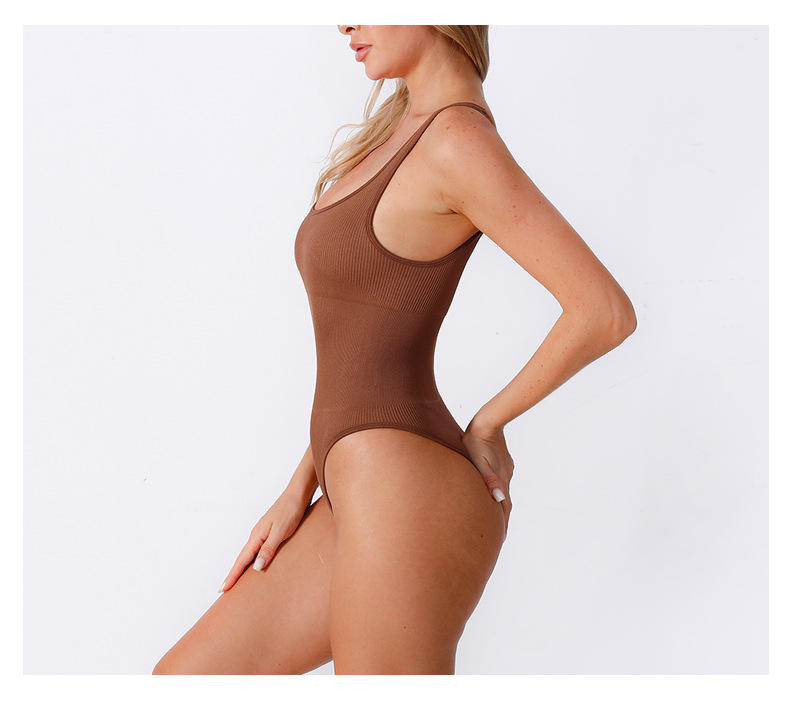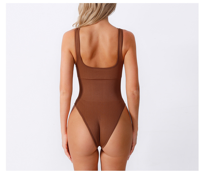秋冬季欧美收腹塑身瑜伽连体服无缝运动健身吊带式螺纹紧身连体衣