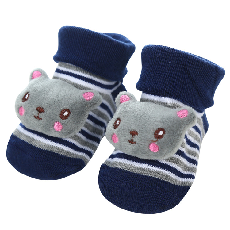 跨境卡通地板防滑儿童袜子 外贸公仔立体可爱条纹婴儿袜子