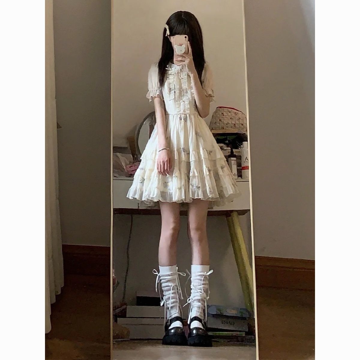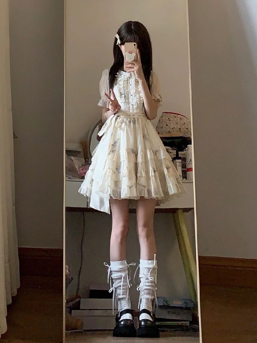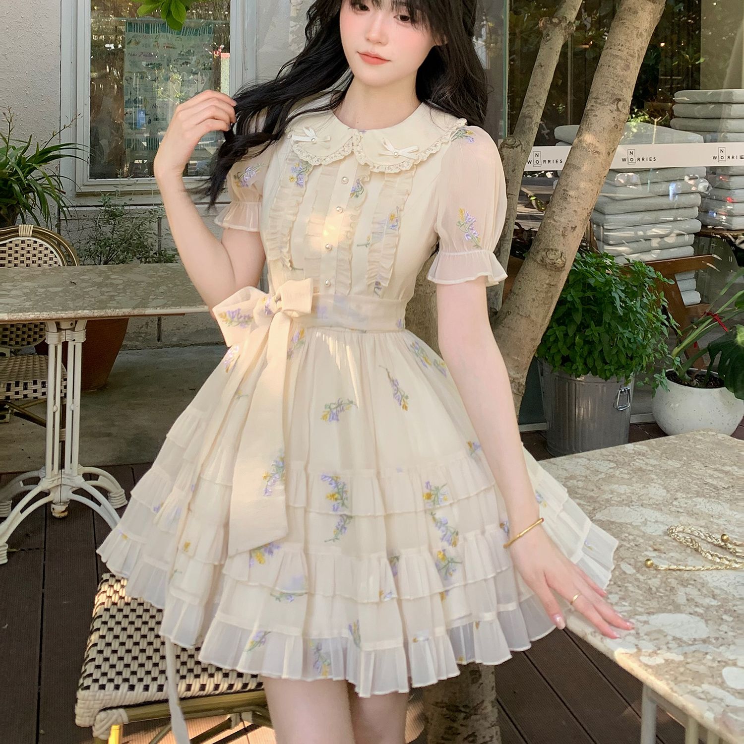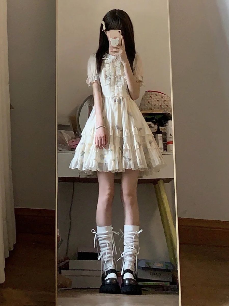 Blovelan花翎来信 可爱甜美减龄娃娃领绣花网纱连衣裙夏