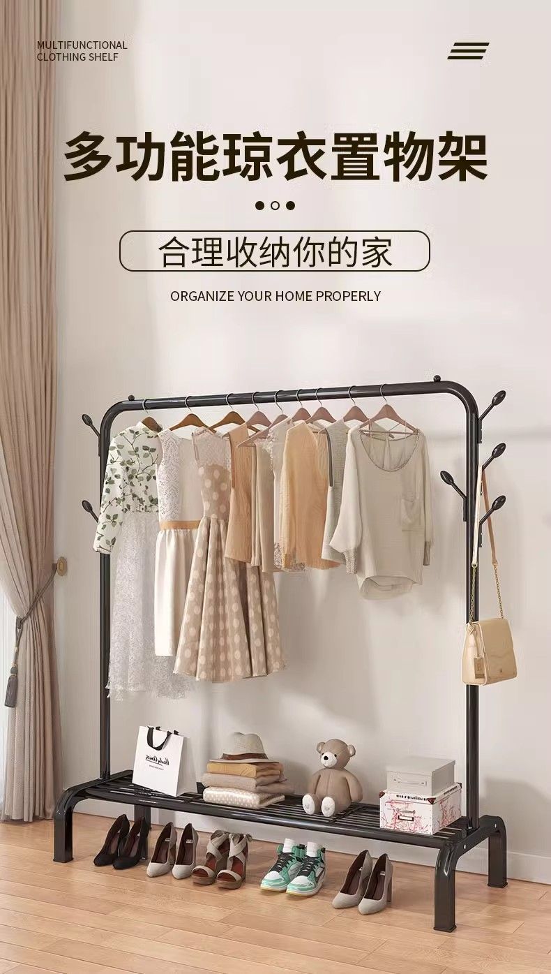 | black-single row clothes hanger 150. 1cm (multi-hook + reinforced base)(黑-单排衣挂150.1CM(多钩+加固底座)) | USD $4.75 | 999999 piece available |