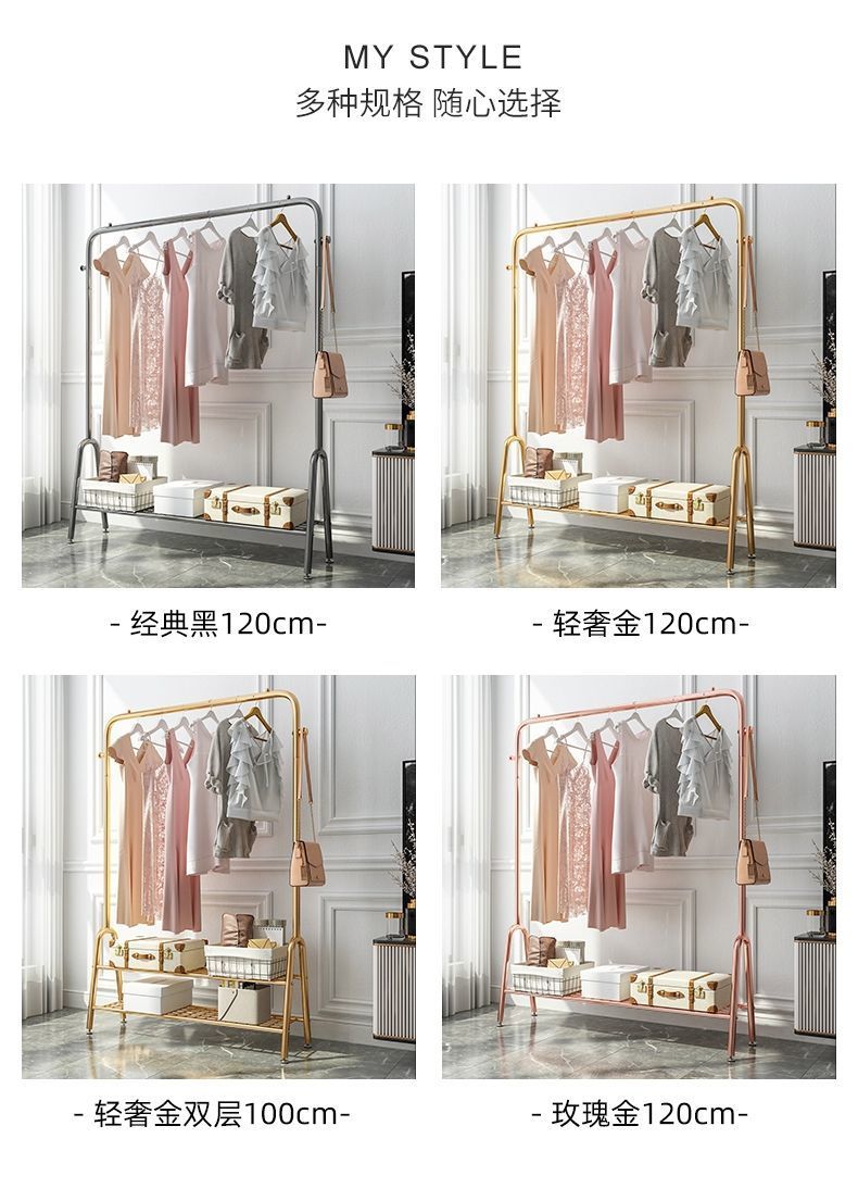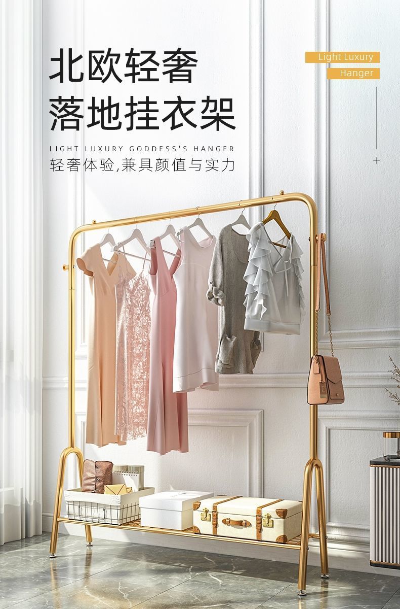 轻奢晾衣架鞋架落地衣帽架家居卧室铁艺挂衣架阳台晒衣架落地立式