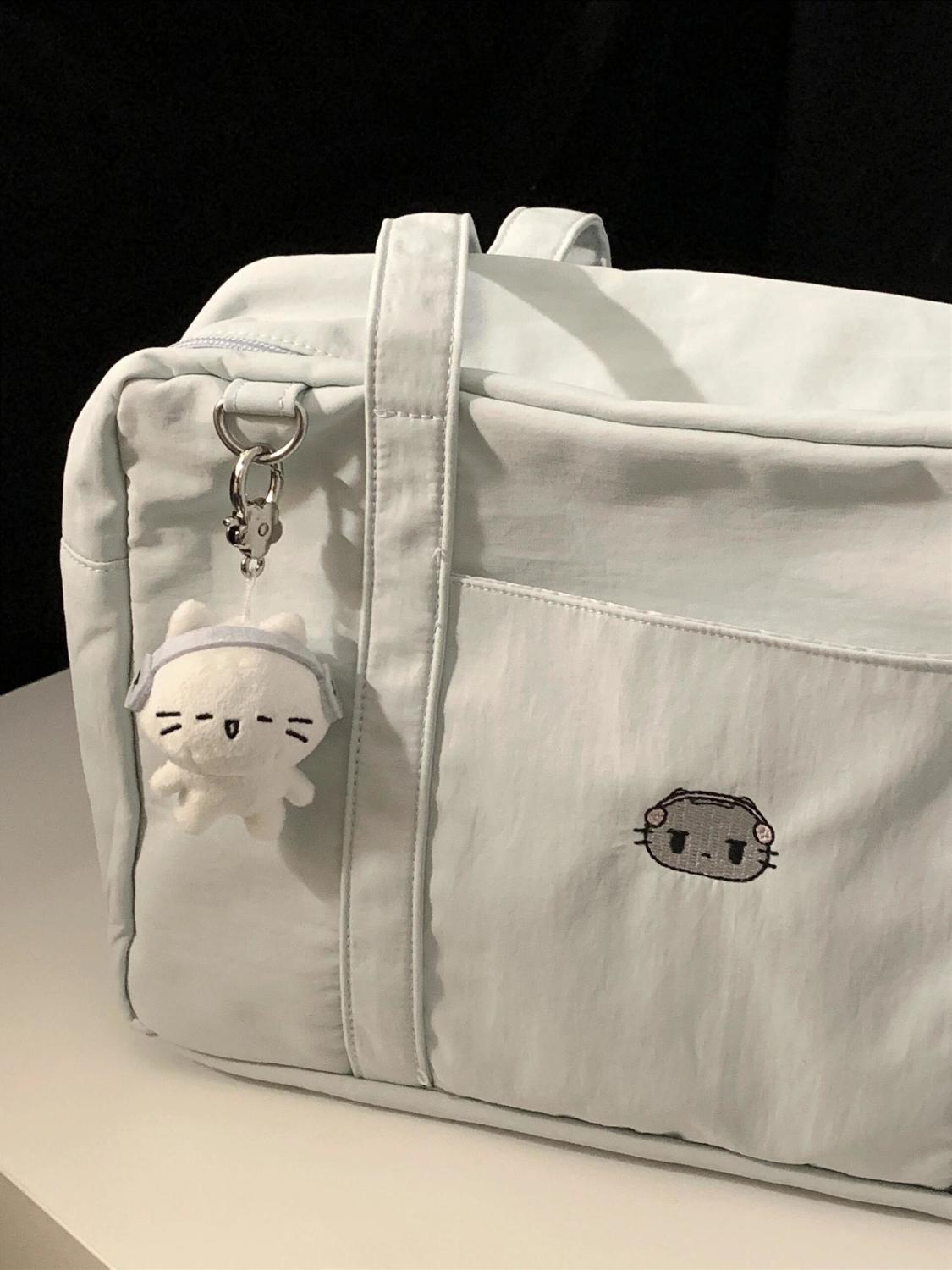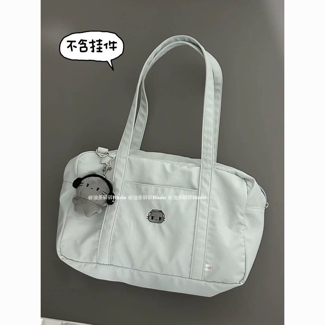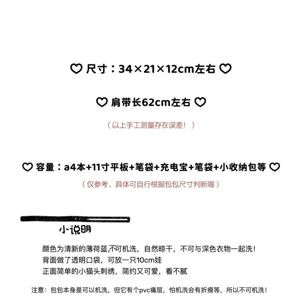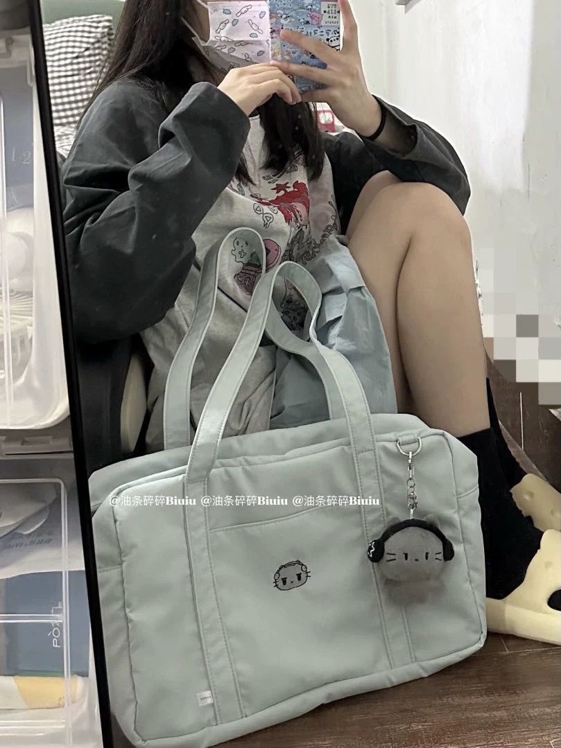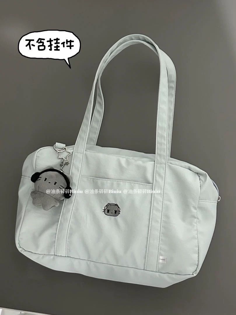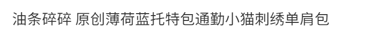 油条碎碎 原创薄荷蓝托特包通勤小猫刺绣单肩包