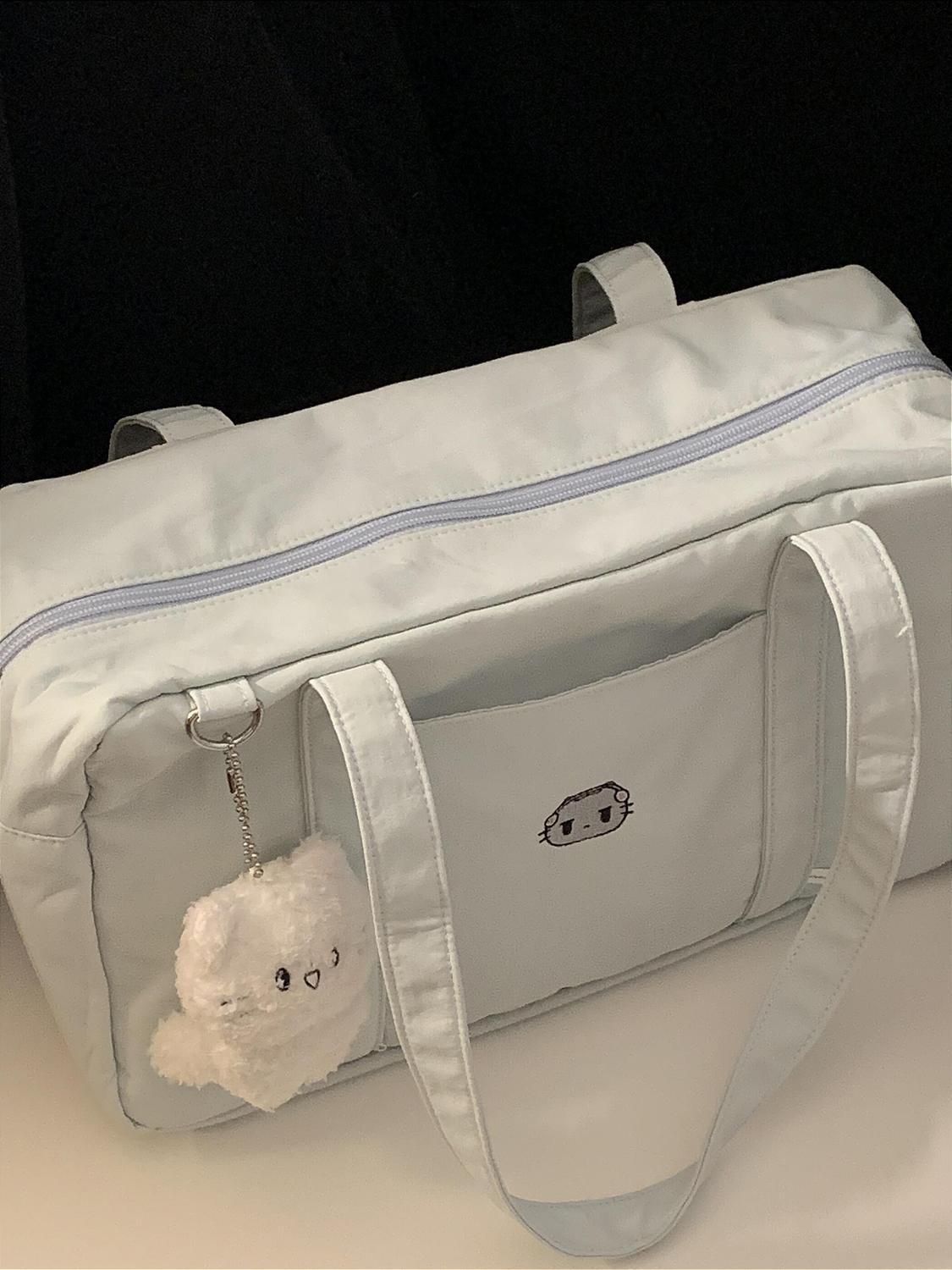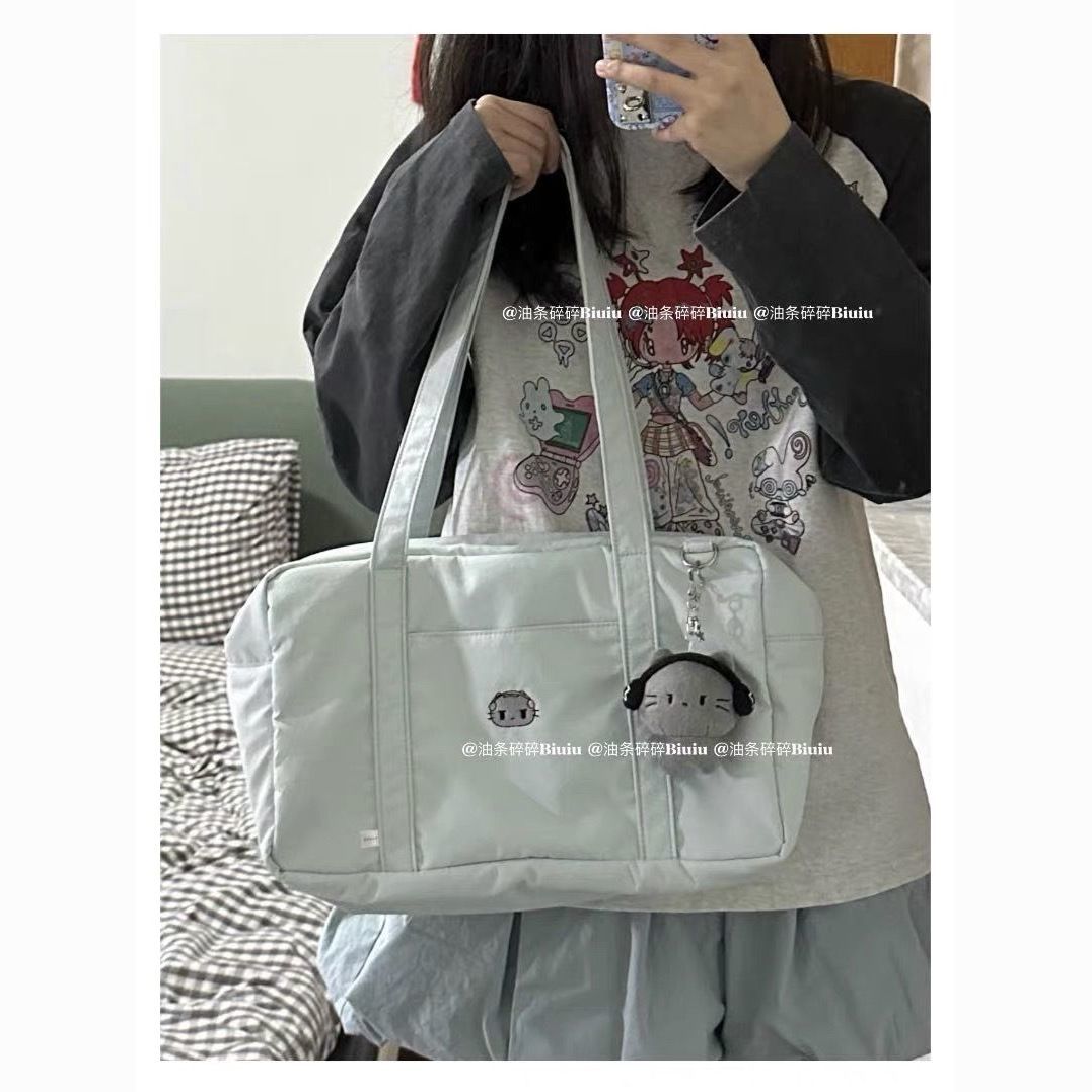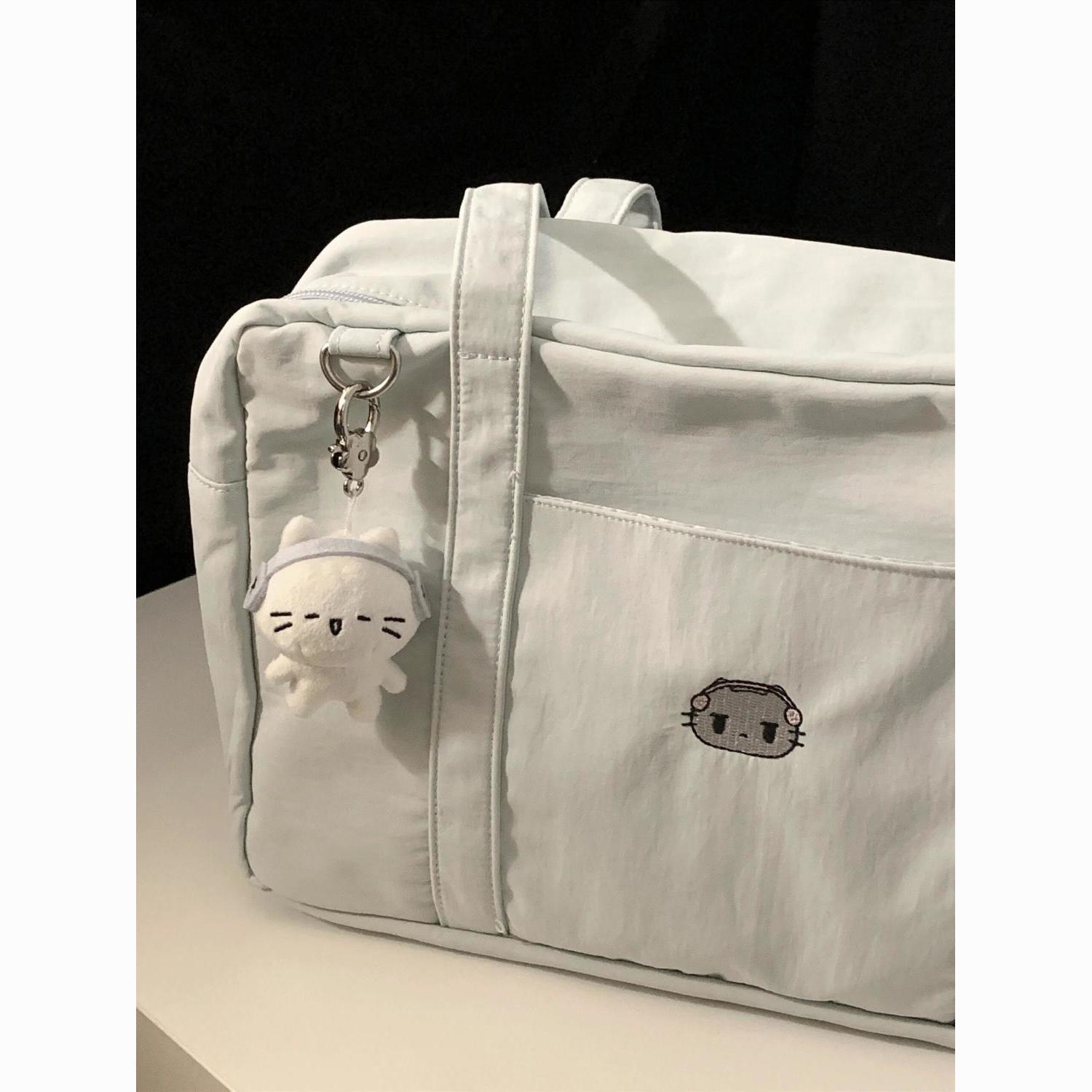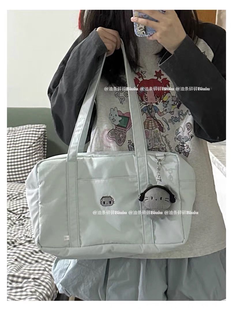 油条碎碎 原创薄荷蓝托特包通勤小猫刺绣单肩包