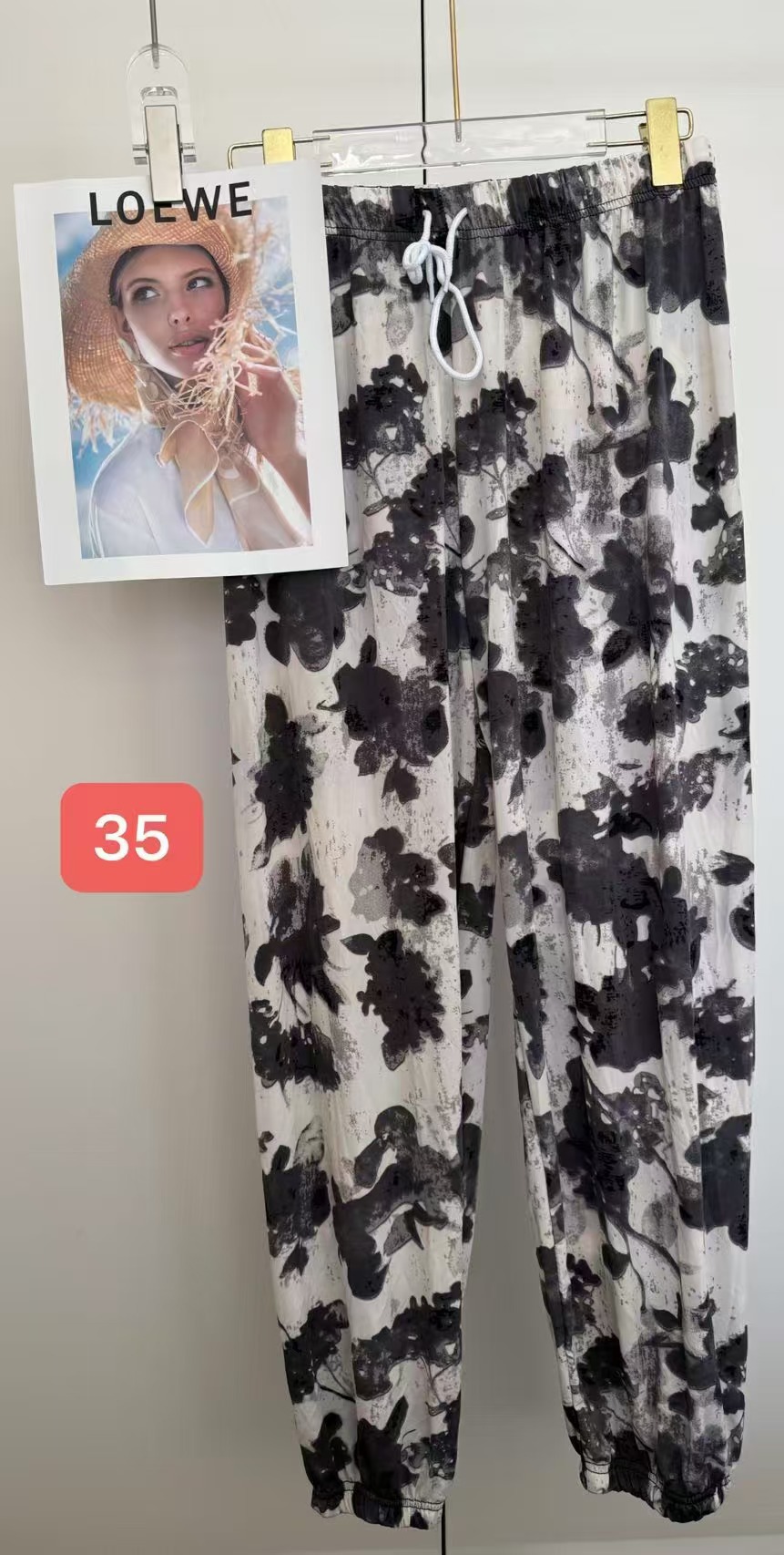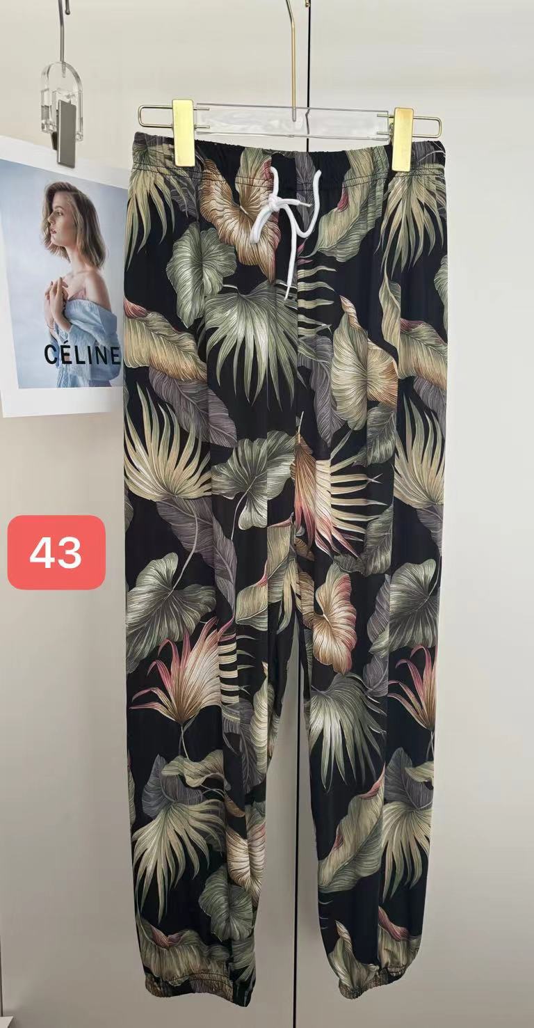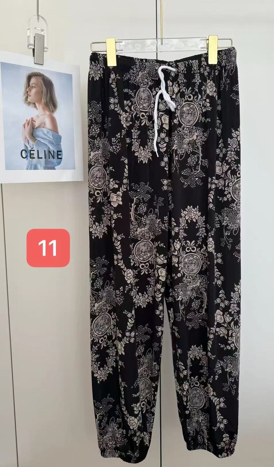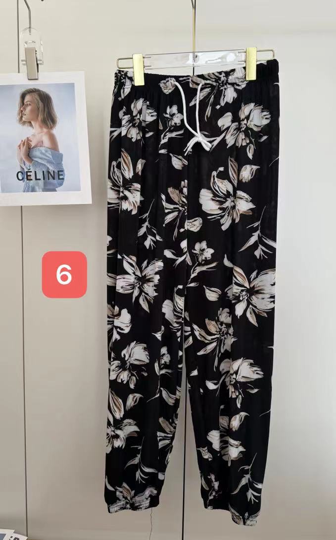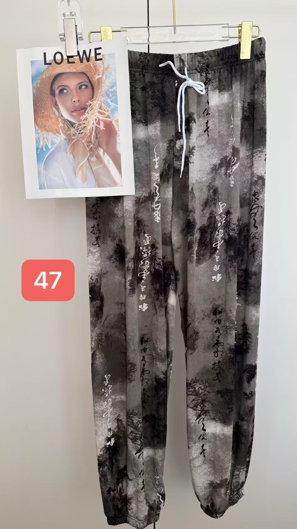 冰丝印花休闲裤女夏爆高腰宽松束脚九分灯笼裤紧口裤凉凉花裤防蚊