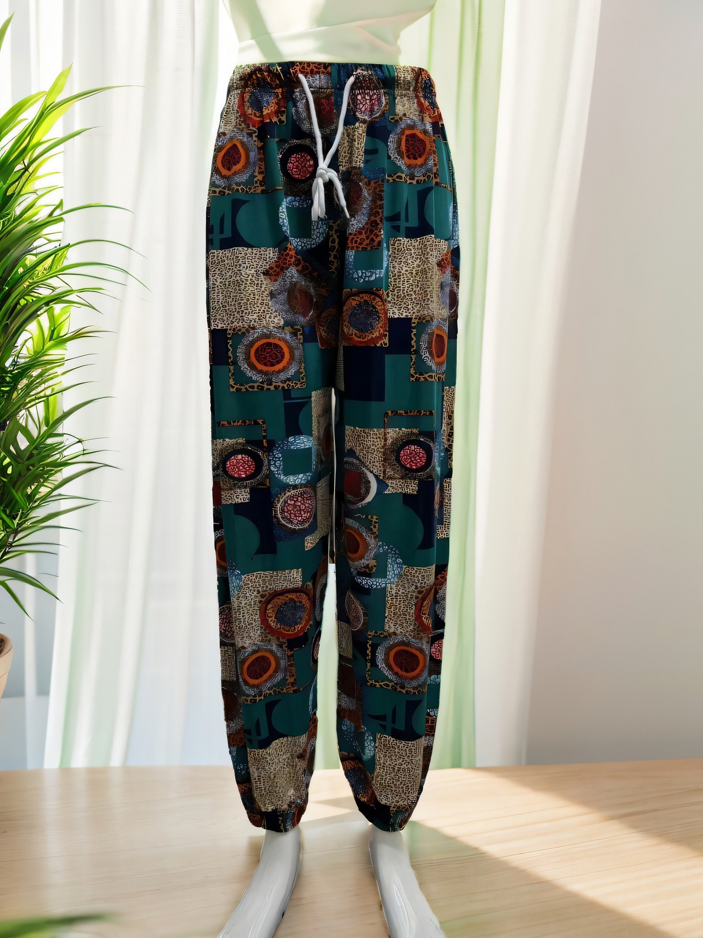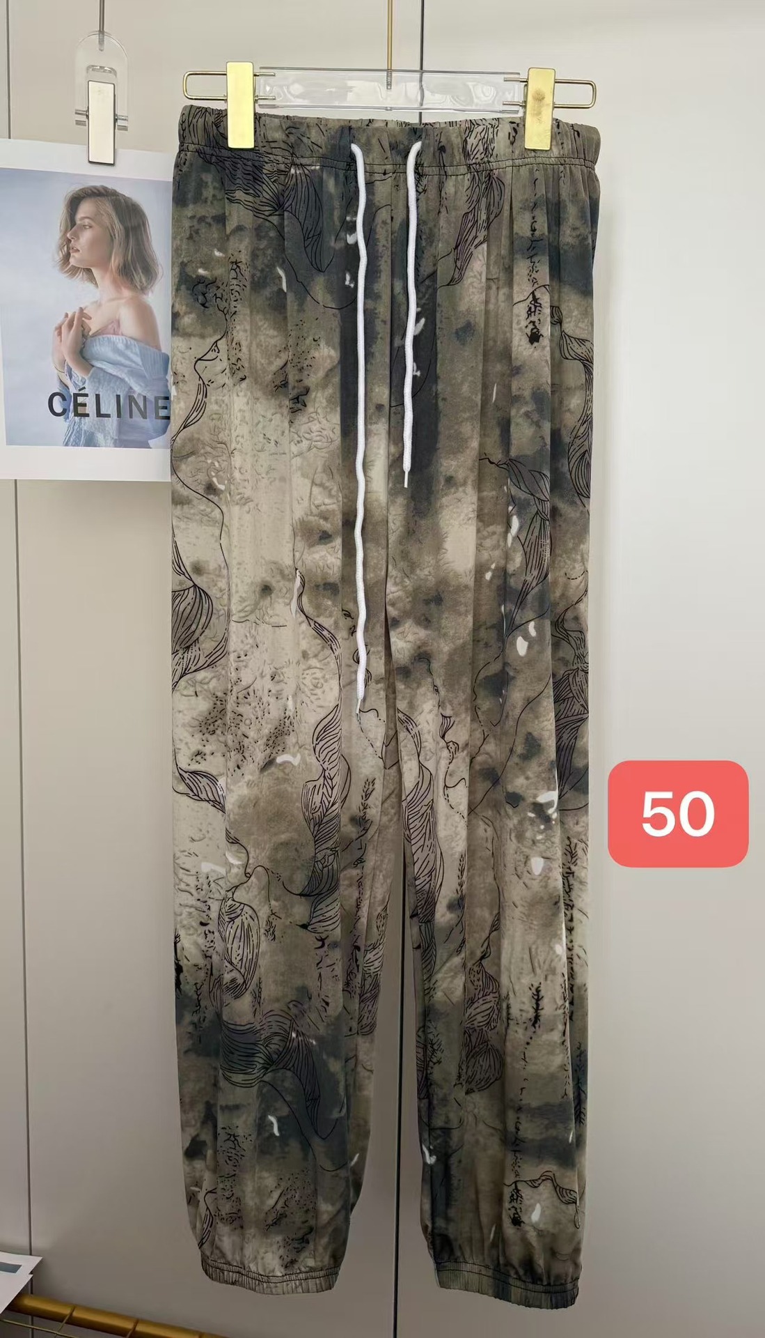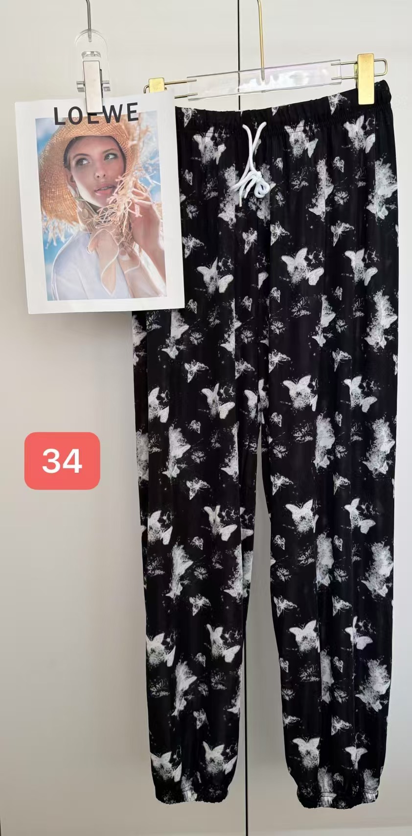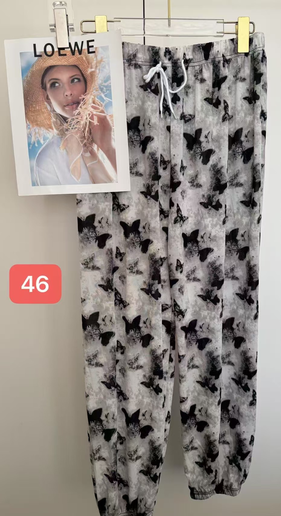 冰丝印花休闲裤女夏爆高腰宽松束脚九分灯笼裤紧口裤凉凉花裤防蚊