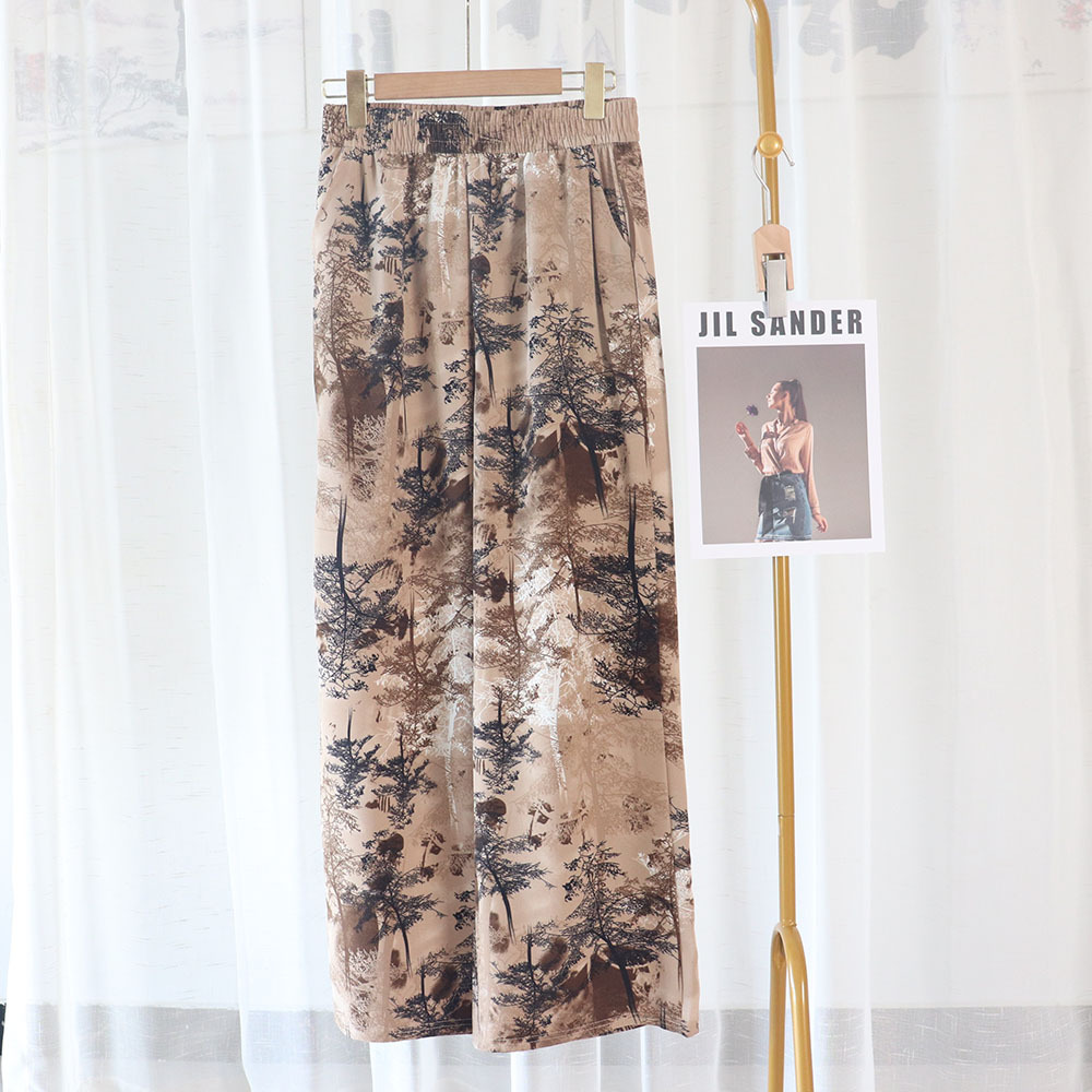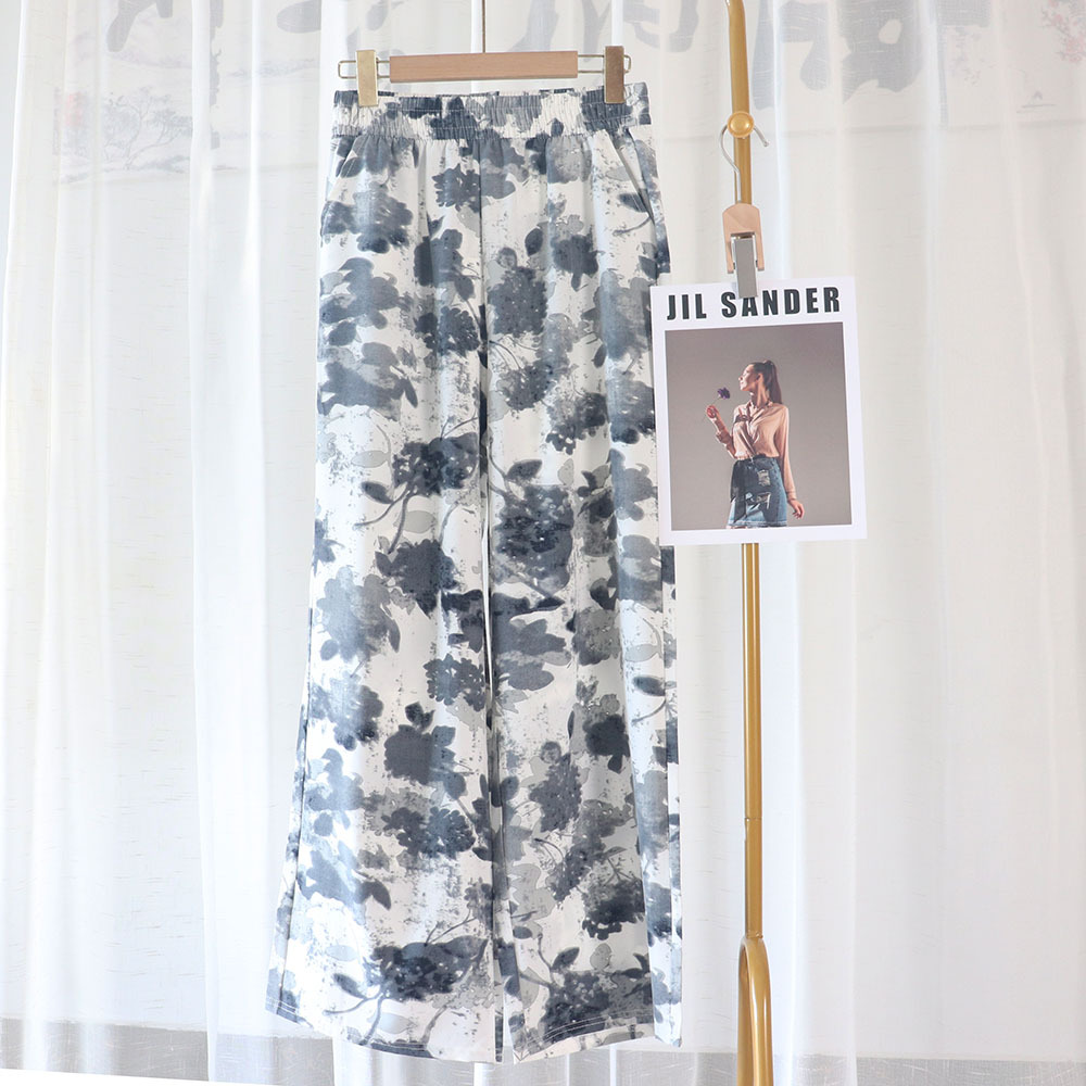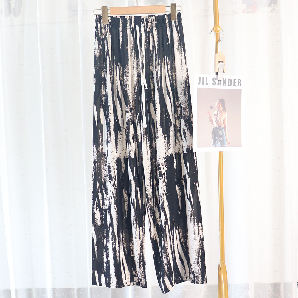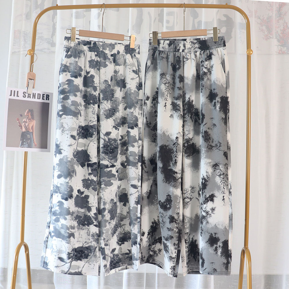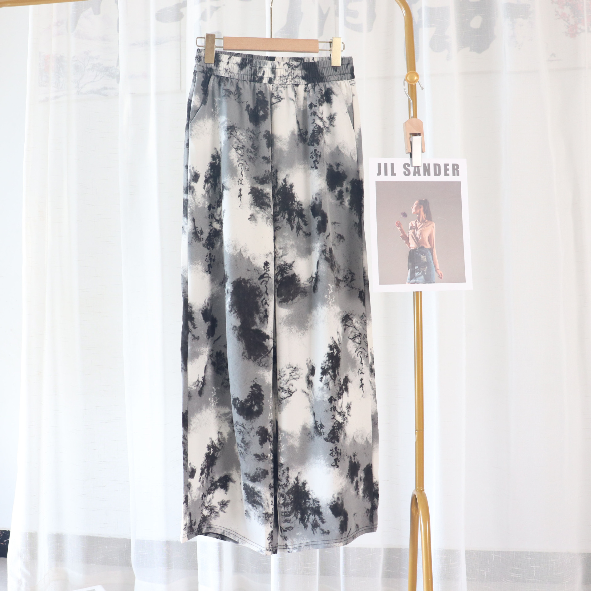 醋酸阔腿裤女2025新款夏季高腰垂感水墨扎染印花大码凉凉裤薄裤子