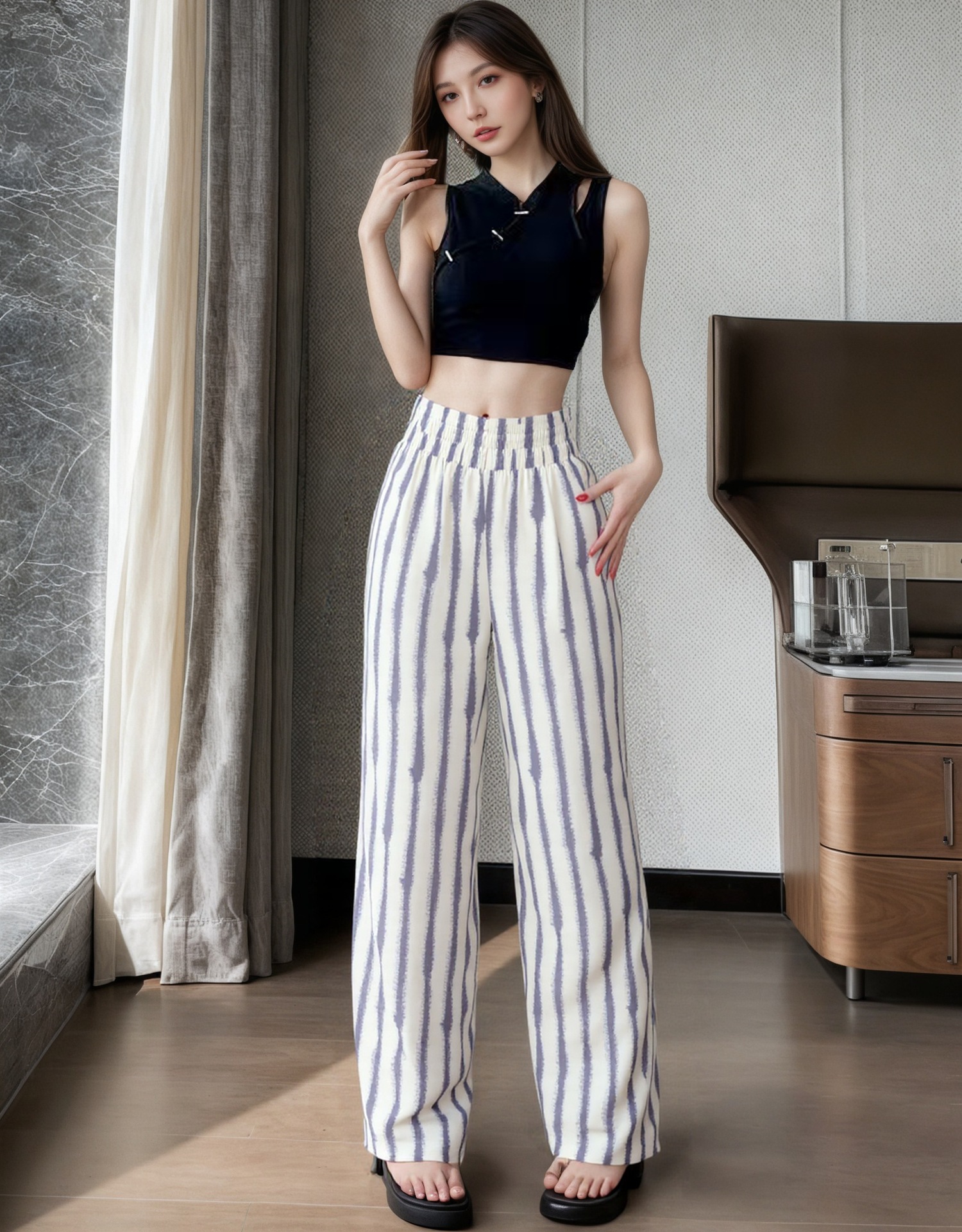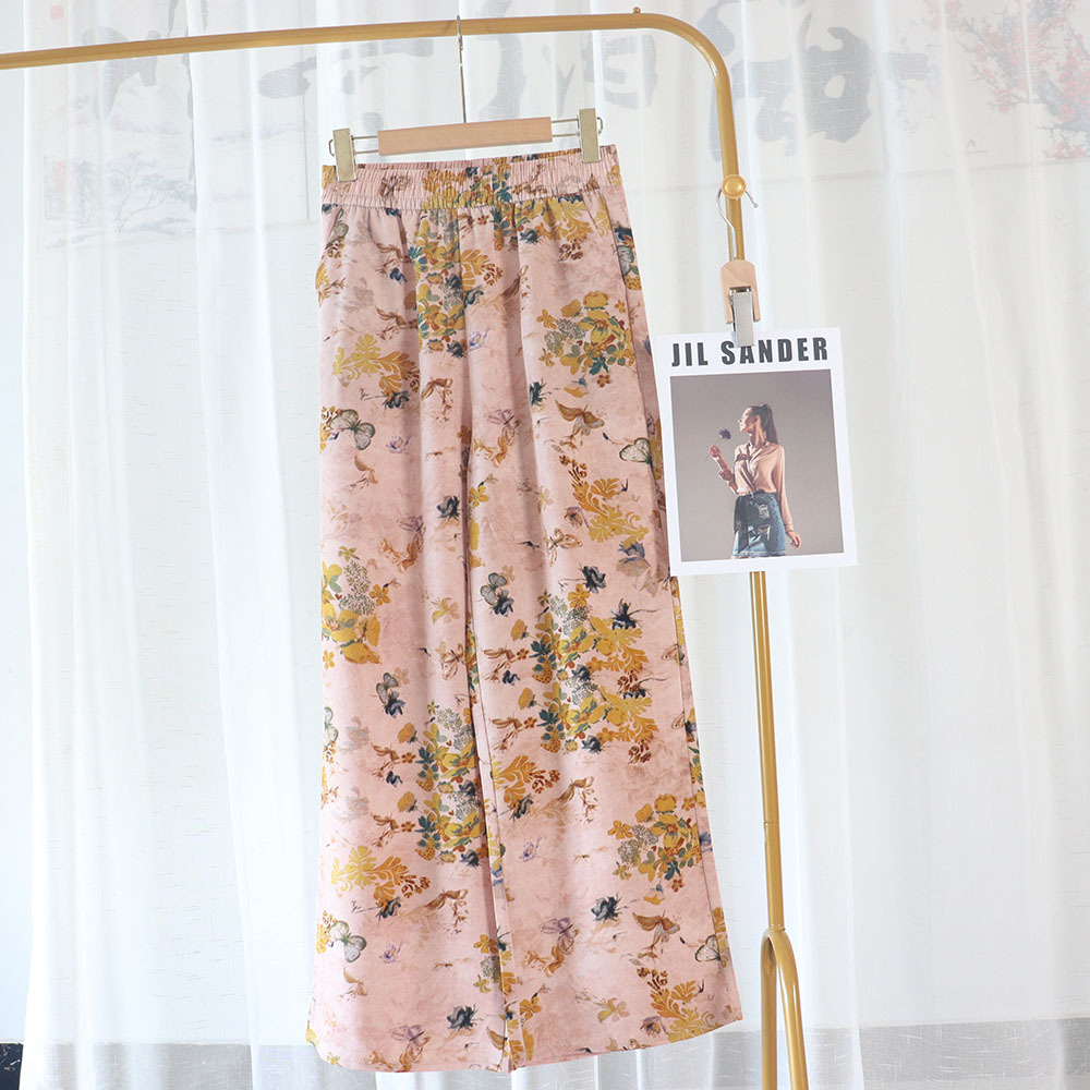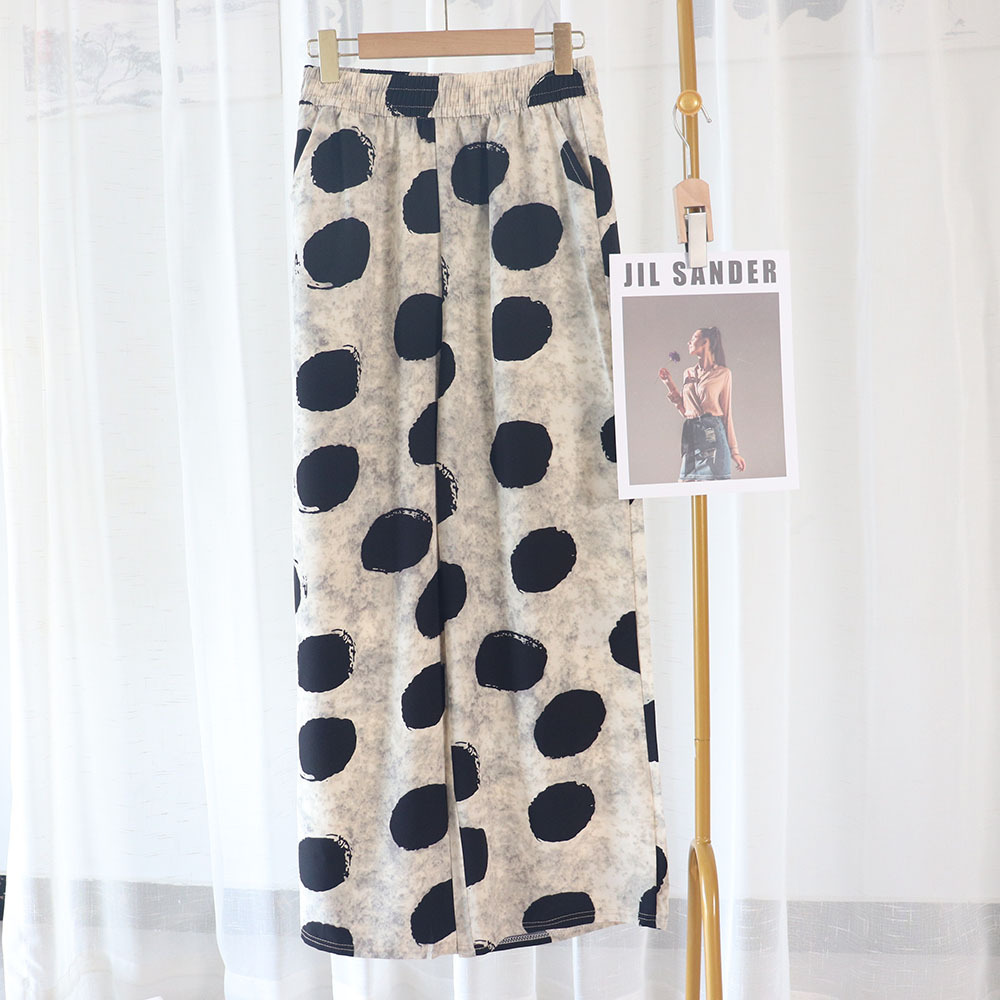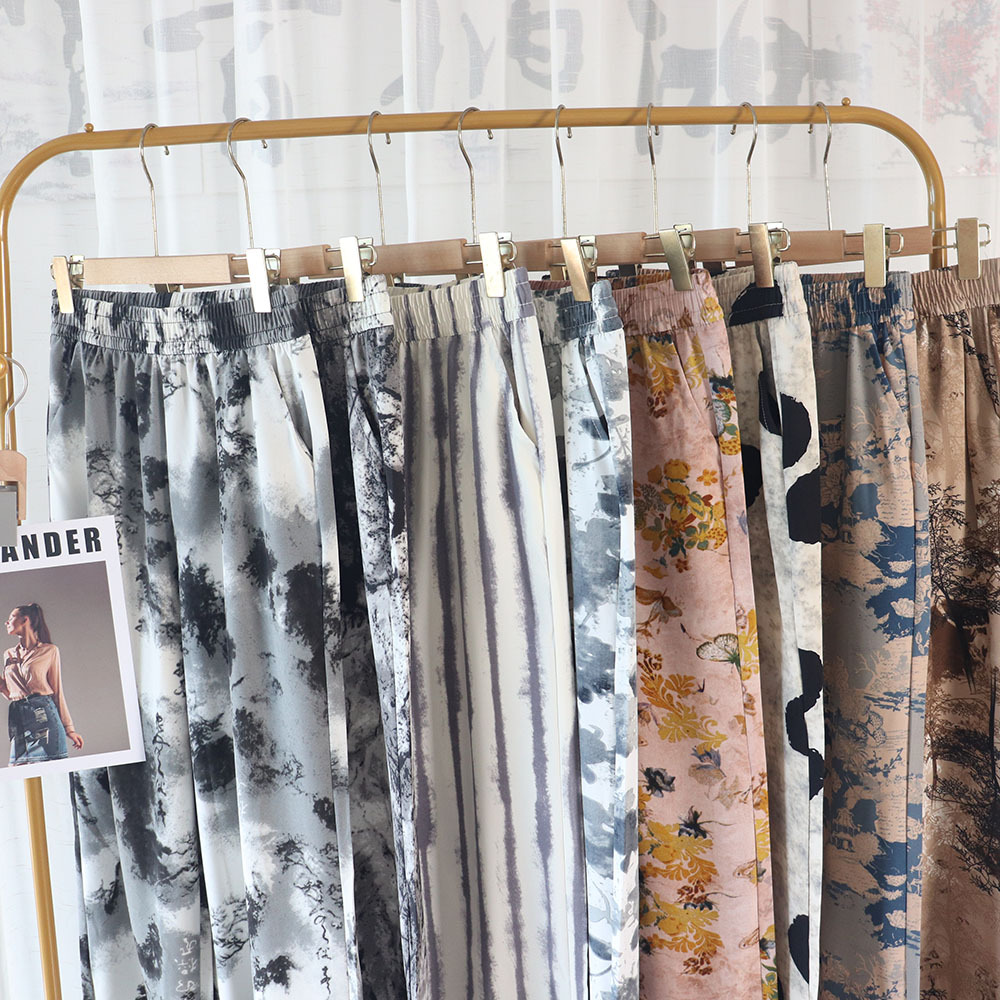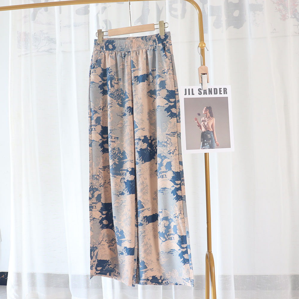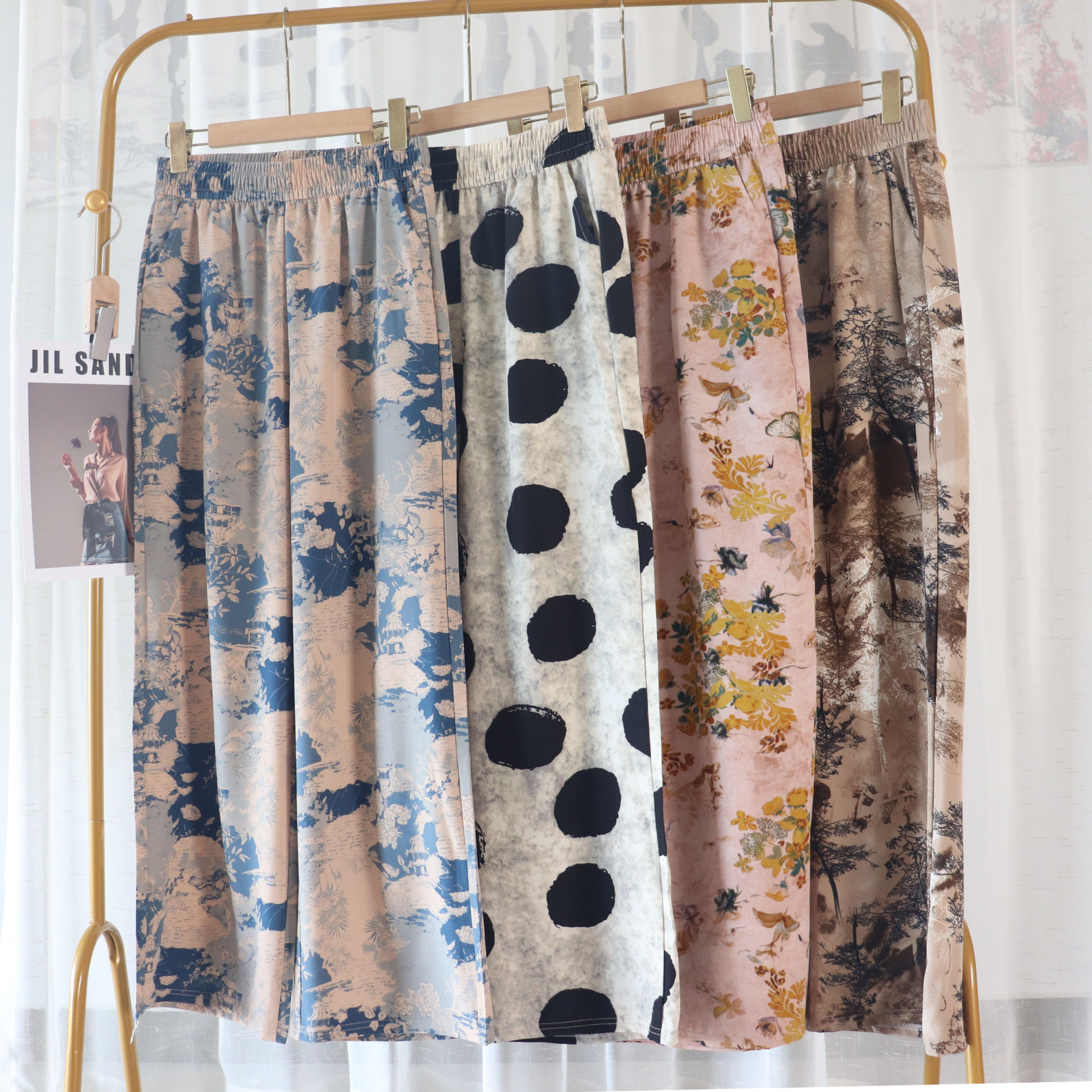 醋酸阔腿裤女2025新款夏季高腰垂感水墨扎染印花大码凉凉裤薄裤子