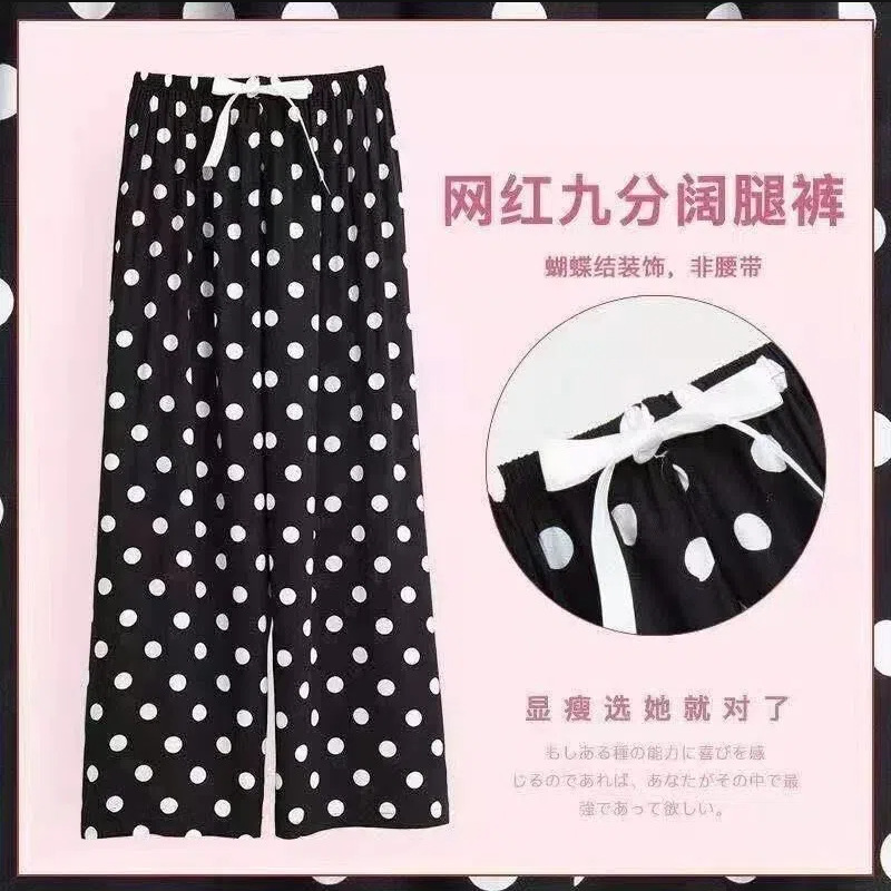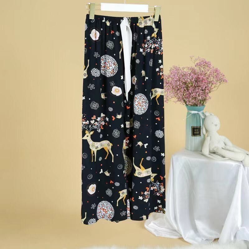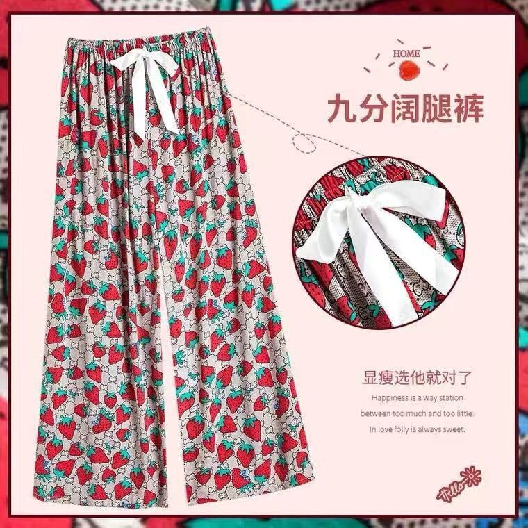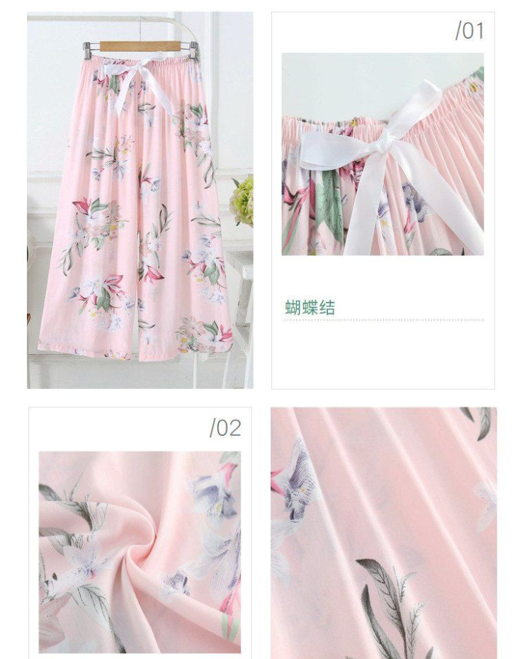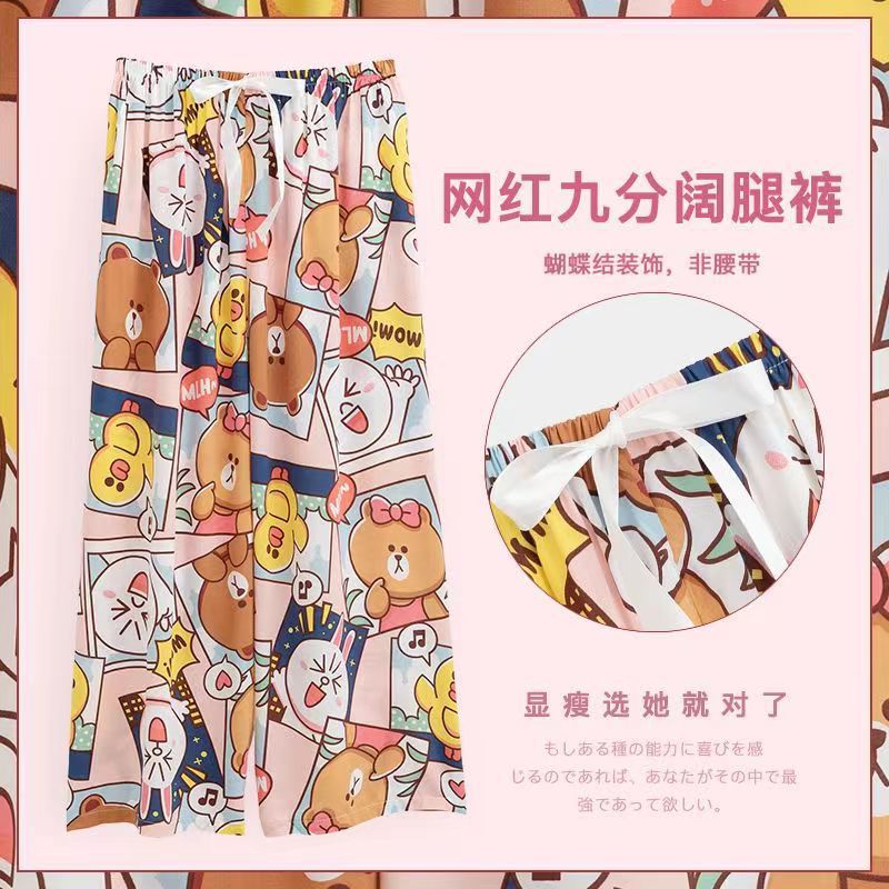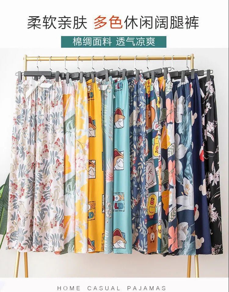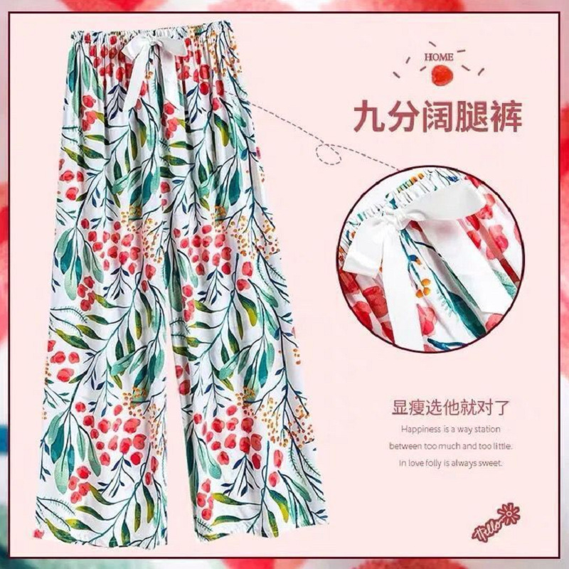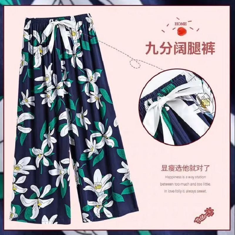 夏季棉绸睡裤女宽松大码阔腿裤九分裤女家居可外穿人造棉休闲裤子