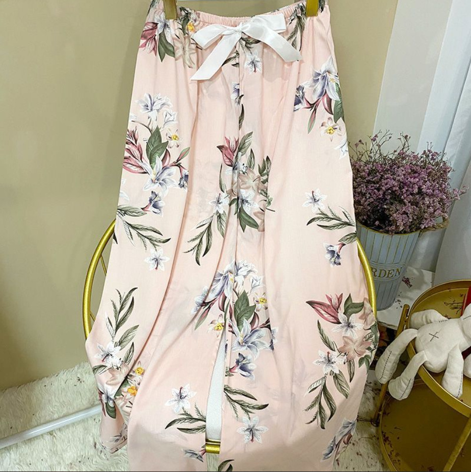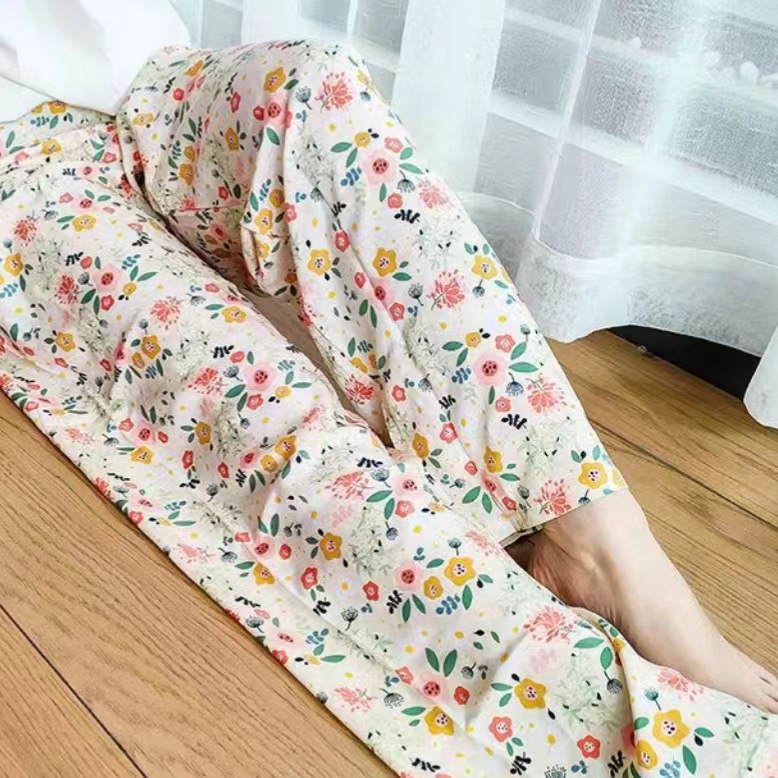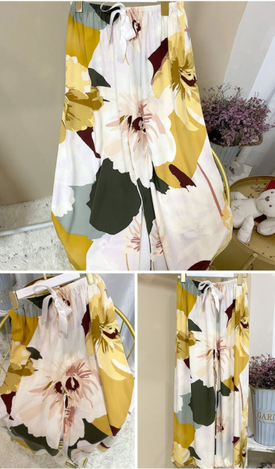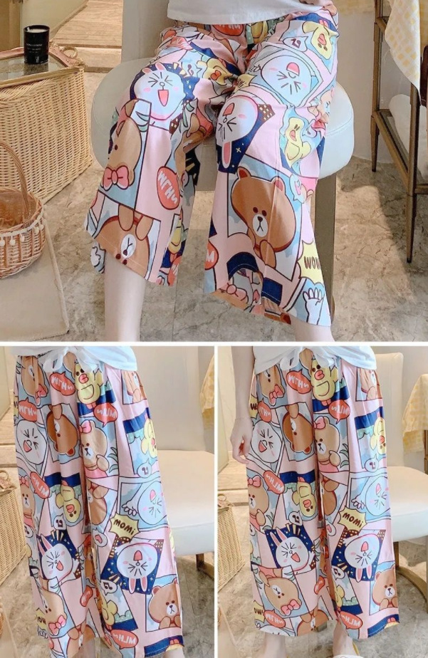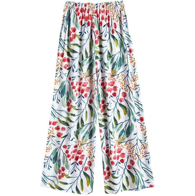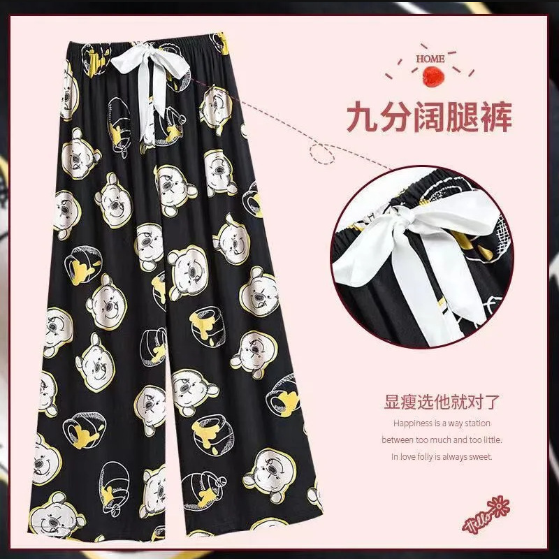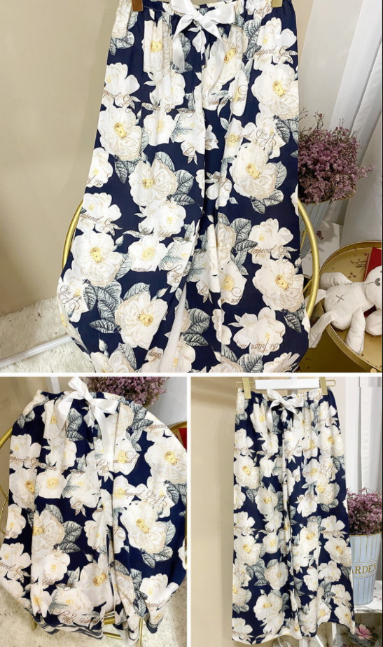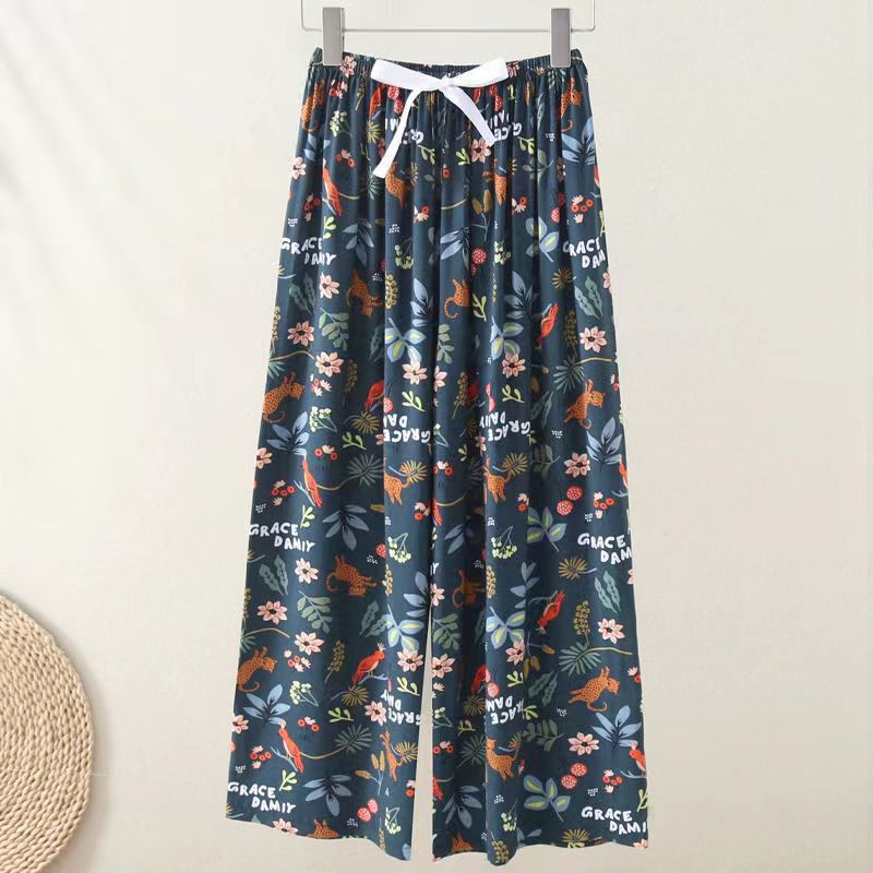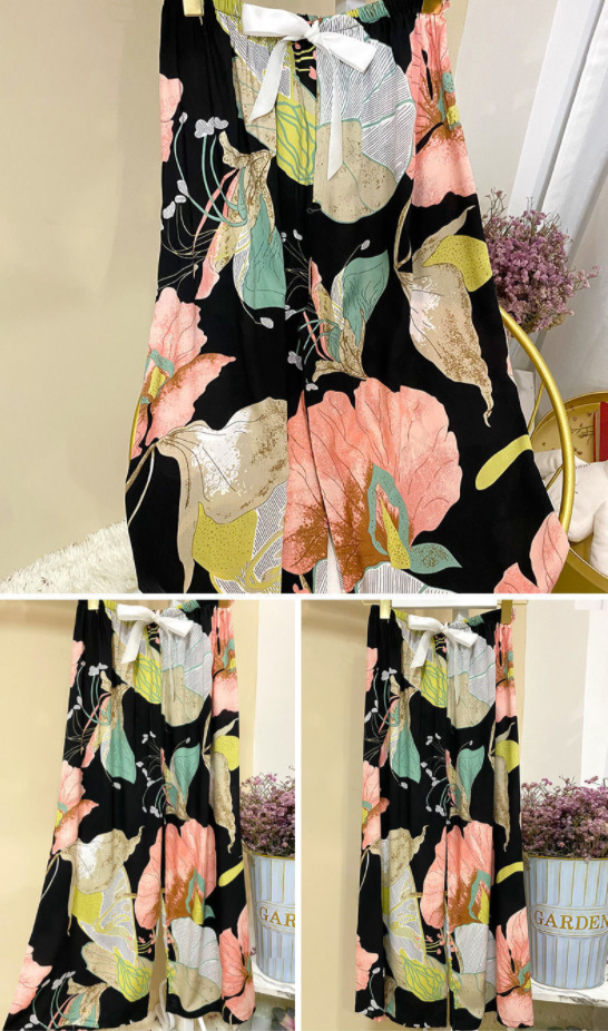 夏季棉绸睡裤女宽松大码阔腿裤九分裤女家居可外穿人造棉休闲裤子