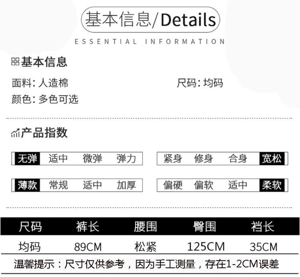 | plus size [recommended 60.00 kg-80.00 kg]](加大码【建议120-160斤】) | USD $2.46 | 10000 piece available |