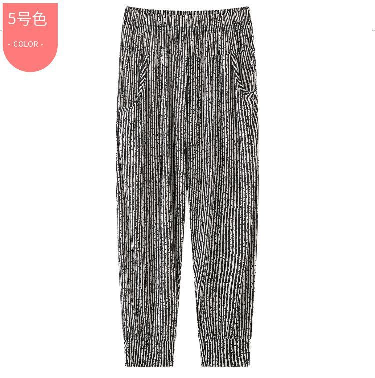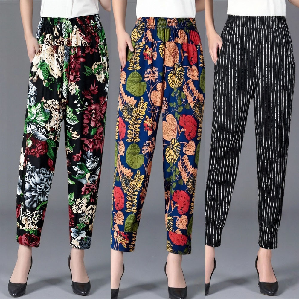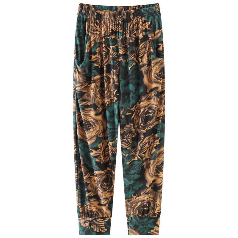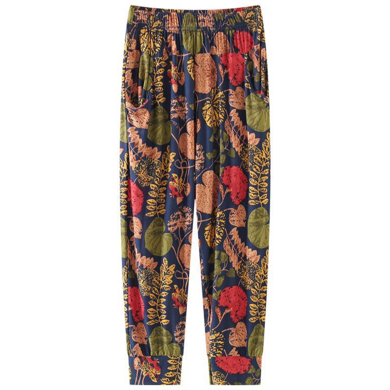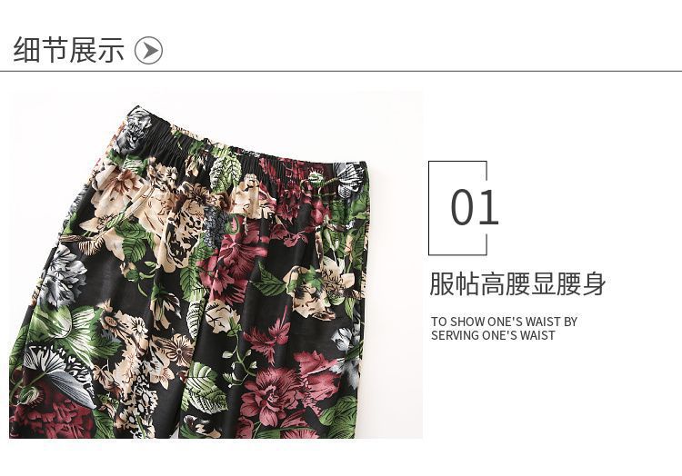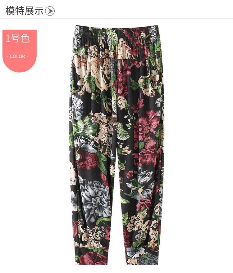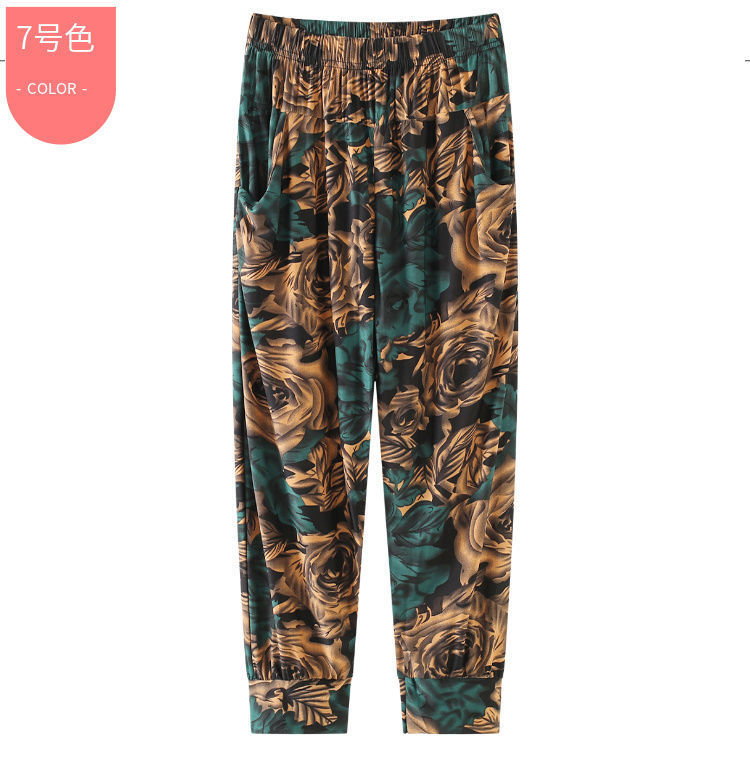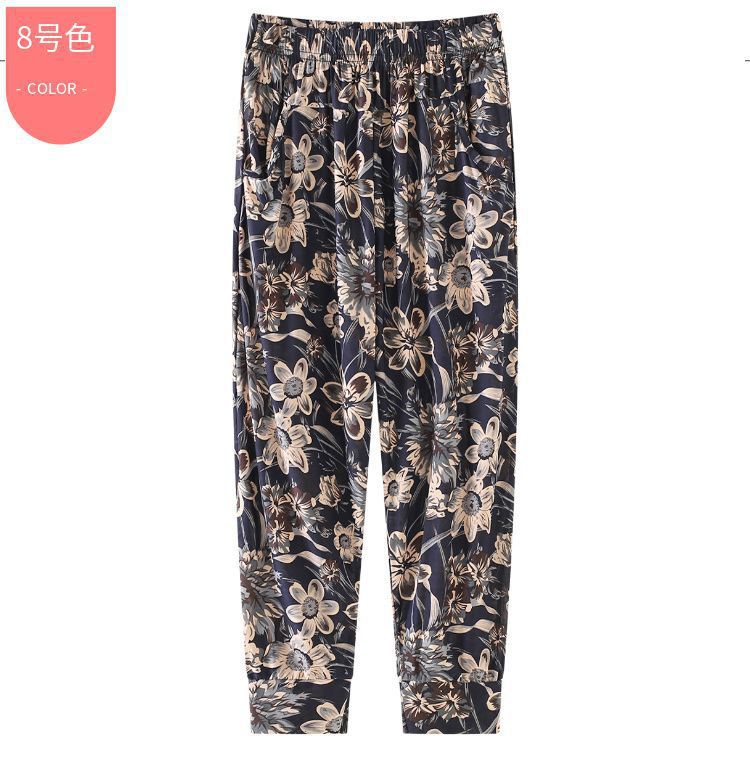 妈妈裤女夏季九分奶奶奶裤薄款中老年花裤大码宽松女裤冰丝裤