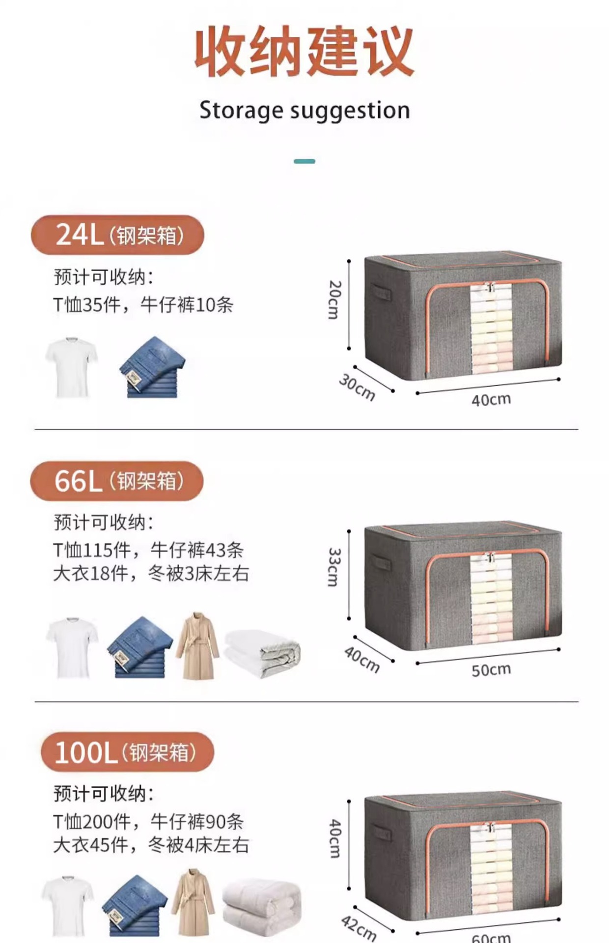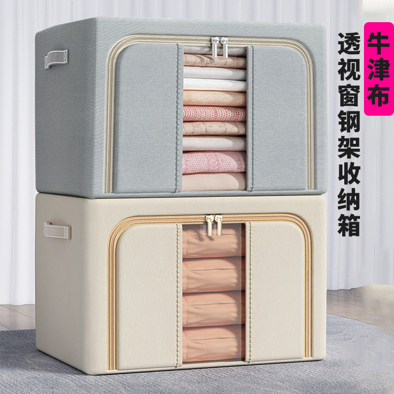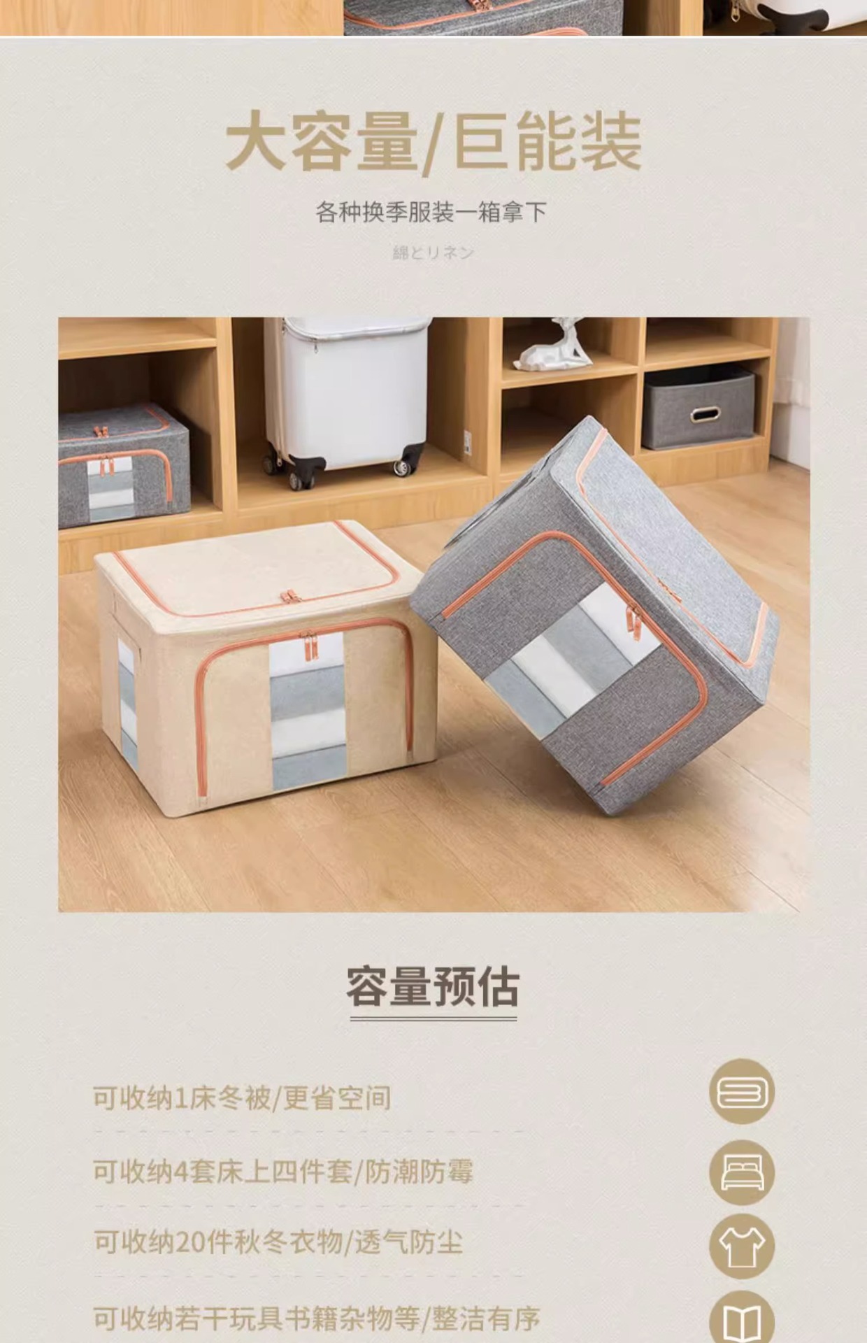 布艺钢架收纳箱家用可折叠衣柜整理箱搬家卧室收纳盒储物箱百纳箱