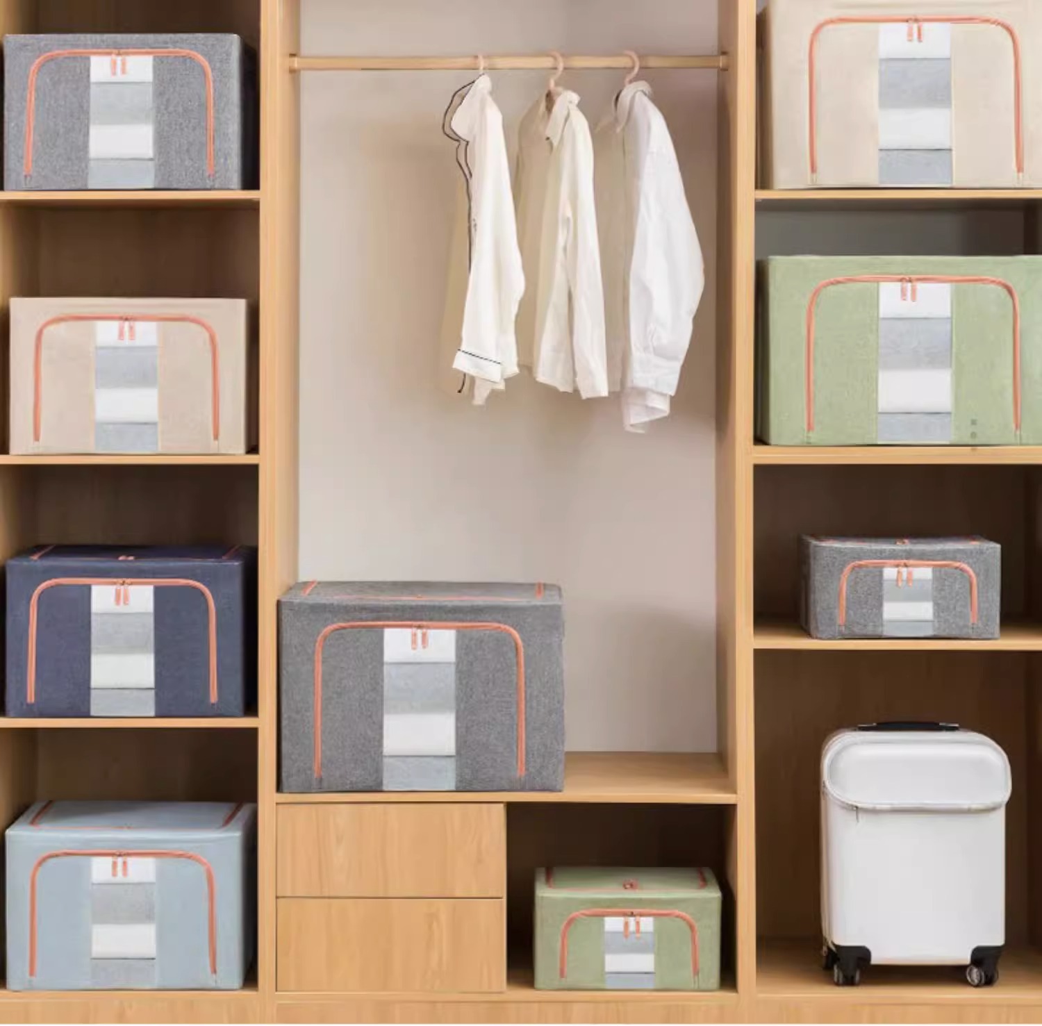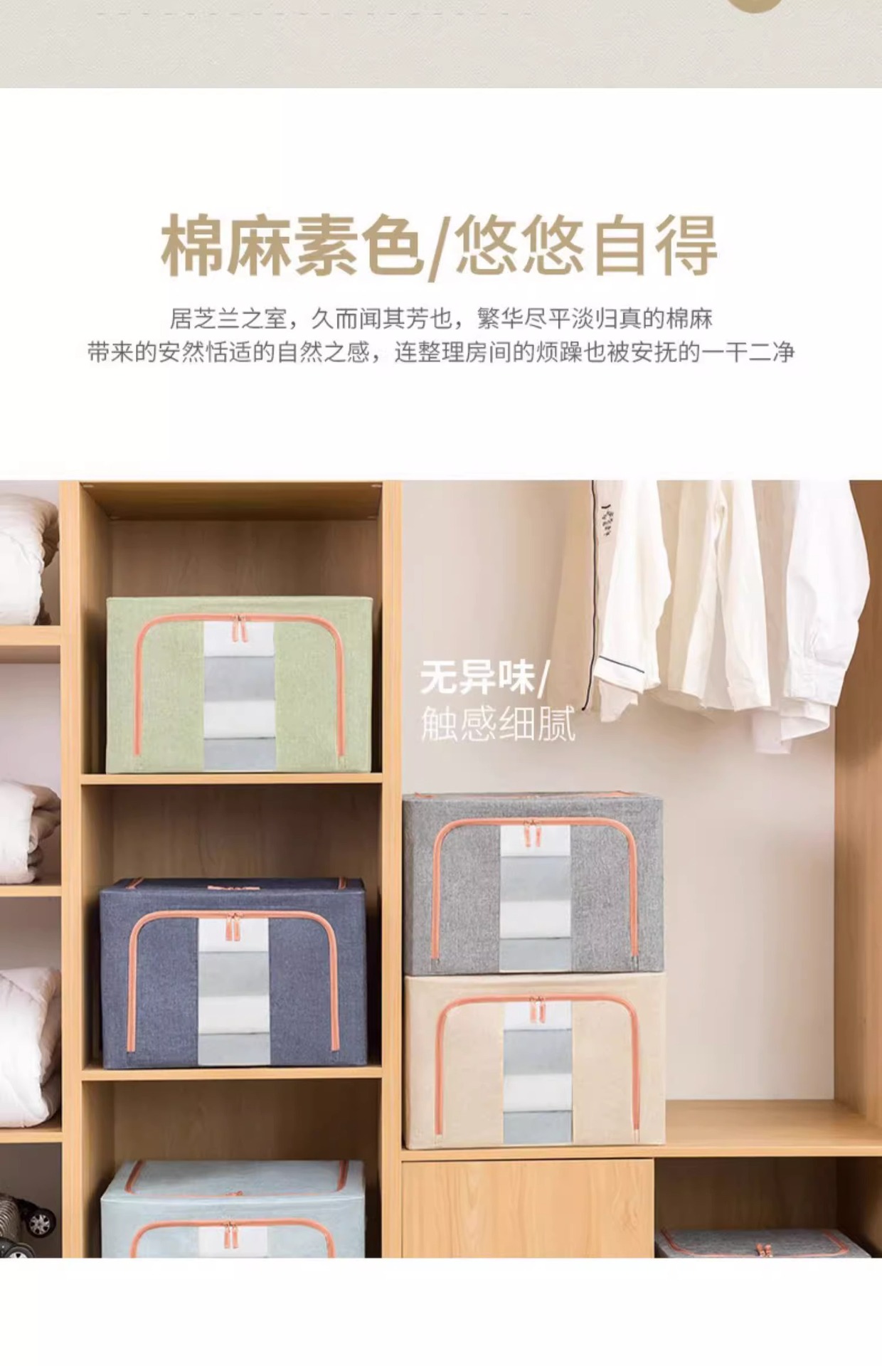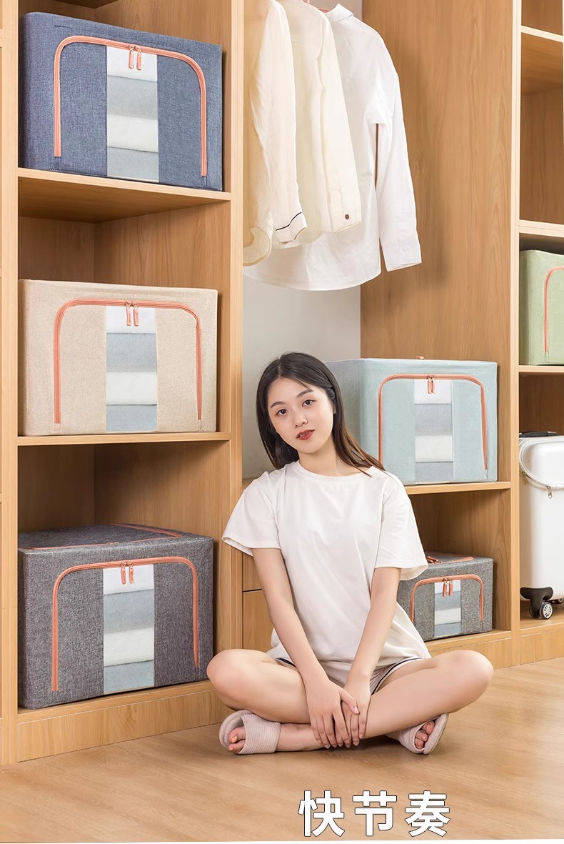 布艺钢架收纳箱家用可折叠衣柜整理箱搬家卧室收纳盒储物箱百纳箱