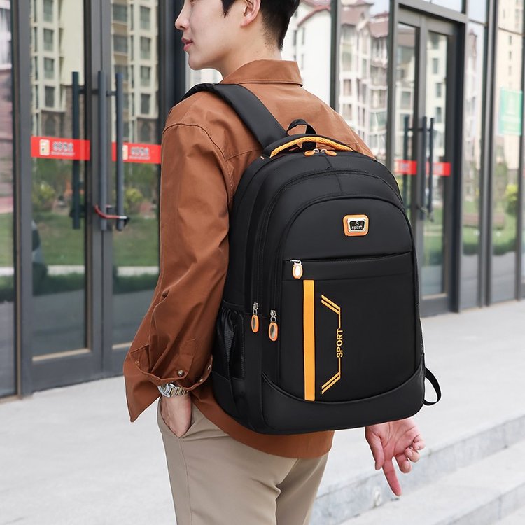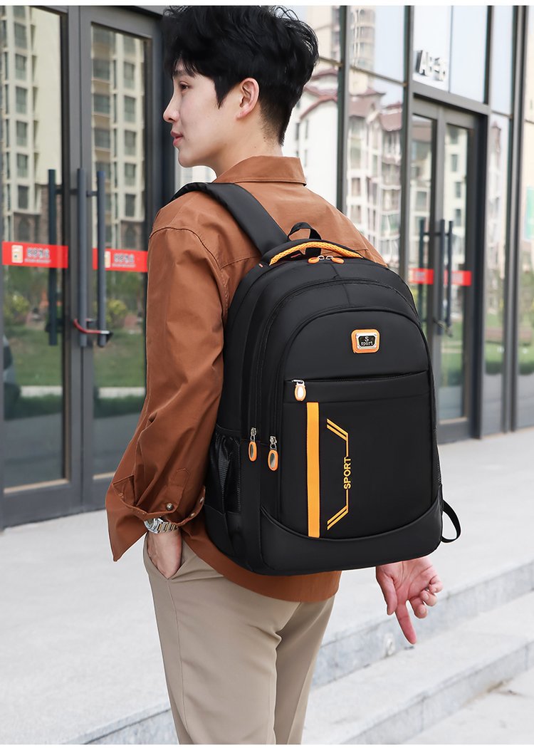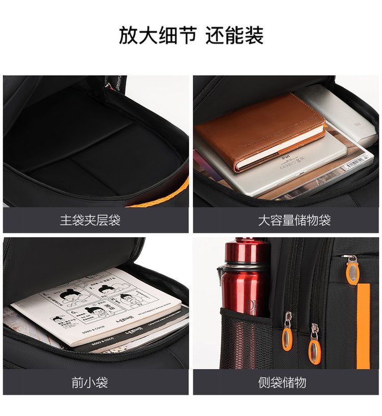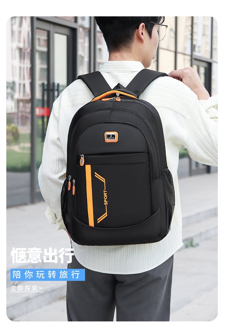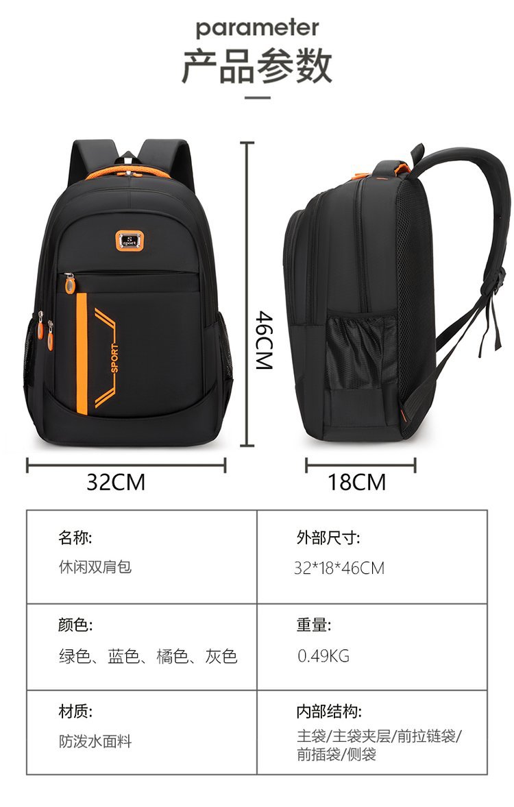 轻松穿搭,双肩包让你更加时尚黑色均码桔色绿色蓝色男商务出行