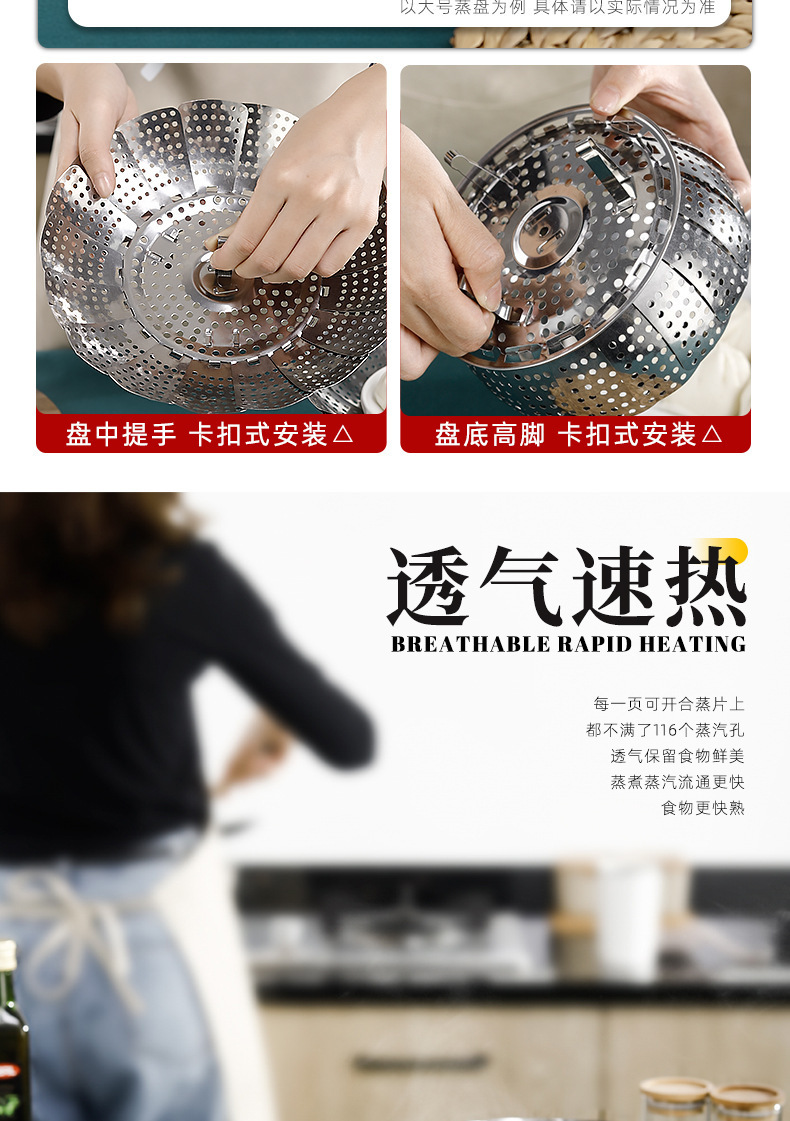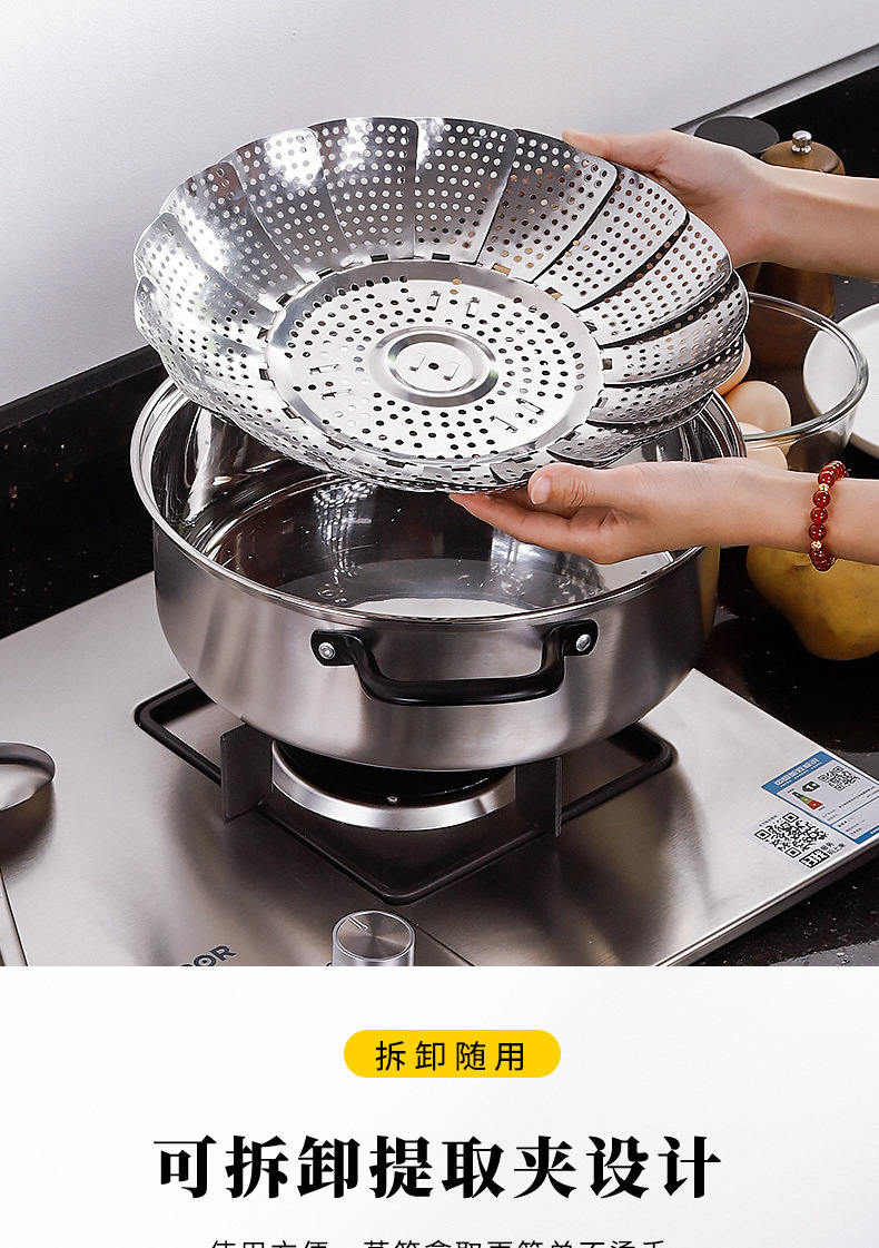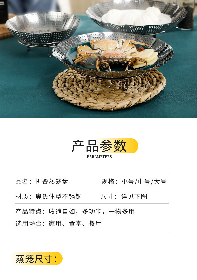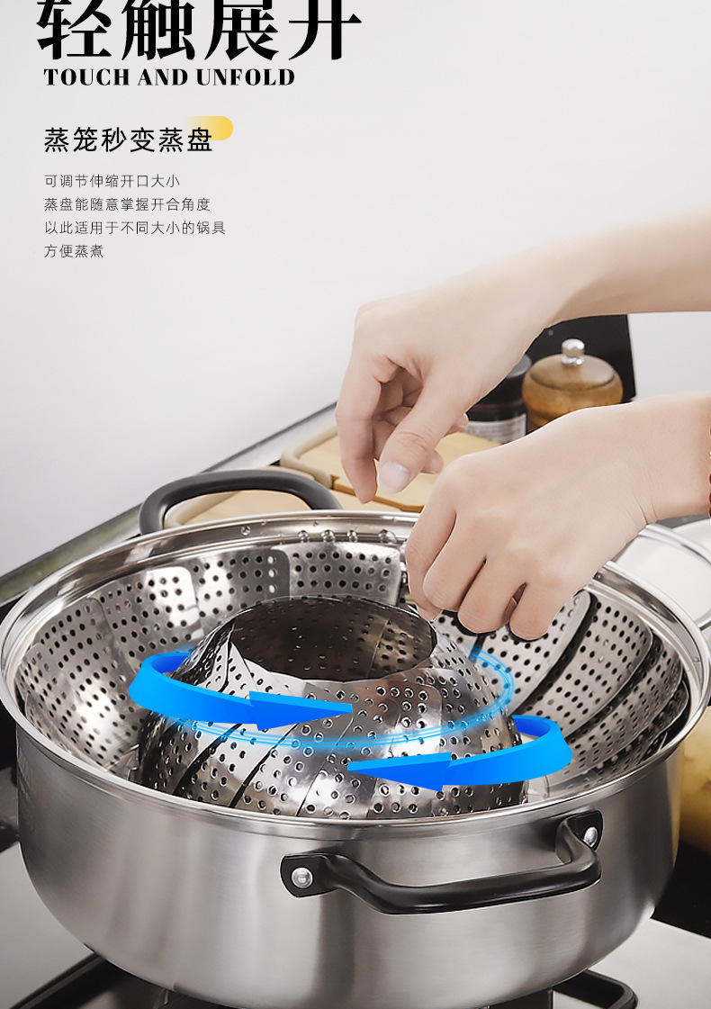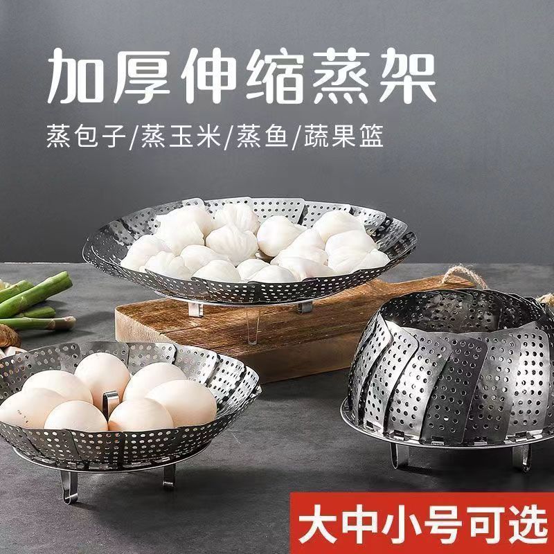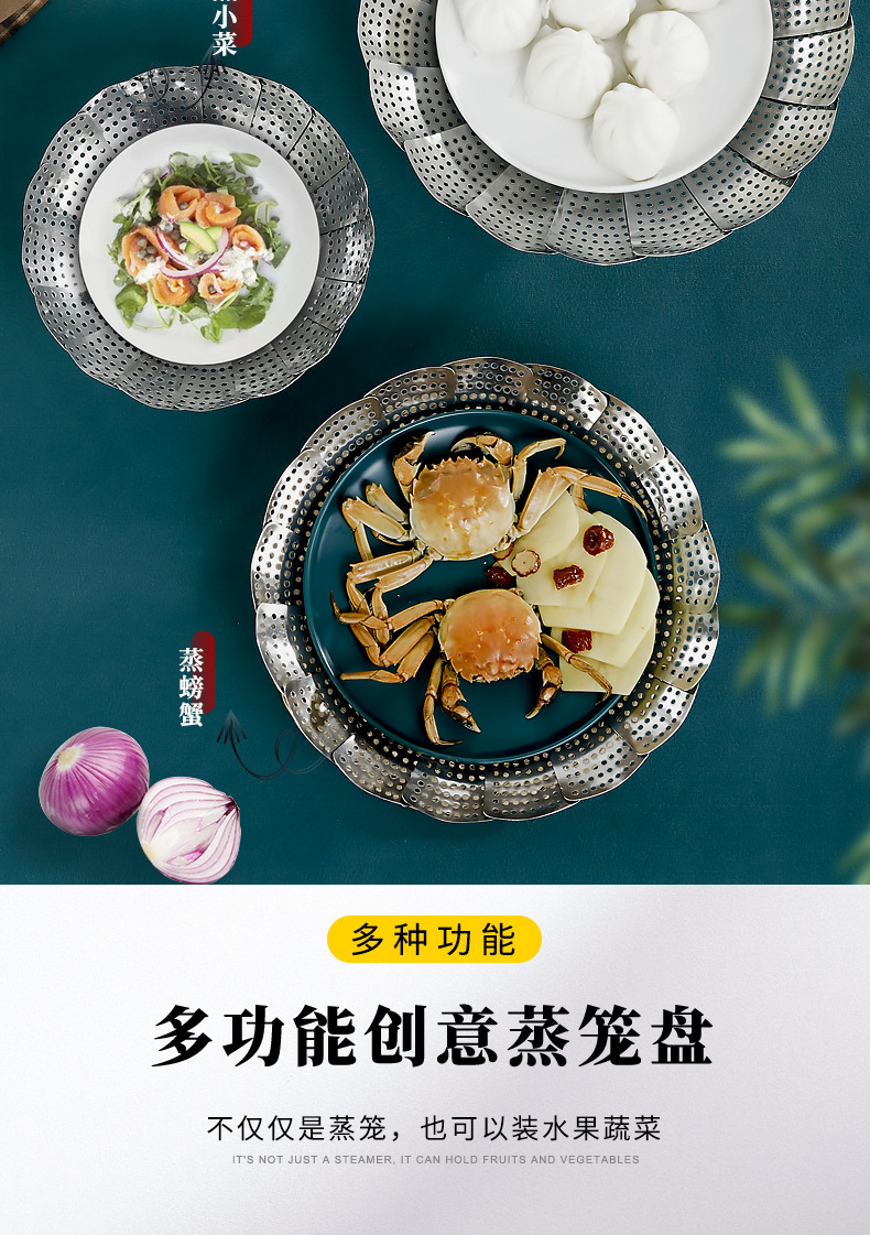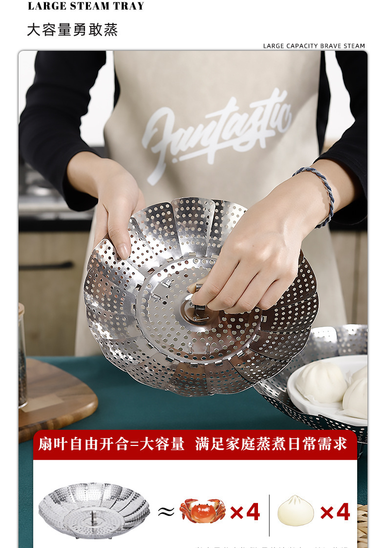 多功能不锈钢折叠蒸盘伸缩蒸笼伸缩水果盘小笼包蒸格蒸笼 蒸屉蒸
