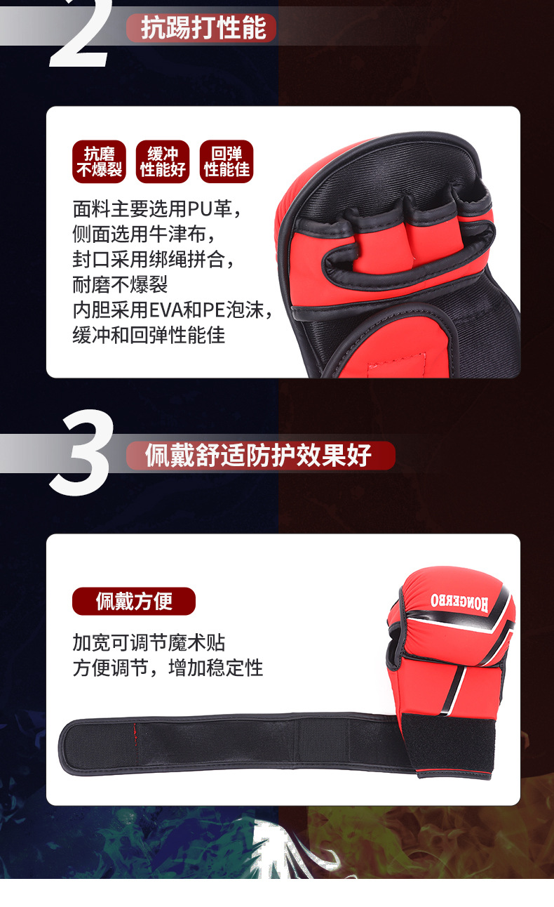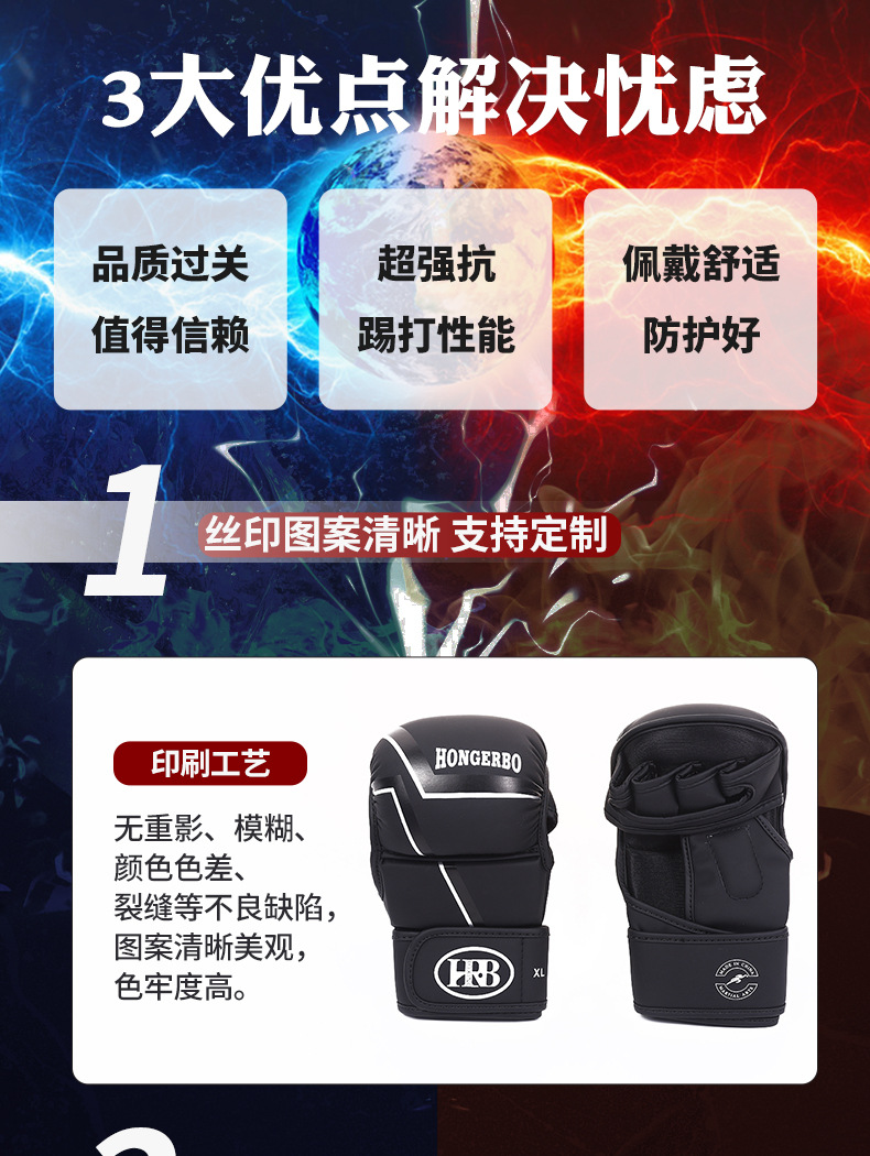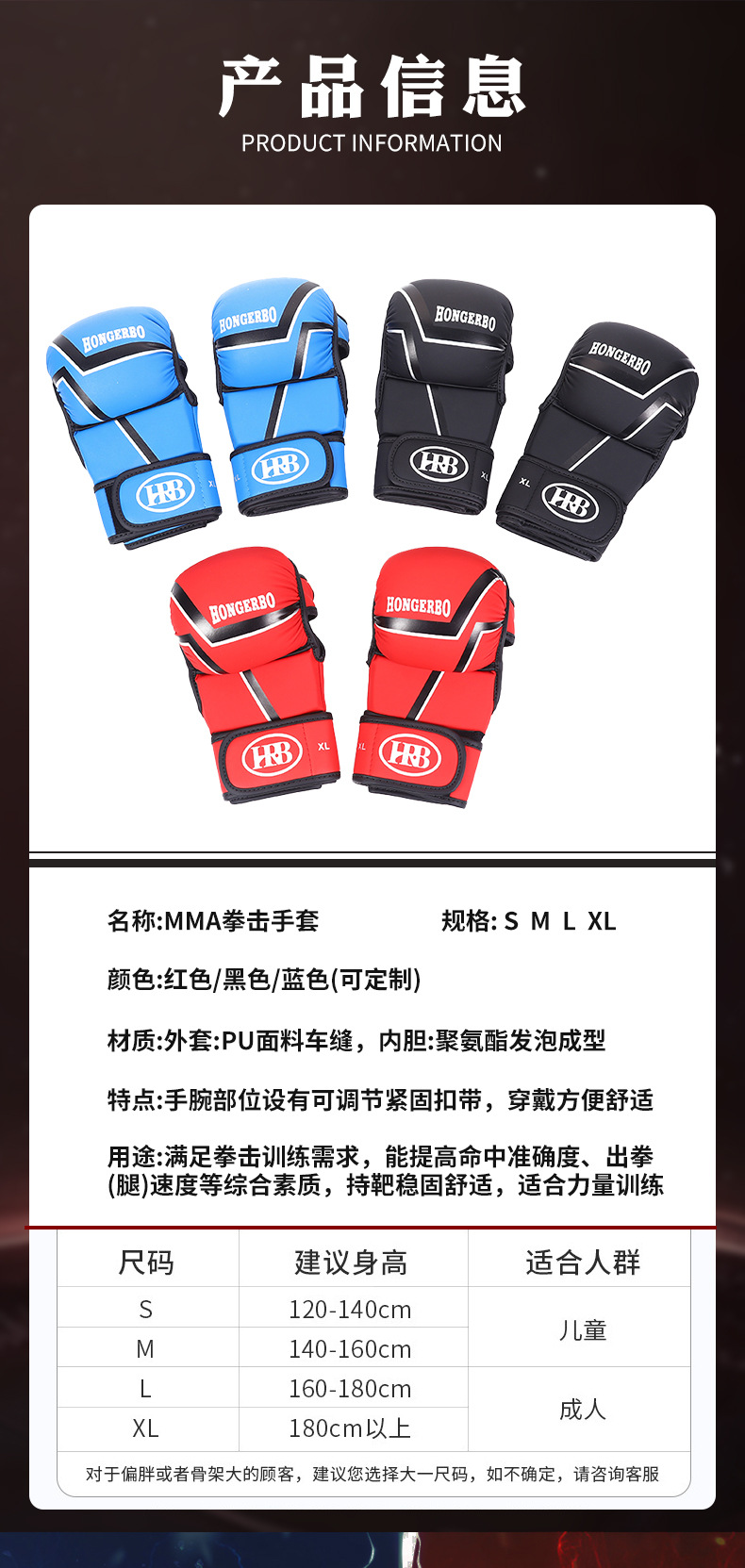 拳击手套半指手套成人MMA散打搏击格斗分指手套儿童透气沙包拳套