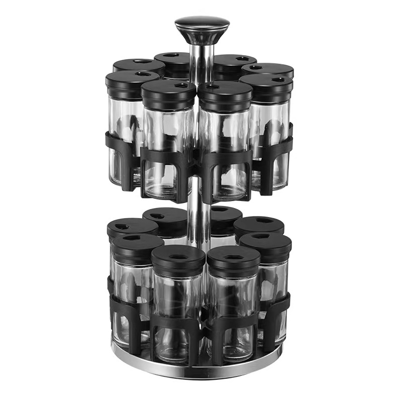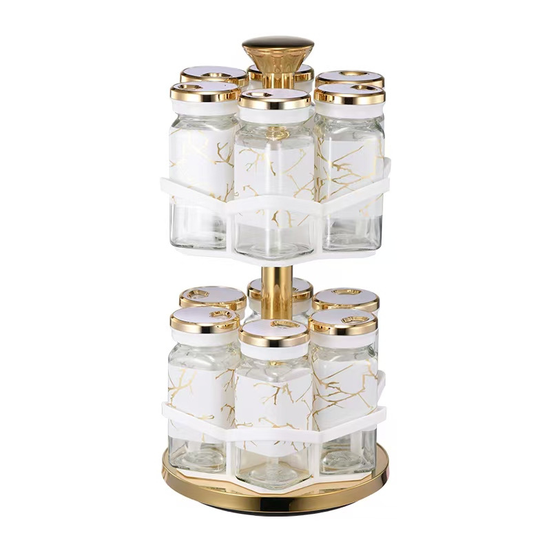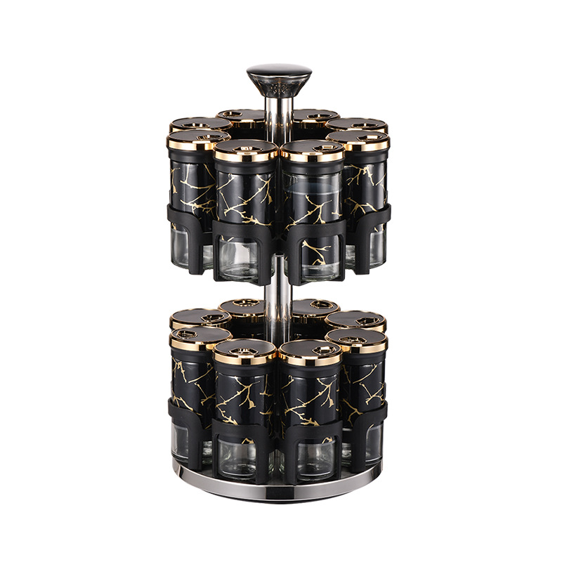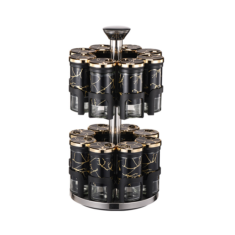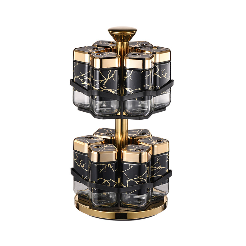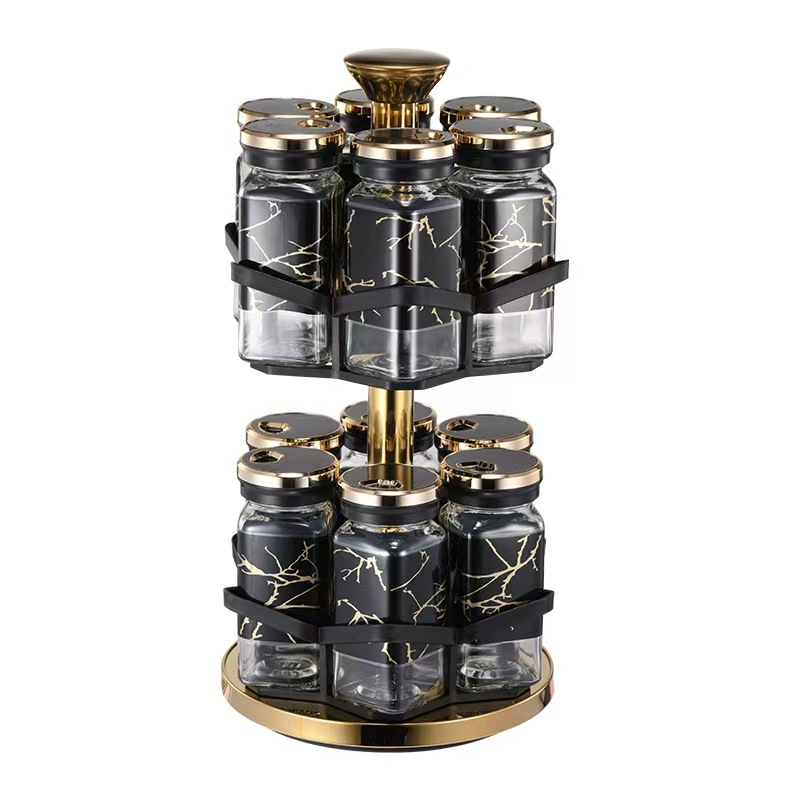 Y338调味罐调料盒玻璃组合旋转套装调料瓶子旋转收纳盒