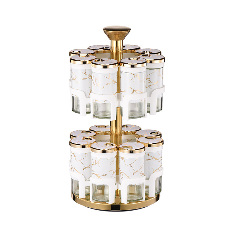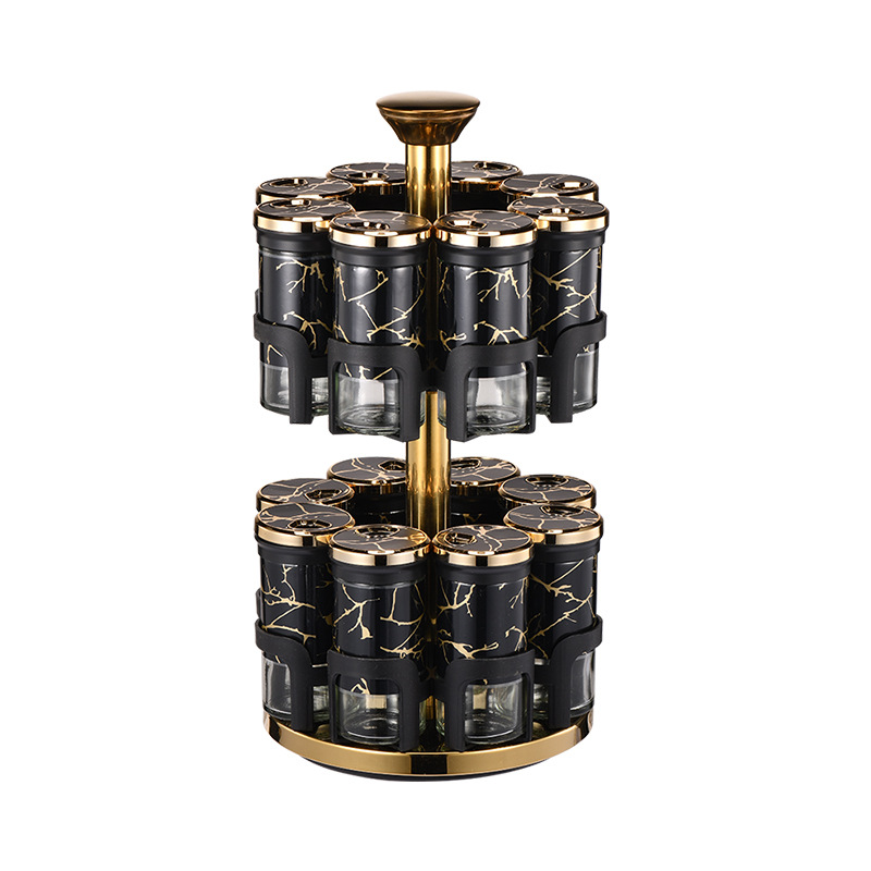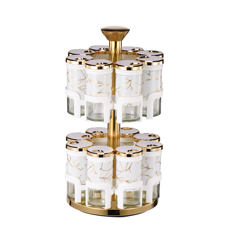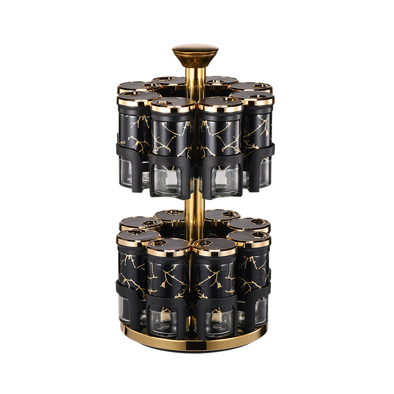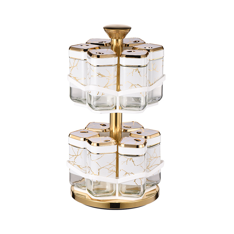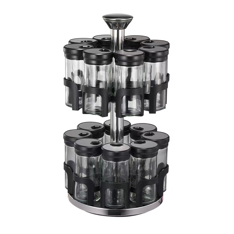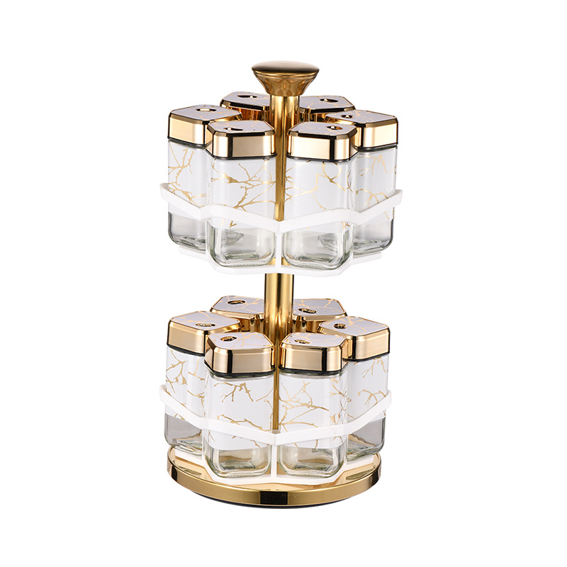 Y338调味罐调料盒玻璃组合旋转套装调料瓶子旋转收纳盒