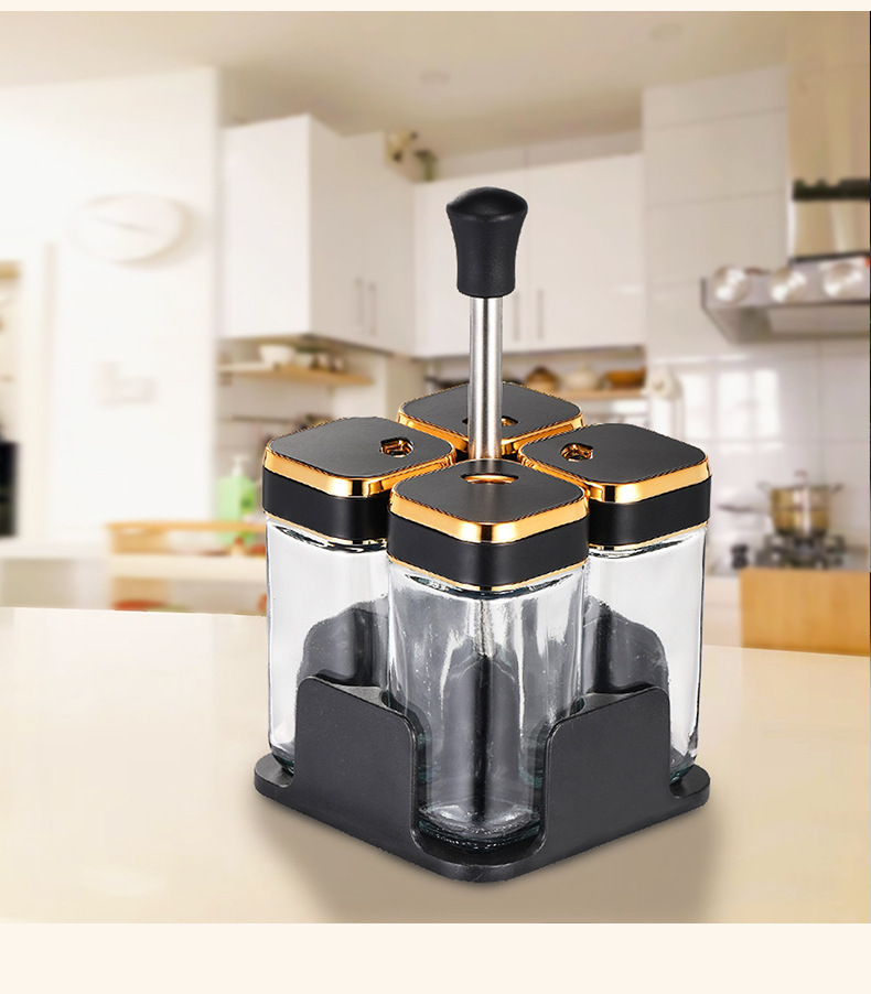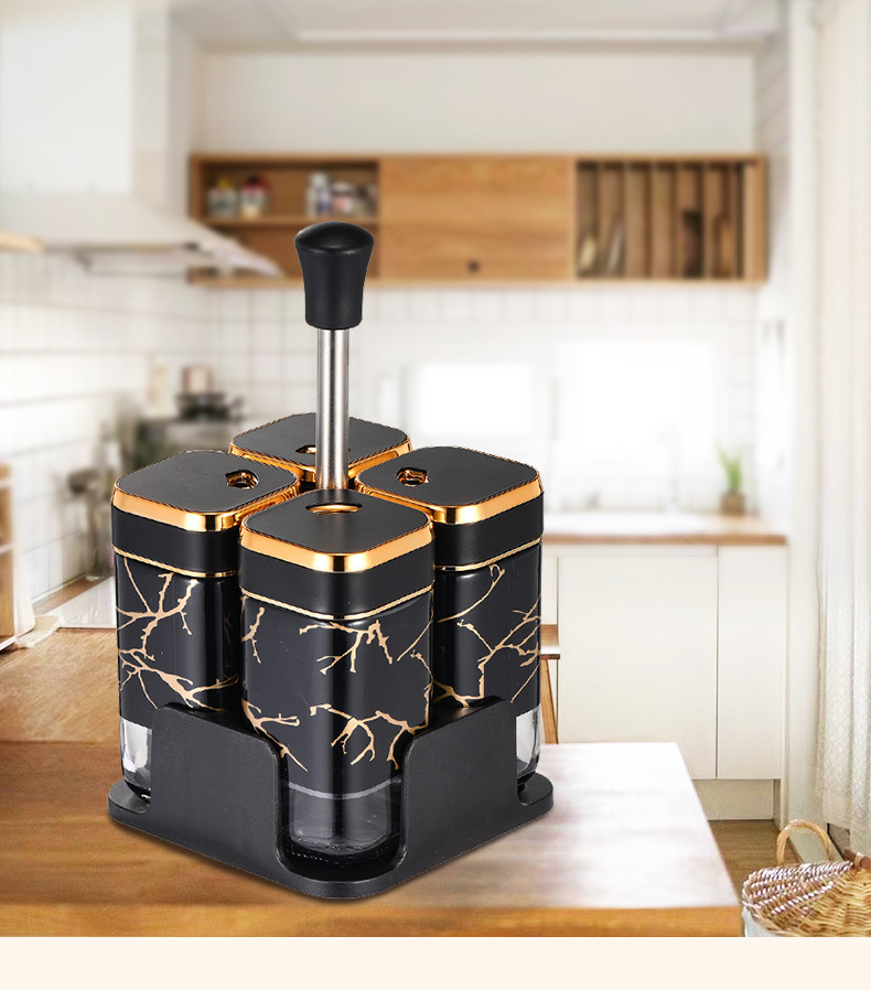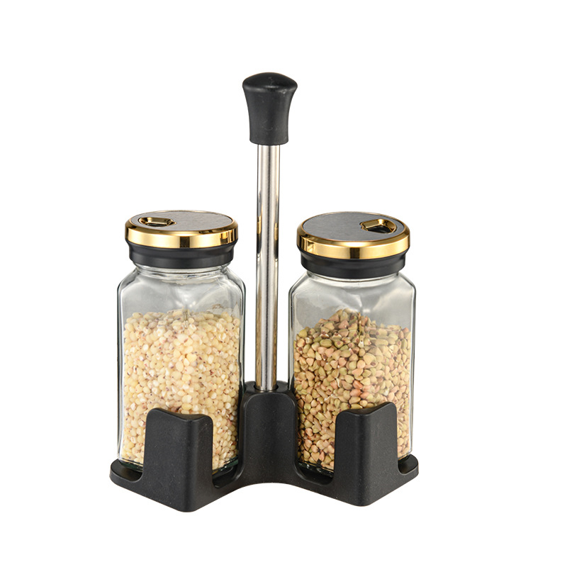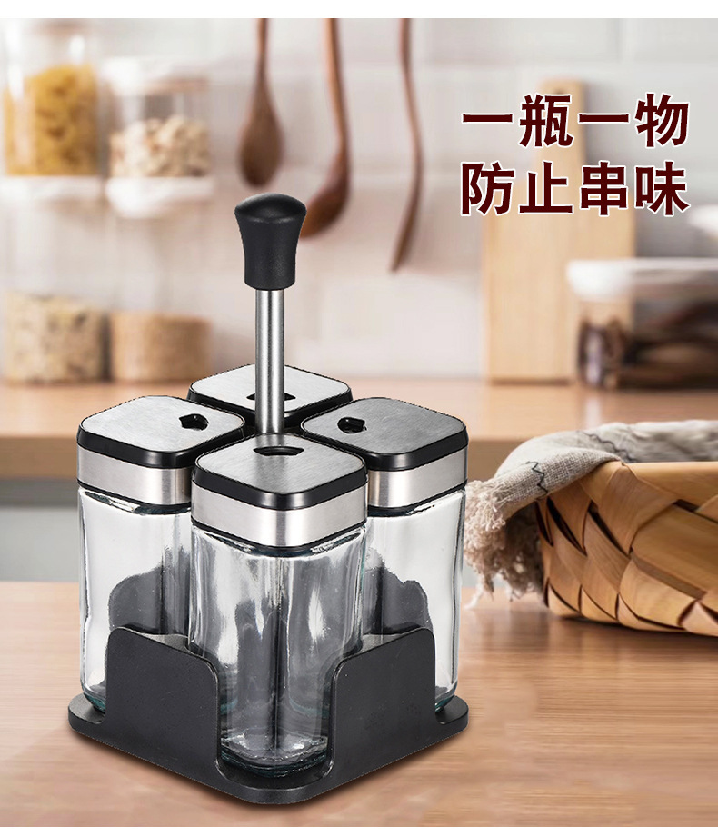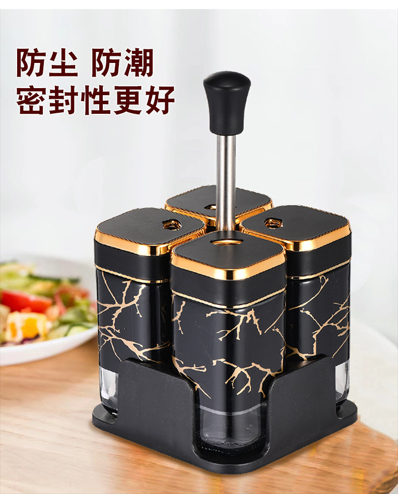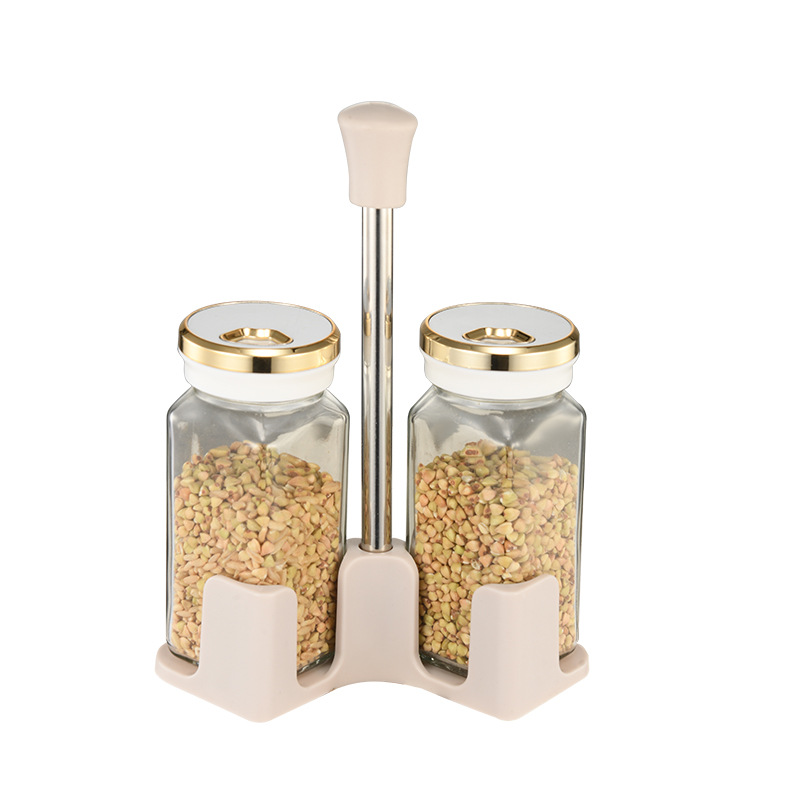 Y338北欧轻奢调味架组合圆柱玻璃调料罐密封防潮家用调味罐调料盒