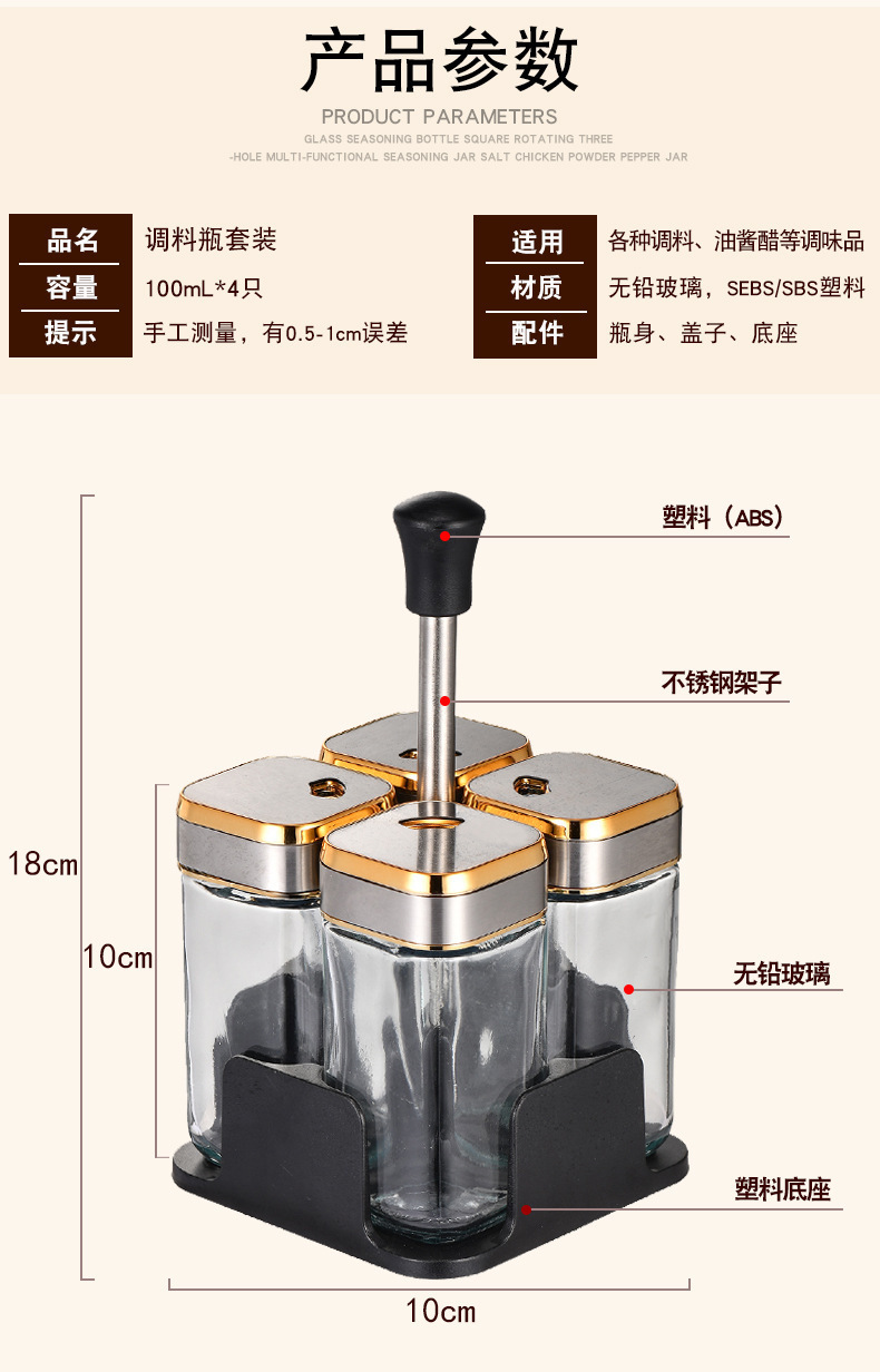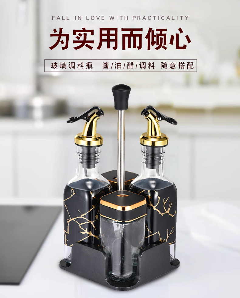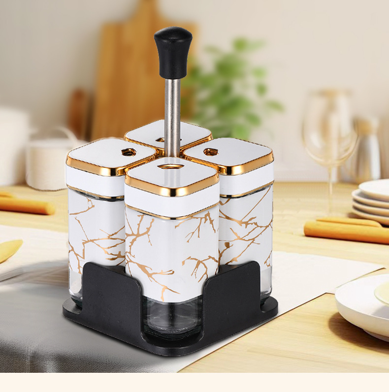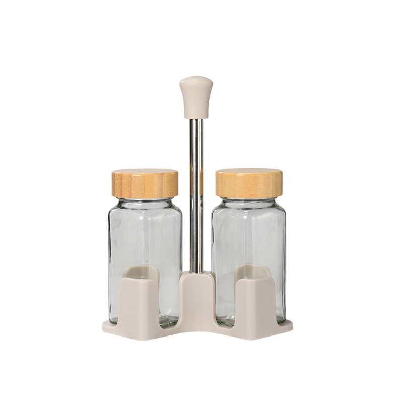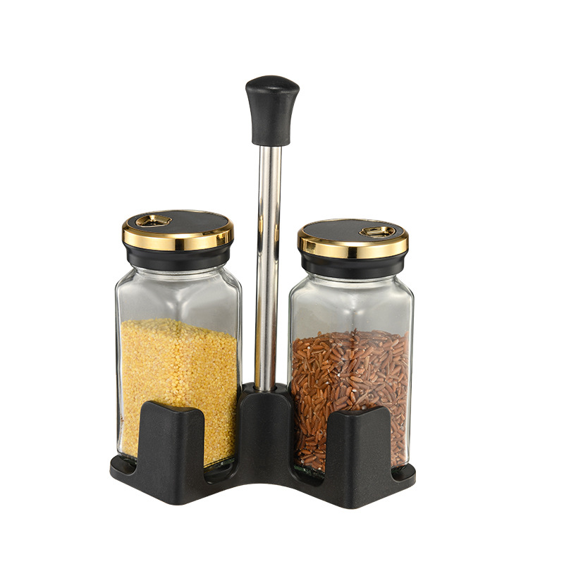 Y338北欧轻奢调味架组合圆柱玻璃调料罐密封防潮家用调味罐调料盒