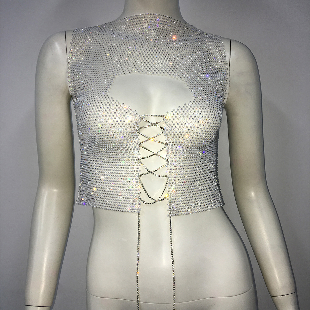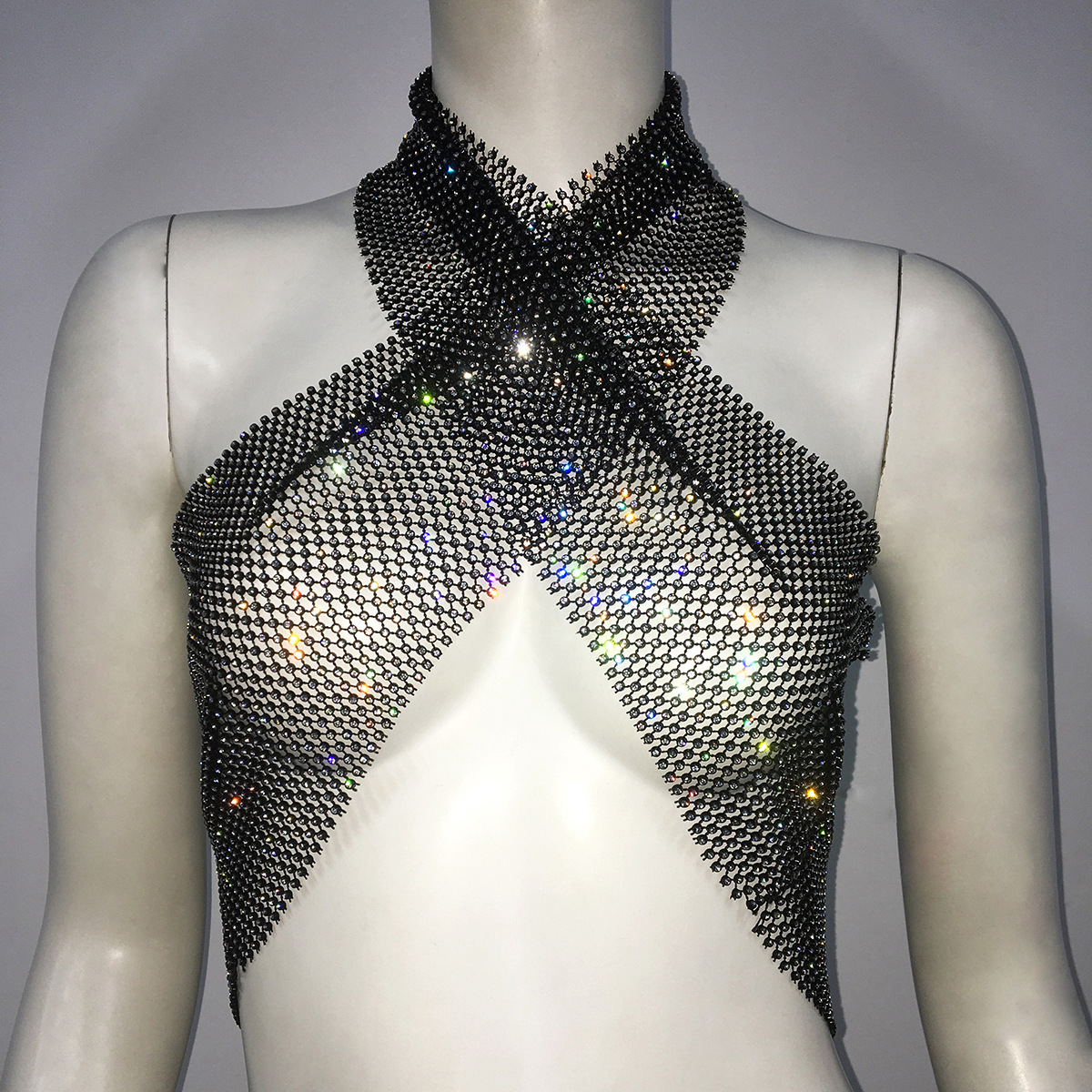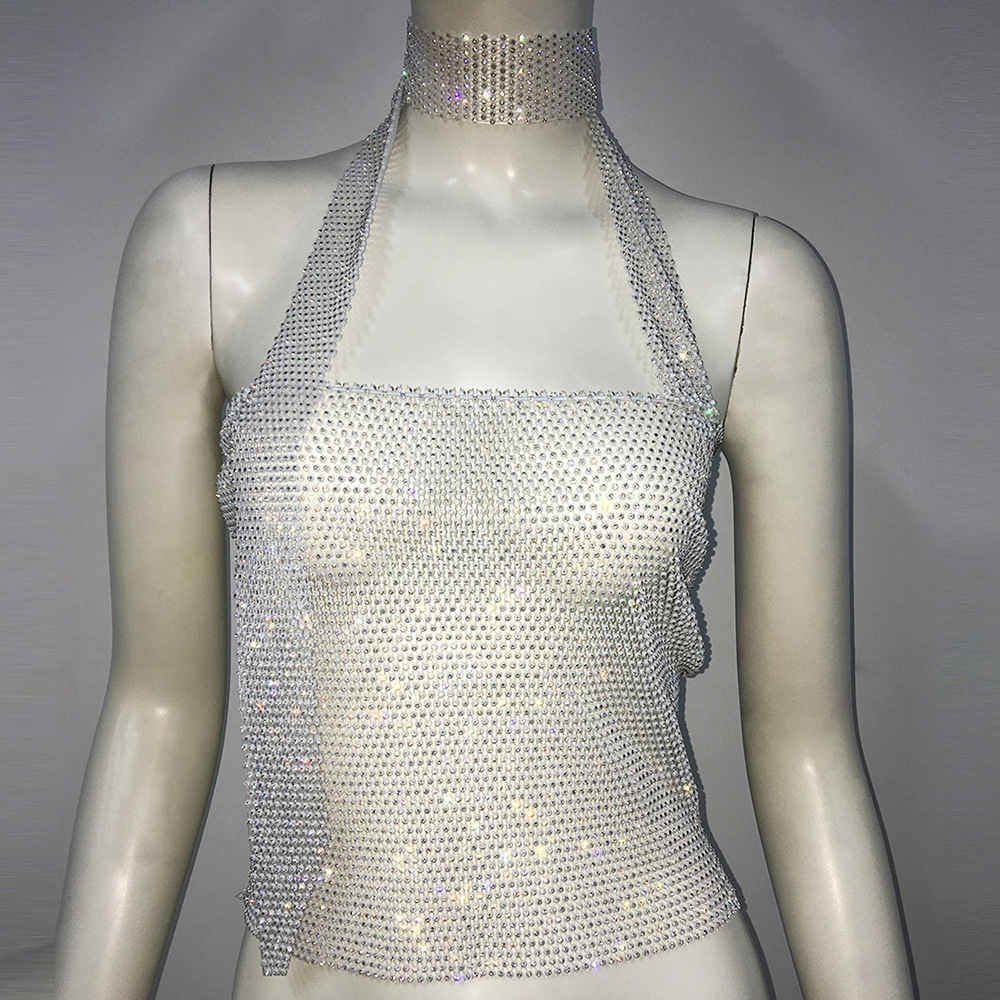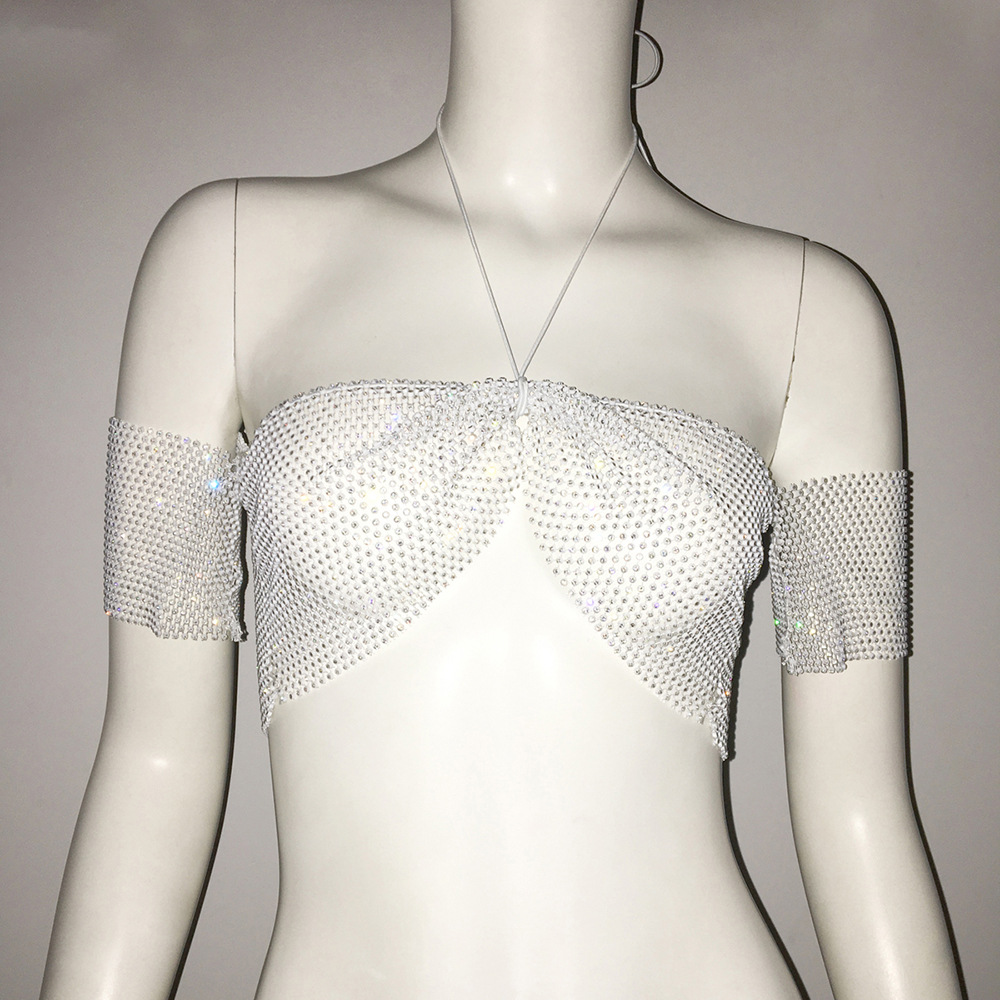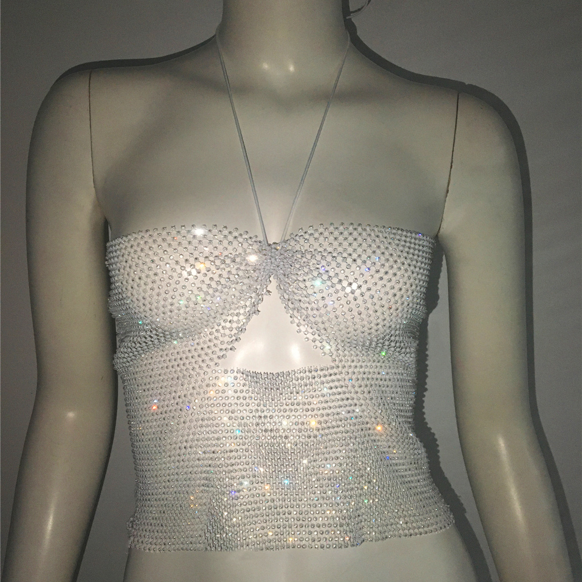 跨境欧美夏季时尚女装性感水钻裹胸吊带上衣辣妹个性镶钻裹胸背心