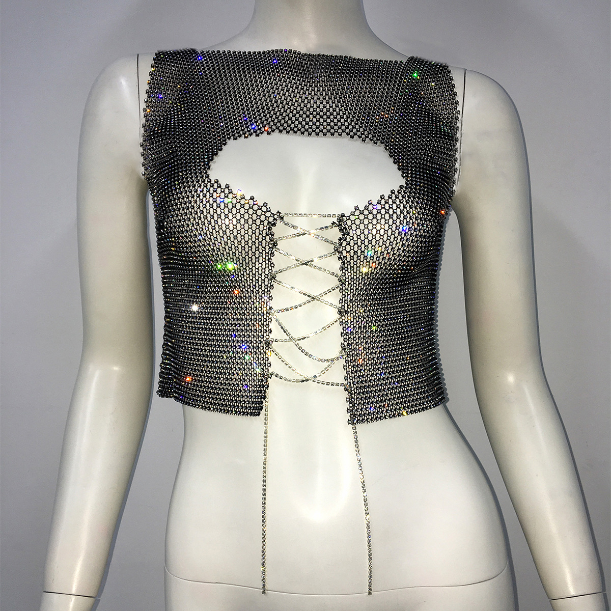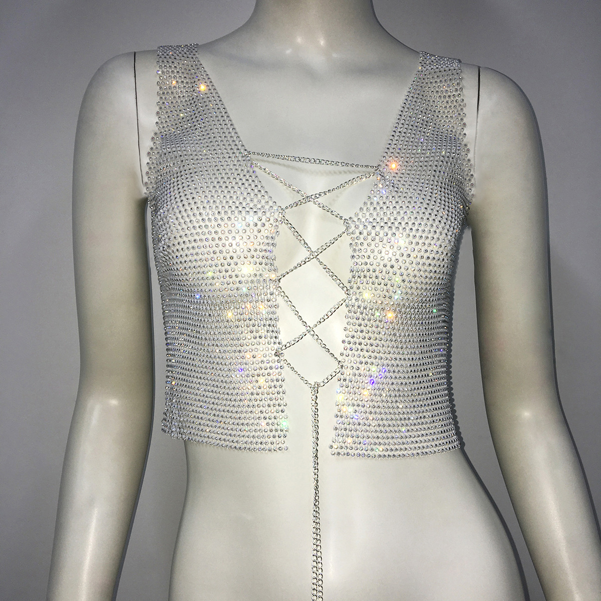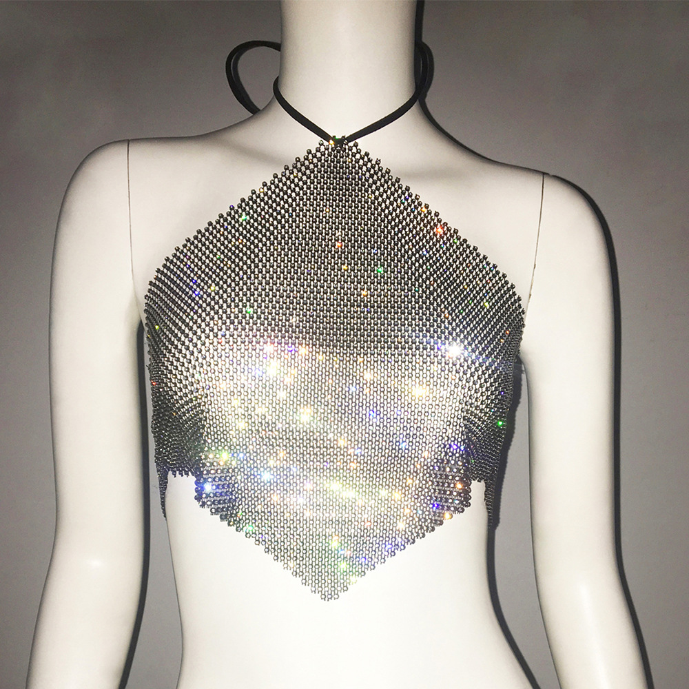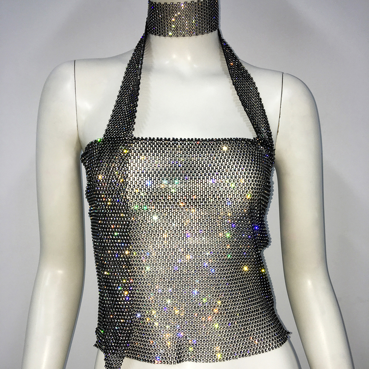 跨境欧美夏季时尚女装性感水钻裹胸吊带上衣辣妹个性镶钻裹胸背心