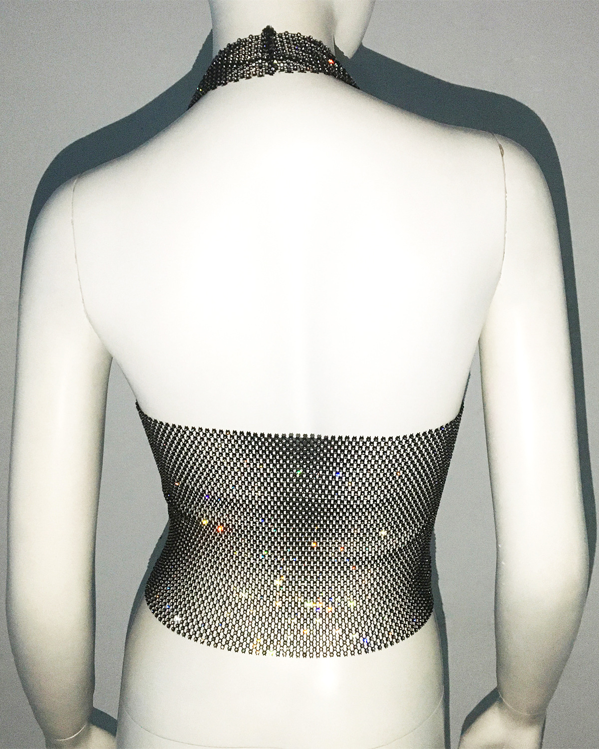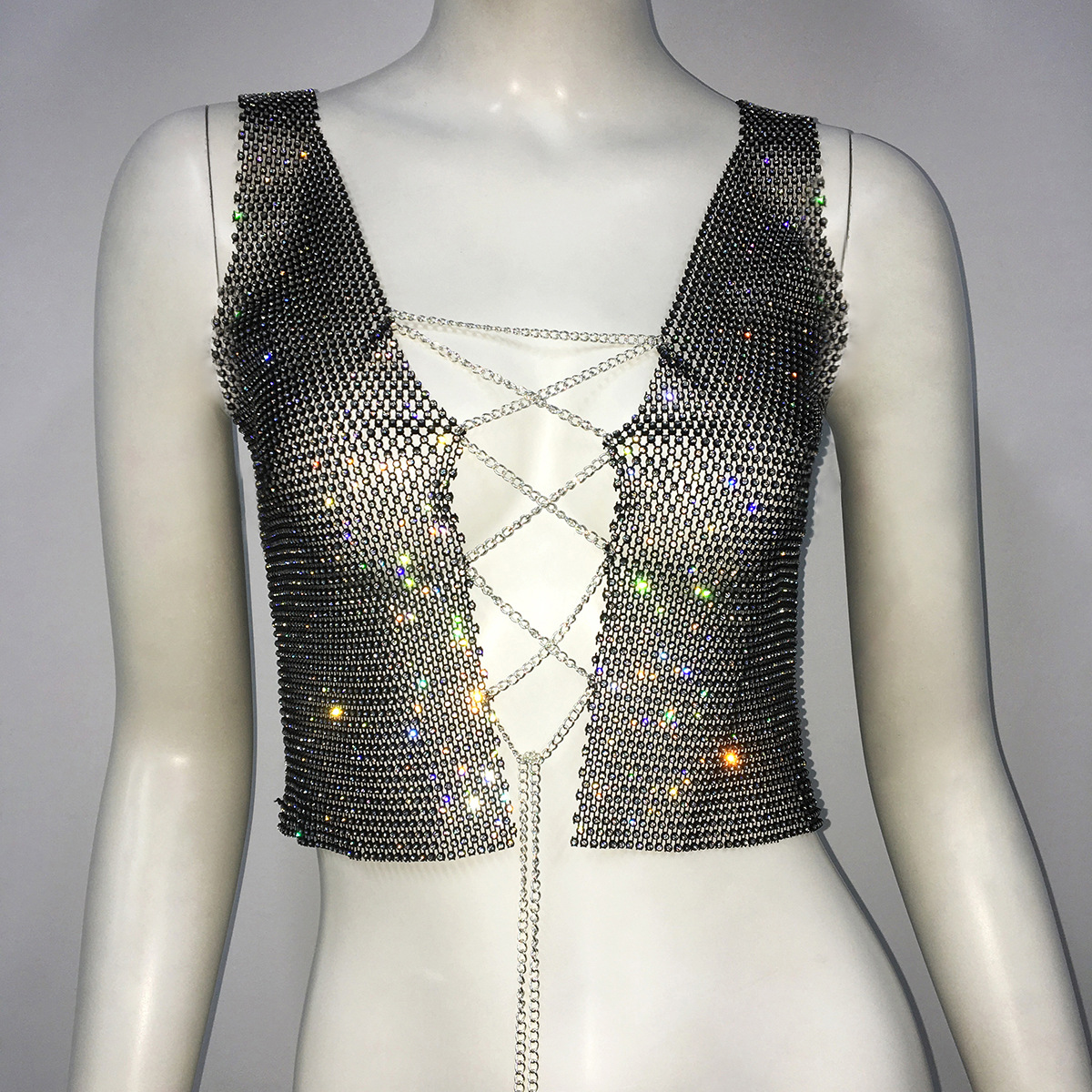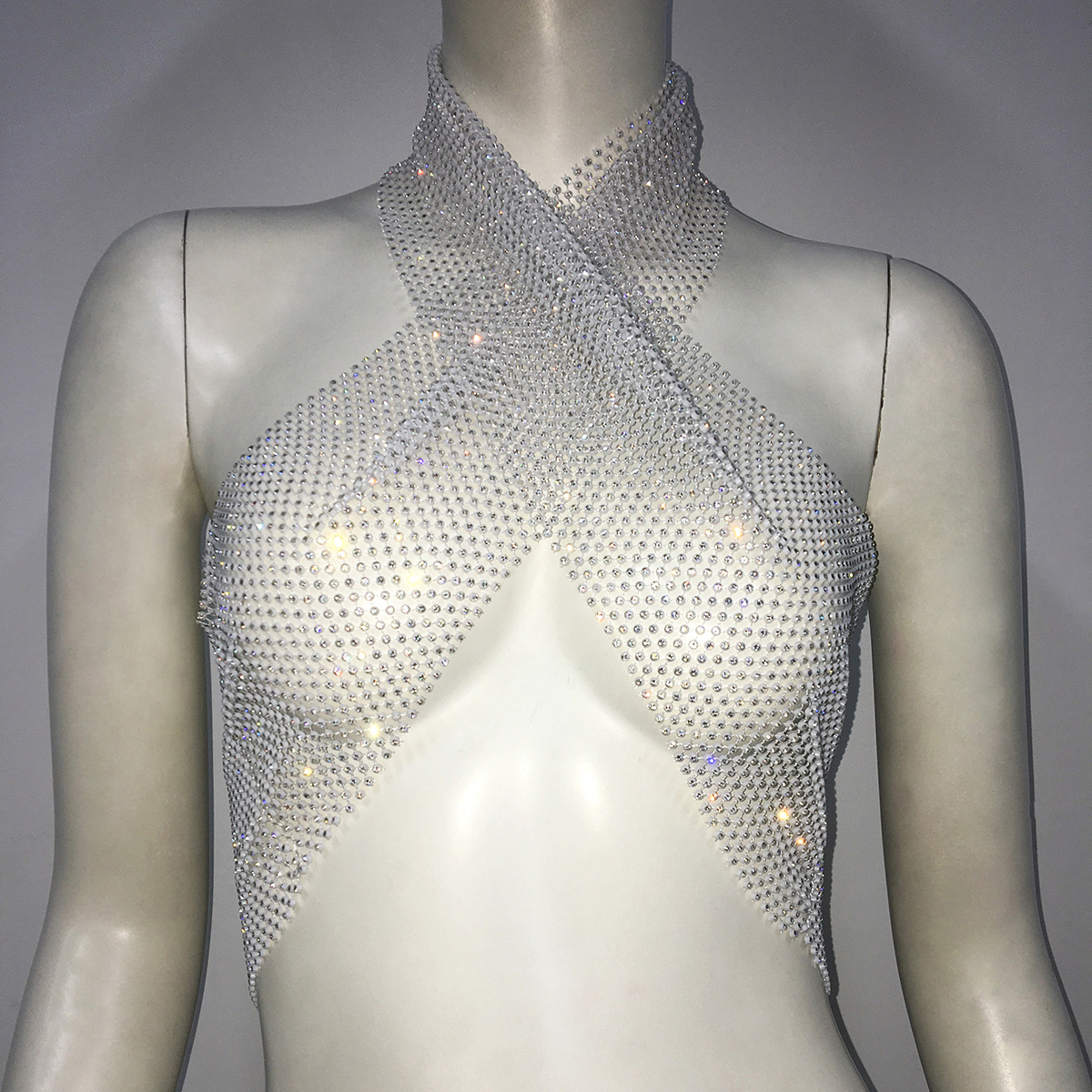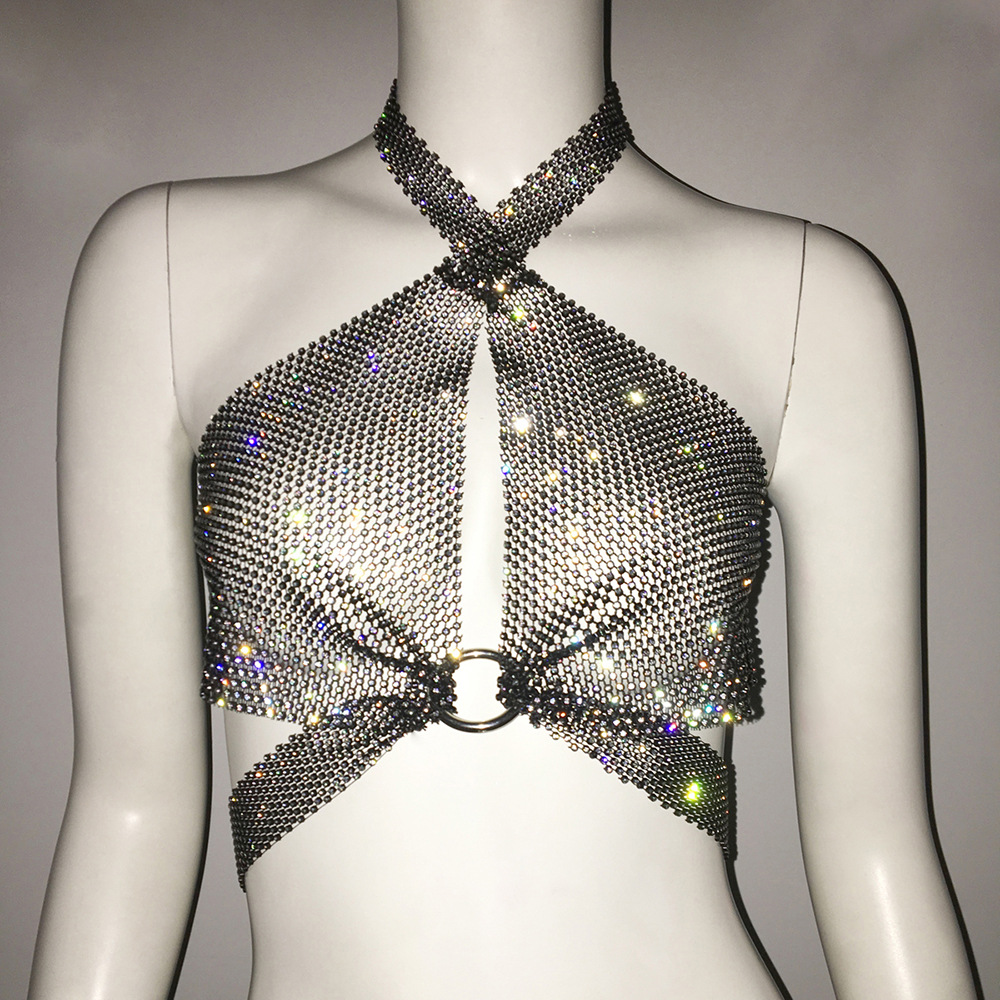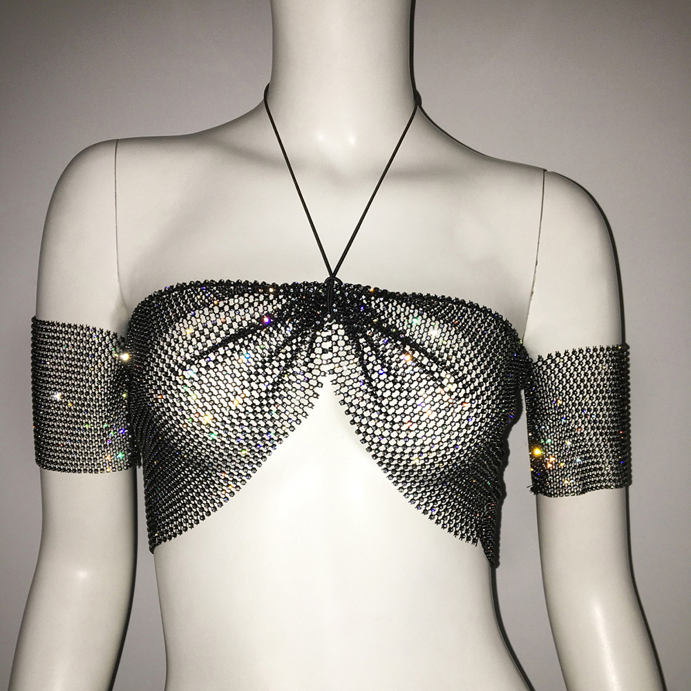 跨境欧美夏季时尚女装性感水钻裹胸吊带上衣辣妹个性镶钻裹胸背心