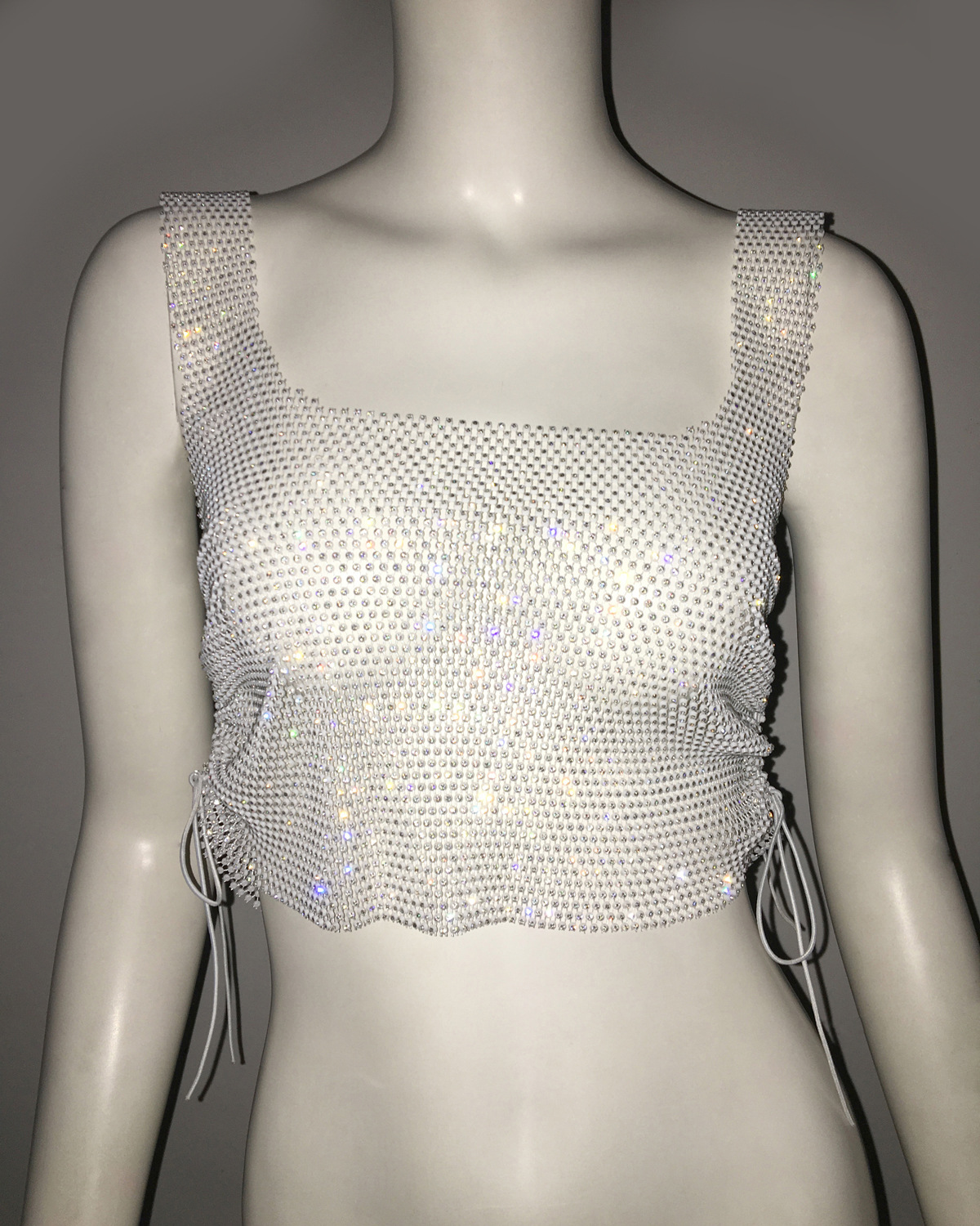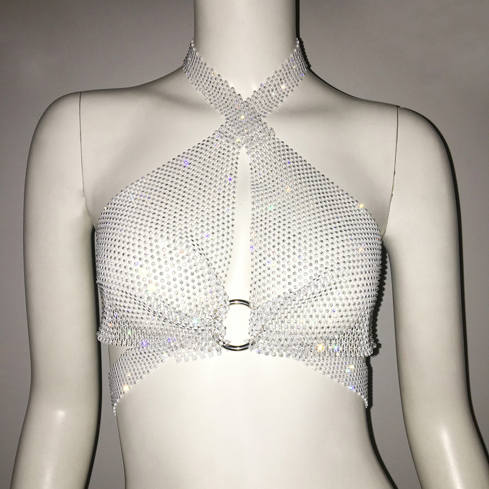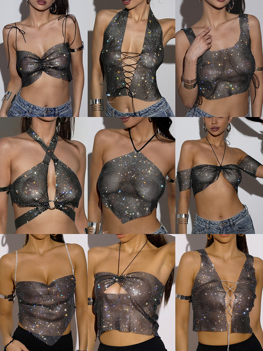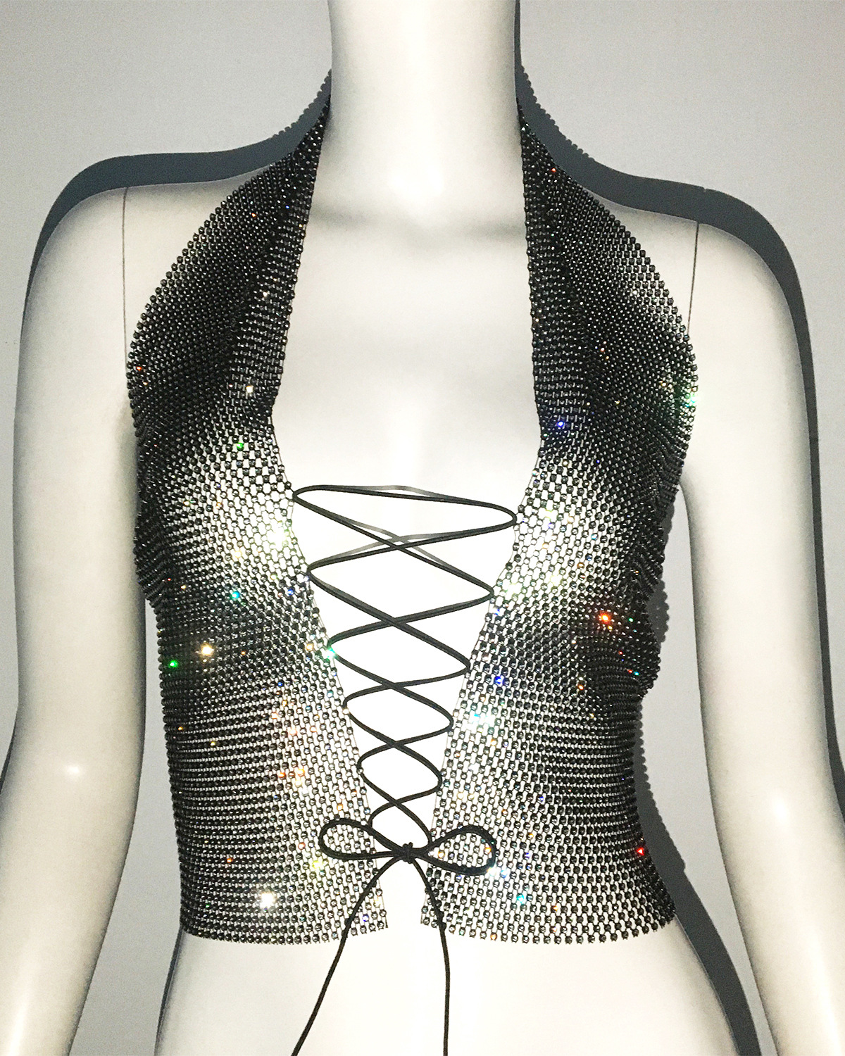 跨境欧美夏季时尚女装性感水钻裹胸吊带上衣辣妹个性镶钻裹胸背心