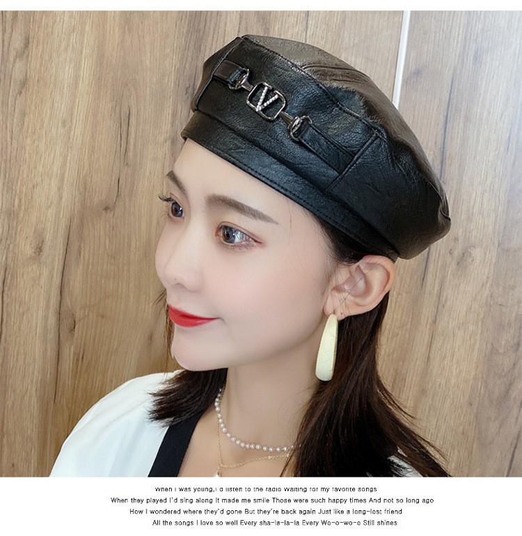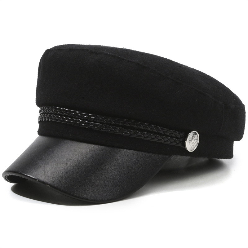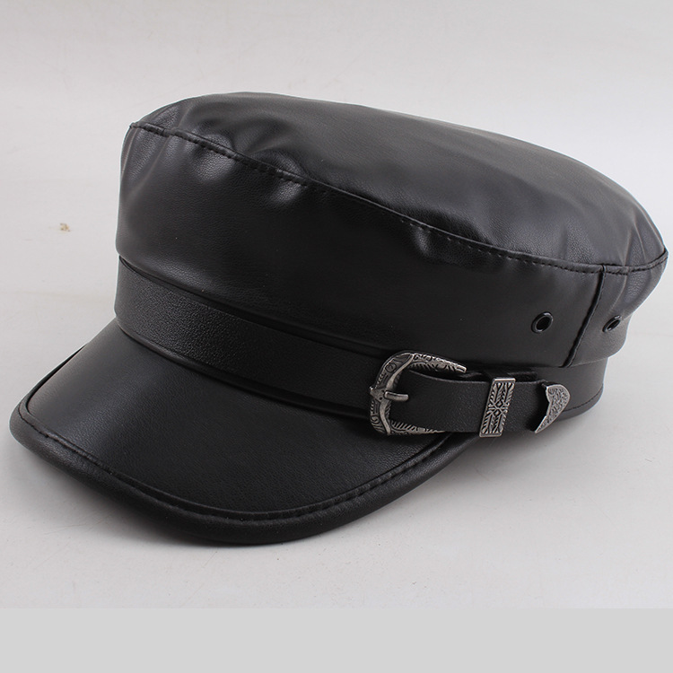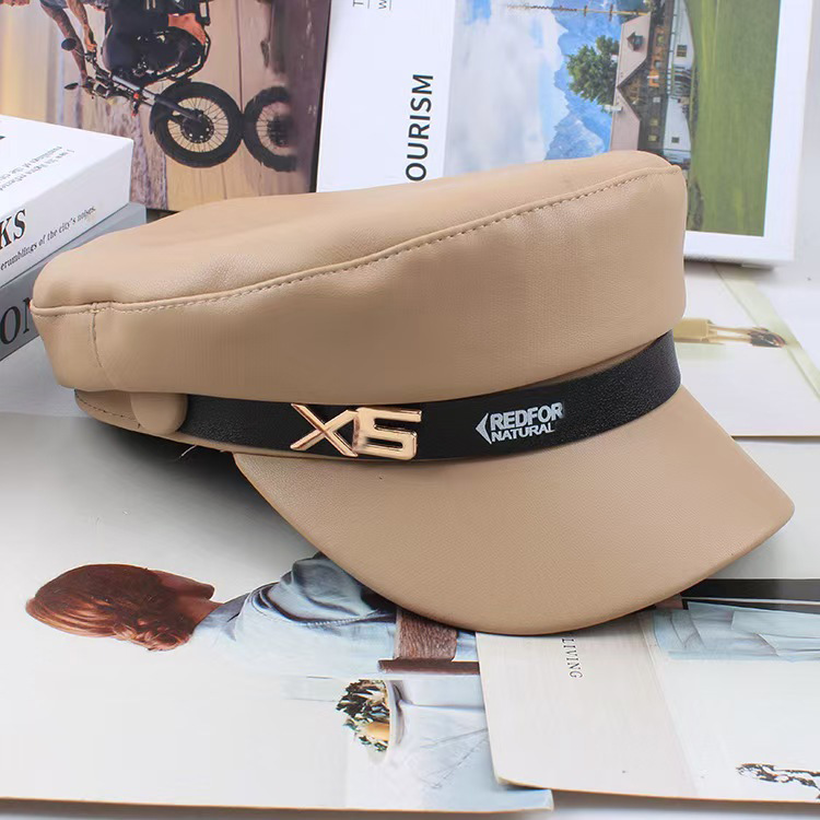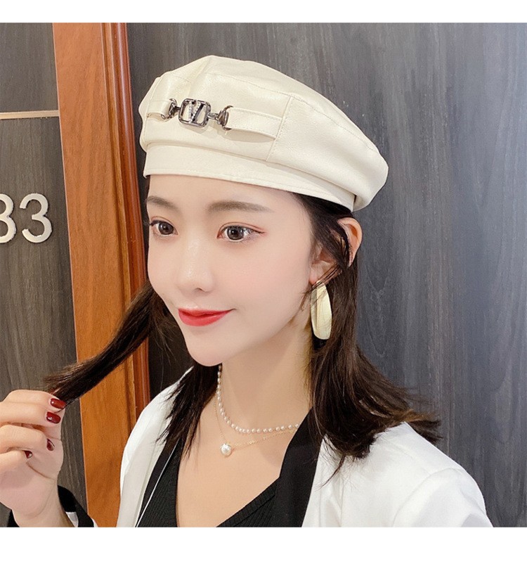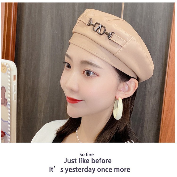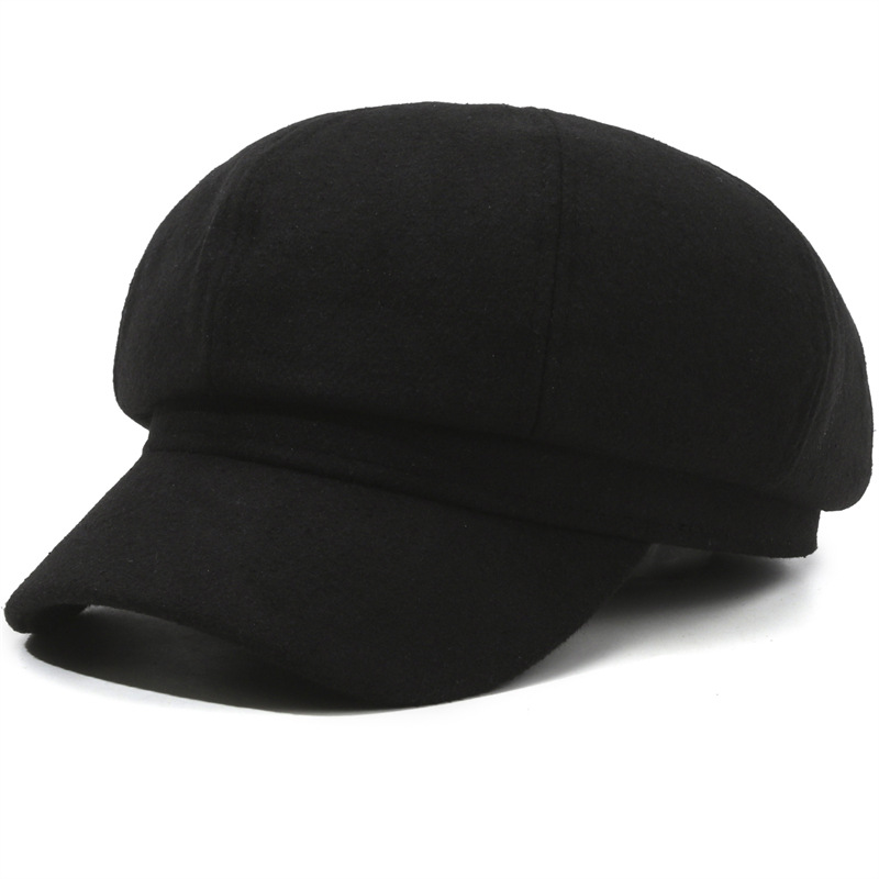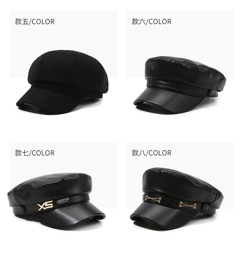 INS网红春秋百搭贝雷帽复古平顶遮阳帽显脸小黑色画家帽子时装帽
