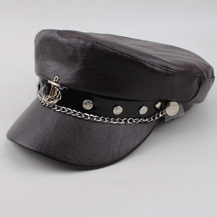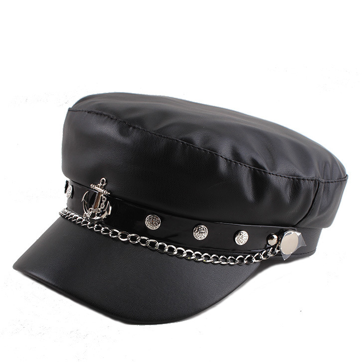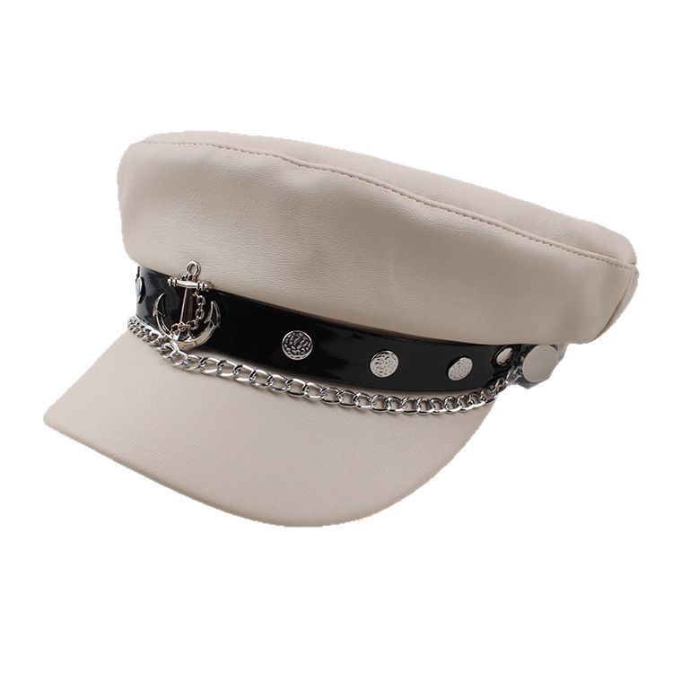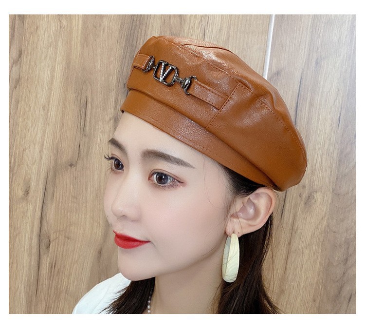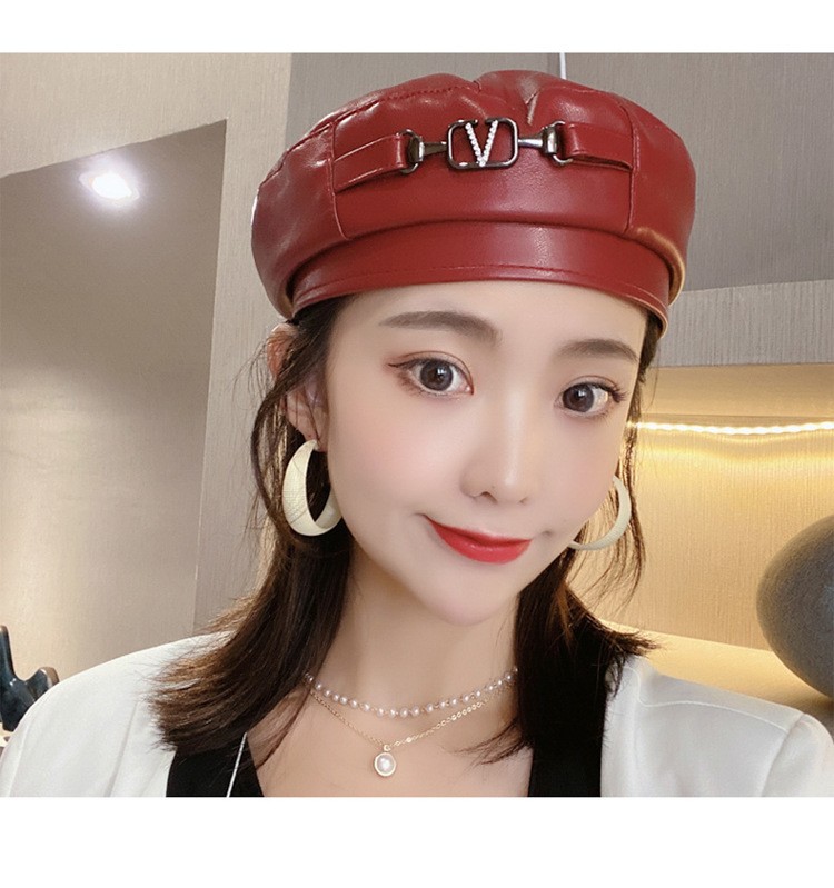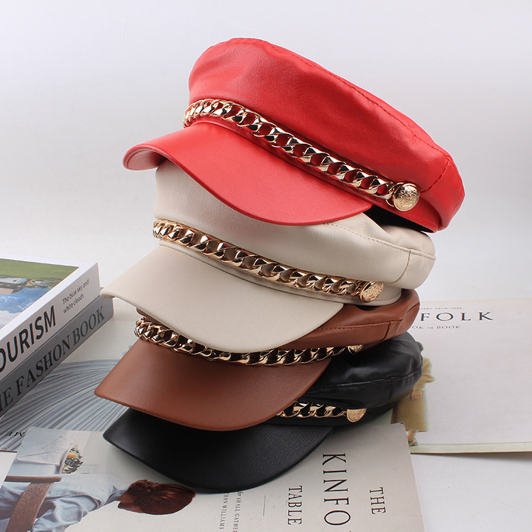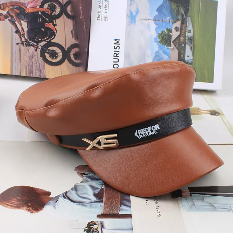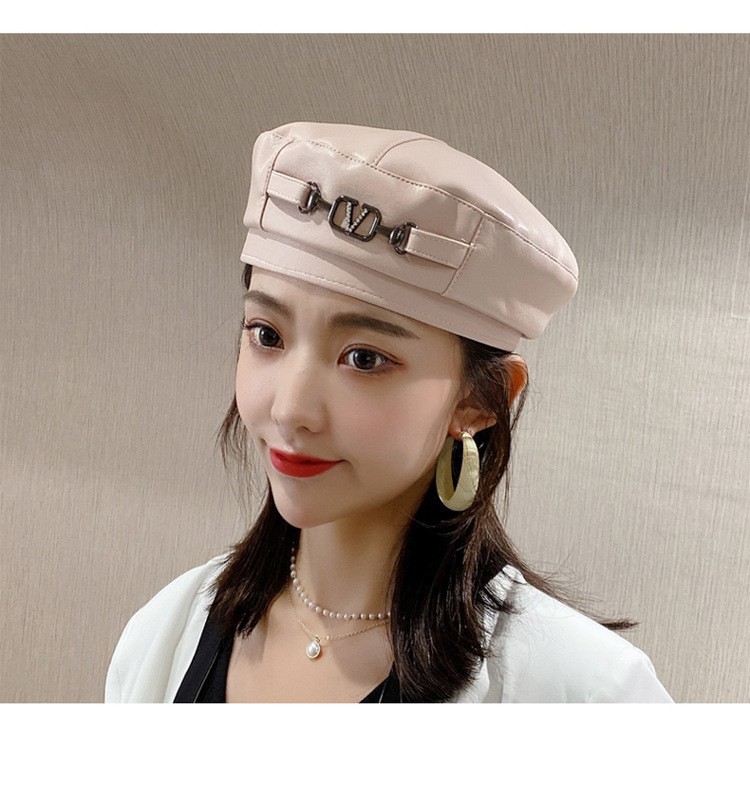 INS网红春秋百搭贝雷帽复古平顶遮阳帽显脸小黑色画家帽子时装帽