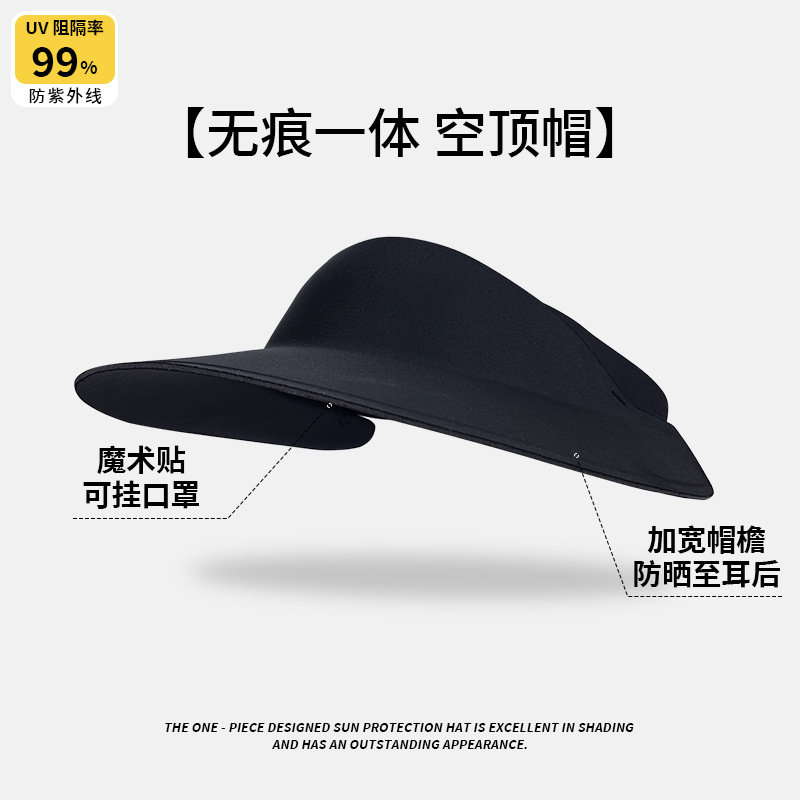 帽子女无痕防晒帽夏季防紫外线空顶帽大帽檐遮阳帽遮脸骑行太阳帽