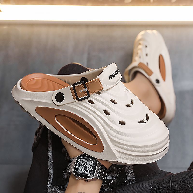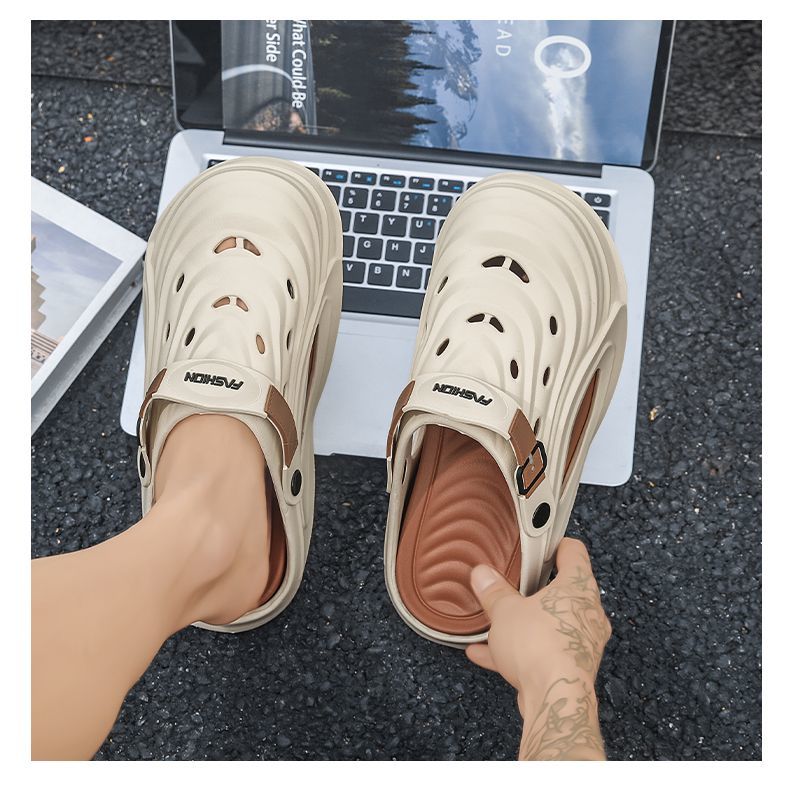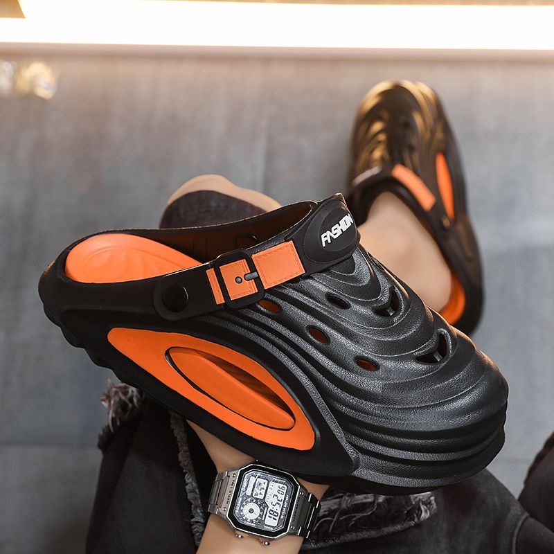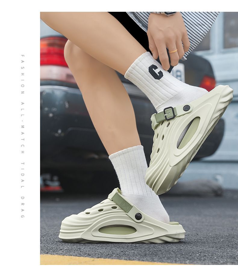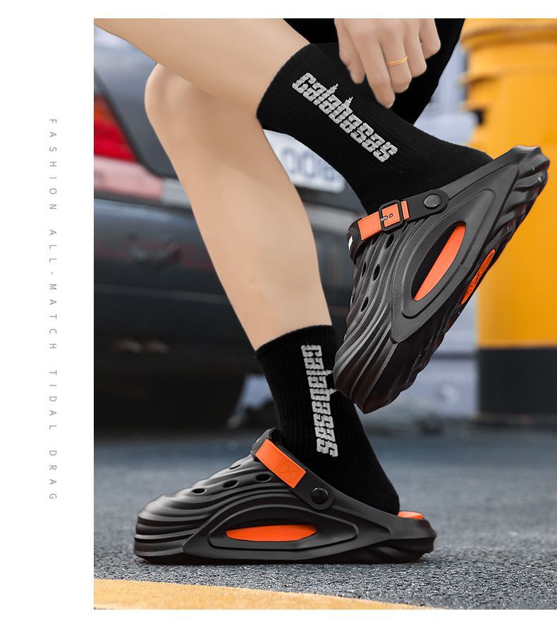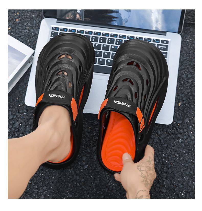 洞洞鞋男夏季外穿踩屎感运动包头拖鞋青少年涉水沙滩厚底开车凉鞋