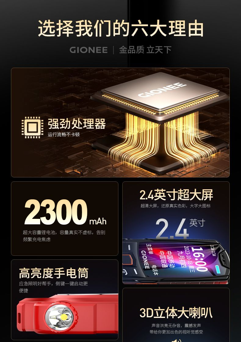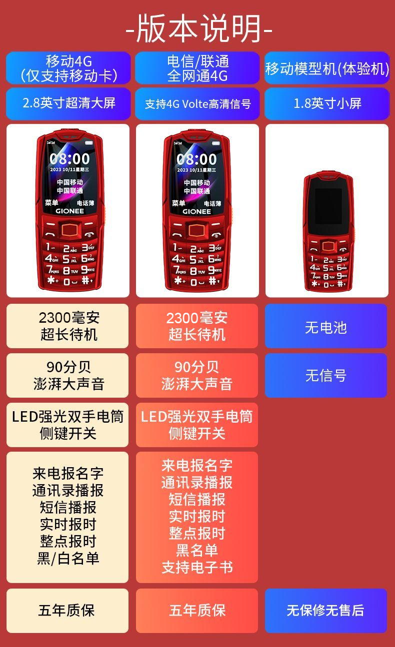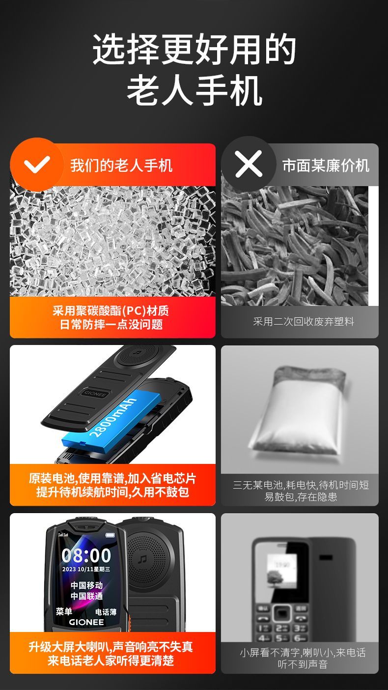 金立耐用老人手机超长待机老年专用手机全网通4G大屏大音量老人机